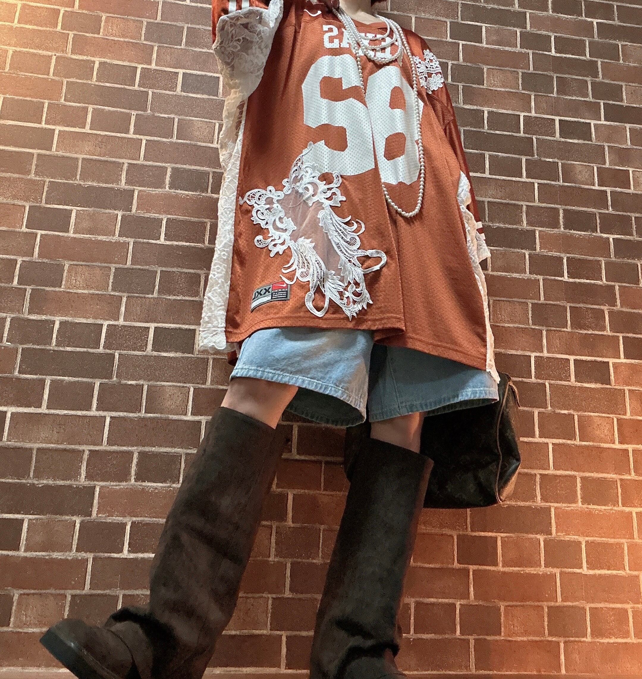 USA製のナンバリングメッシュシャツをレースとドッキング制作しました⭐︎