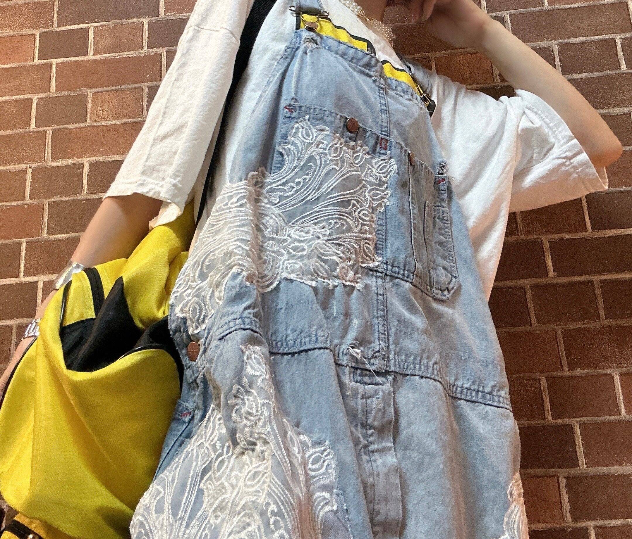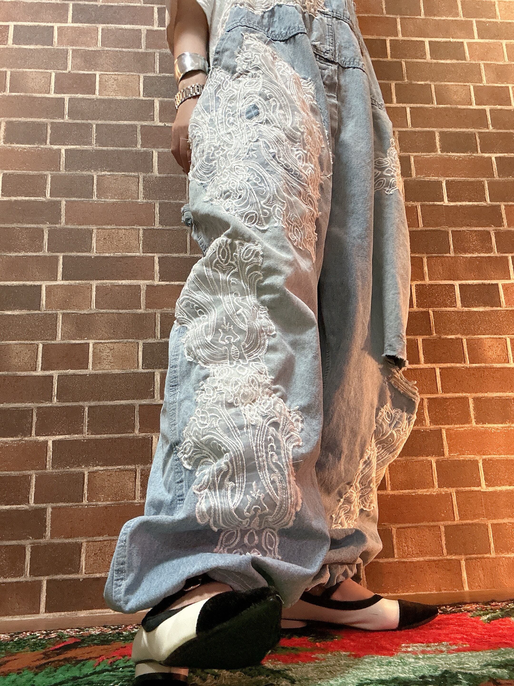 レースモチーフでリメイクしたビンテージのデニムオーバーオールです⭐︎