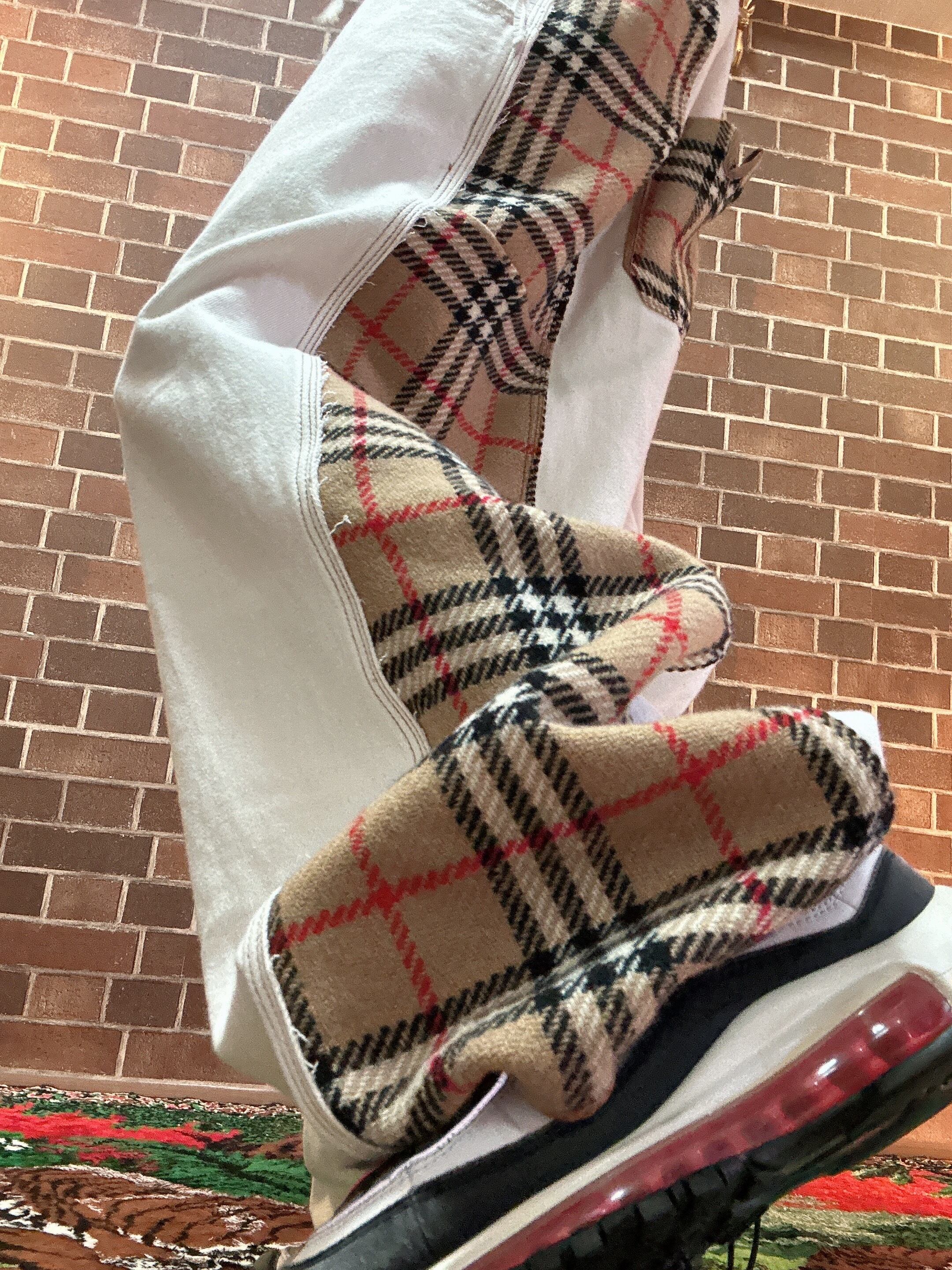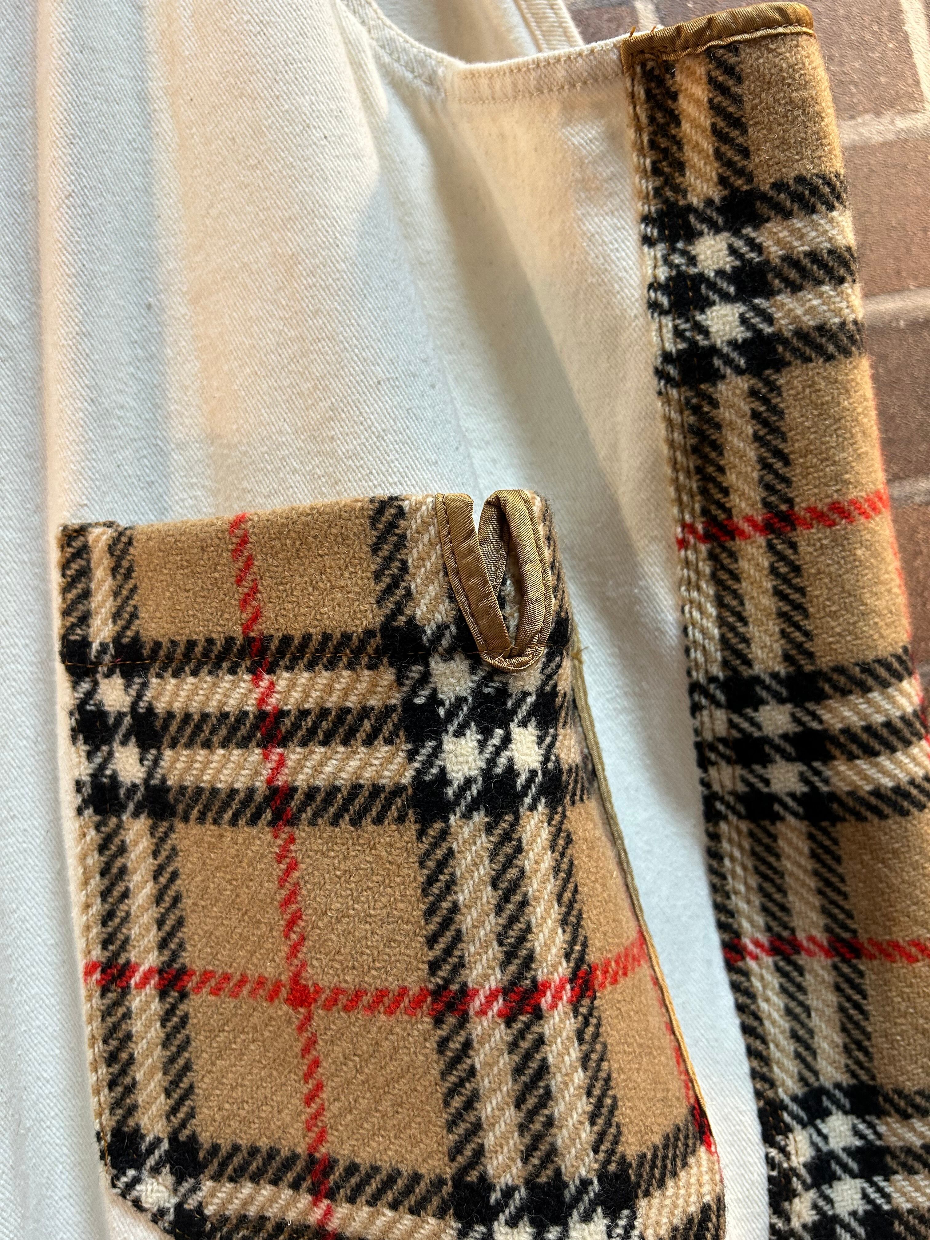 ビンテージのチェック柄ライナーを使用して制作したリメイクのオーバーオールです☆