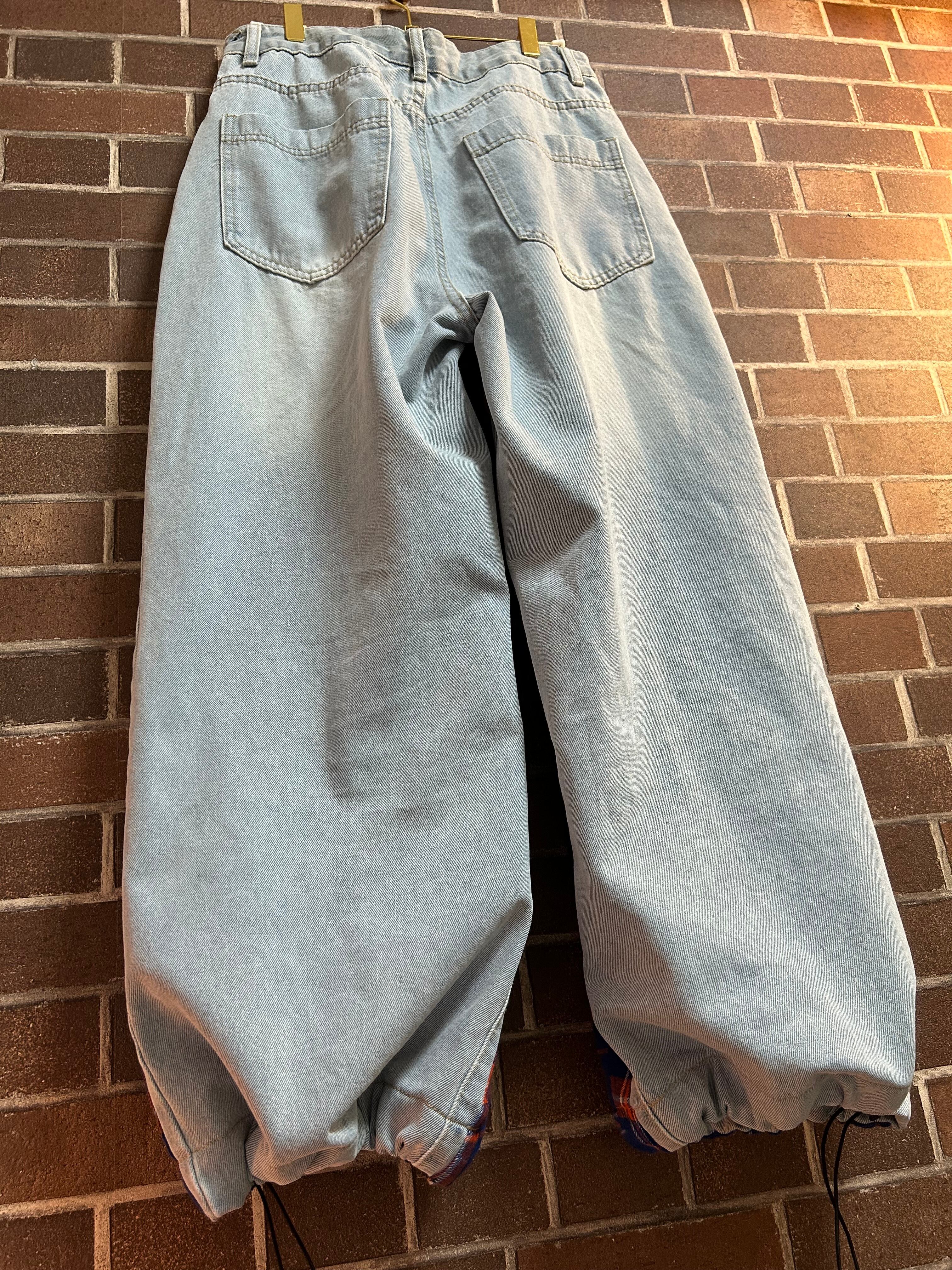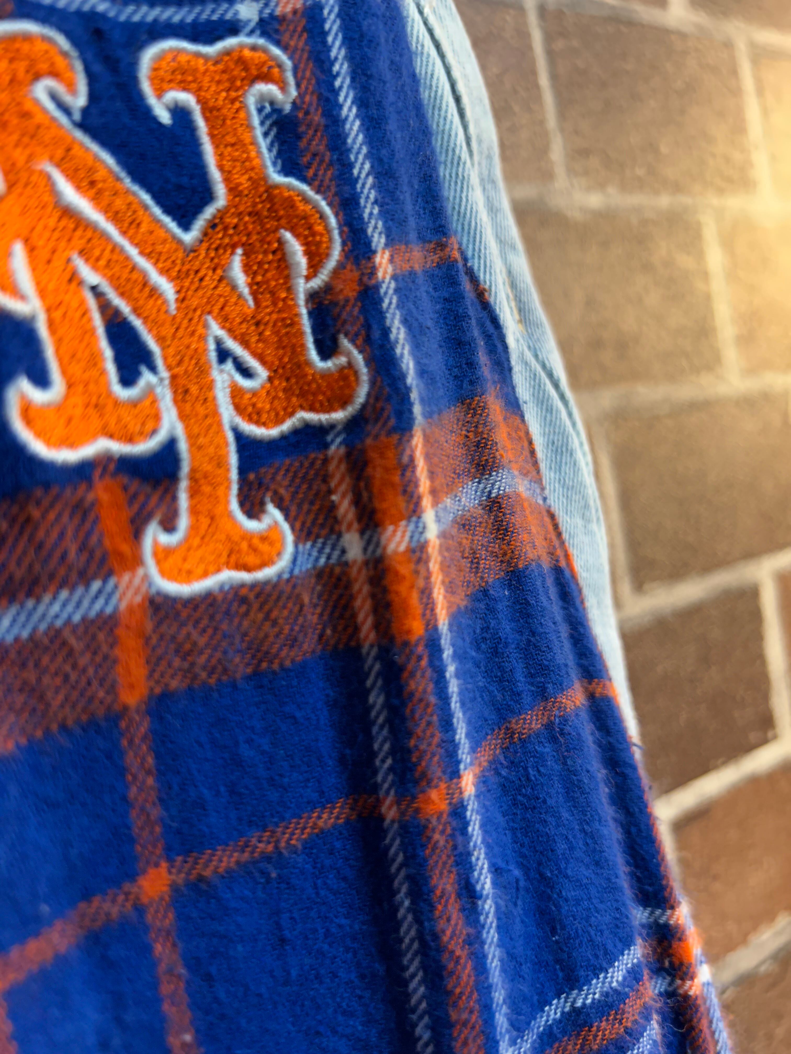 ネル素材の古着チェックをデニムとドッキングしました⭐︎