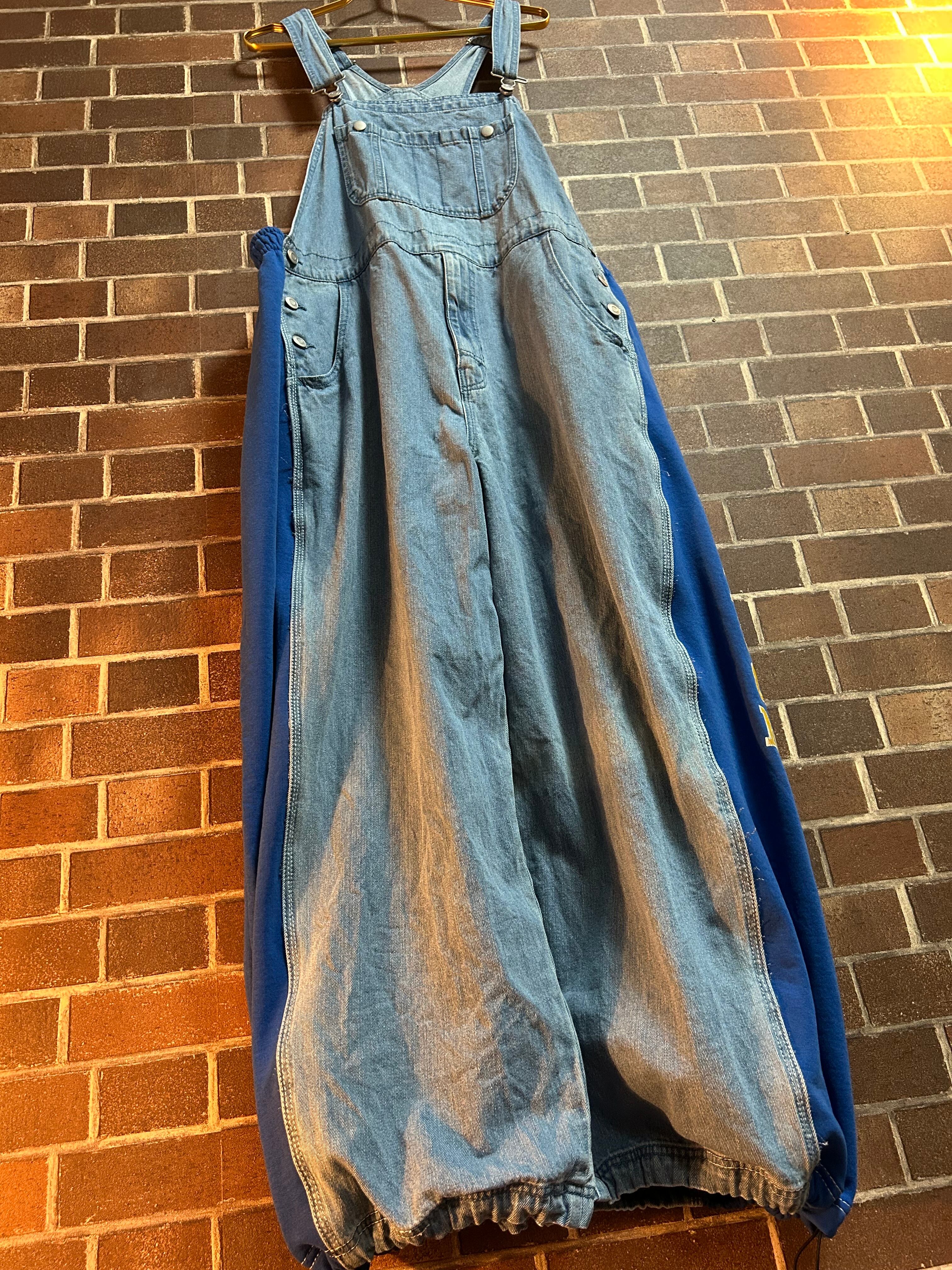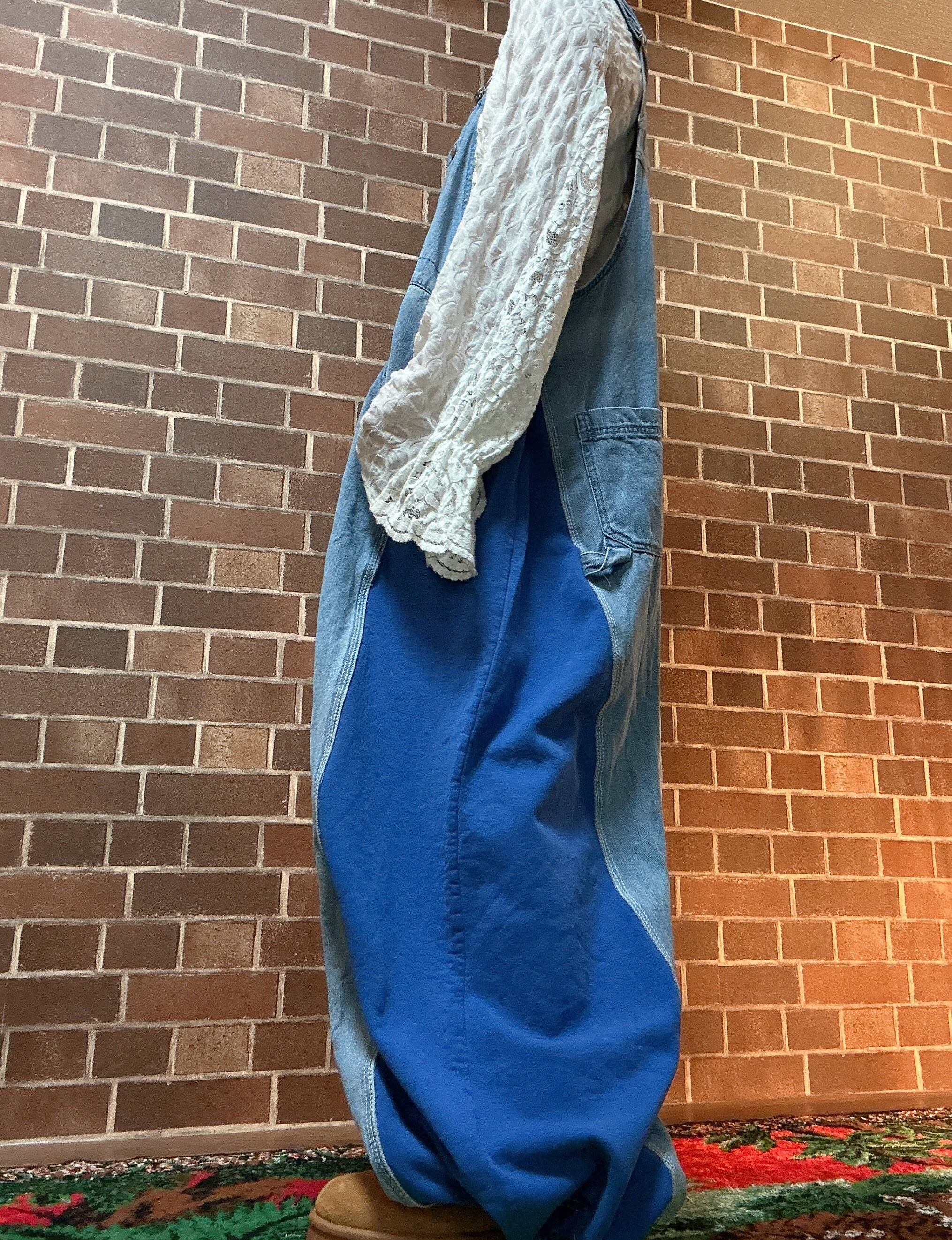 海外古着スエットを使用したリメイクのオーバーオールです。