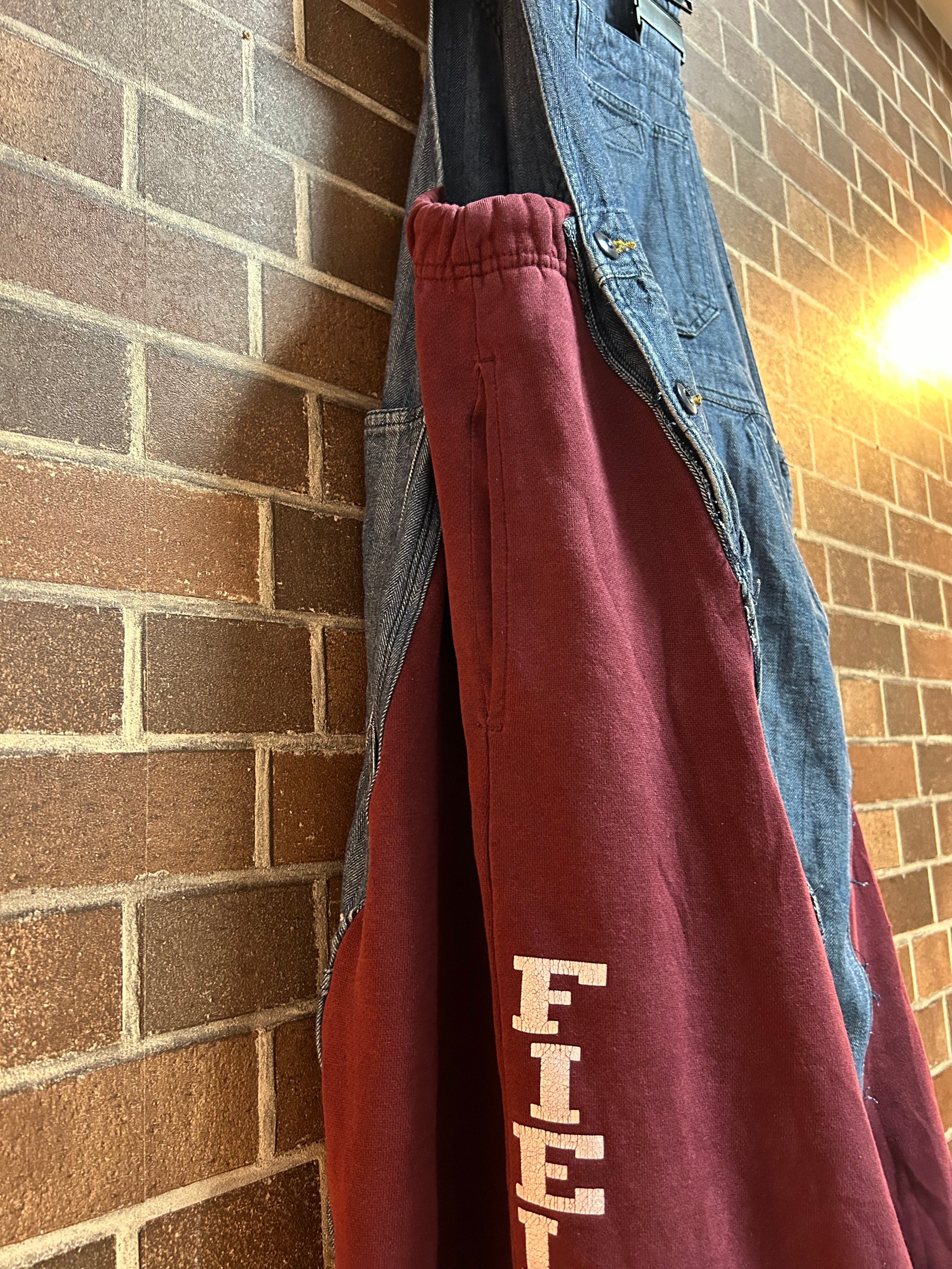 古着を使用して制作したスエットドッキングオーバーオールです。
