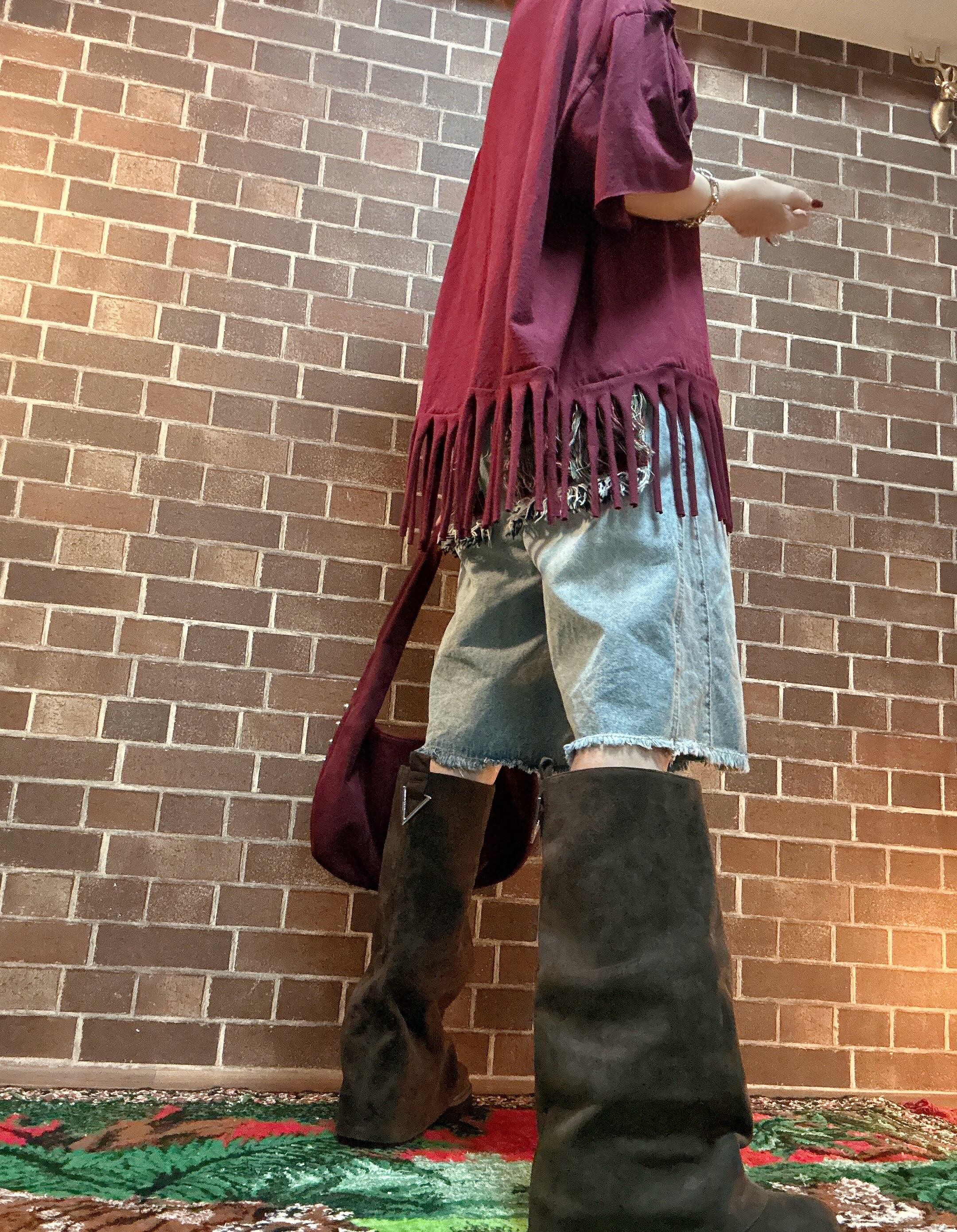 海外古着Tシャツを使用して制作したフリンジTシャツです。