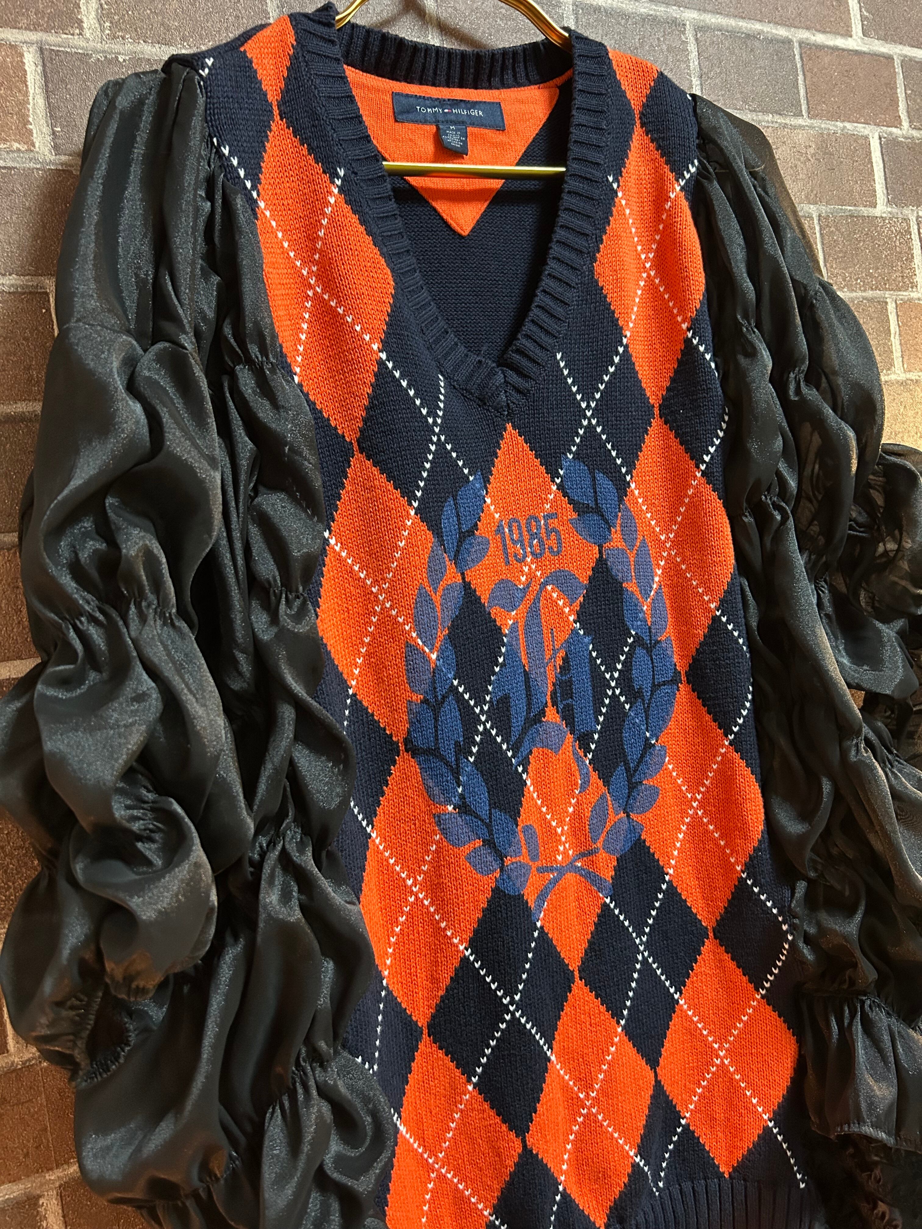 リメイク アーガイルコットンニット⭐︎異素材トップス