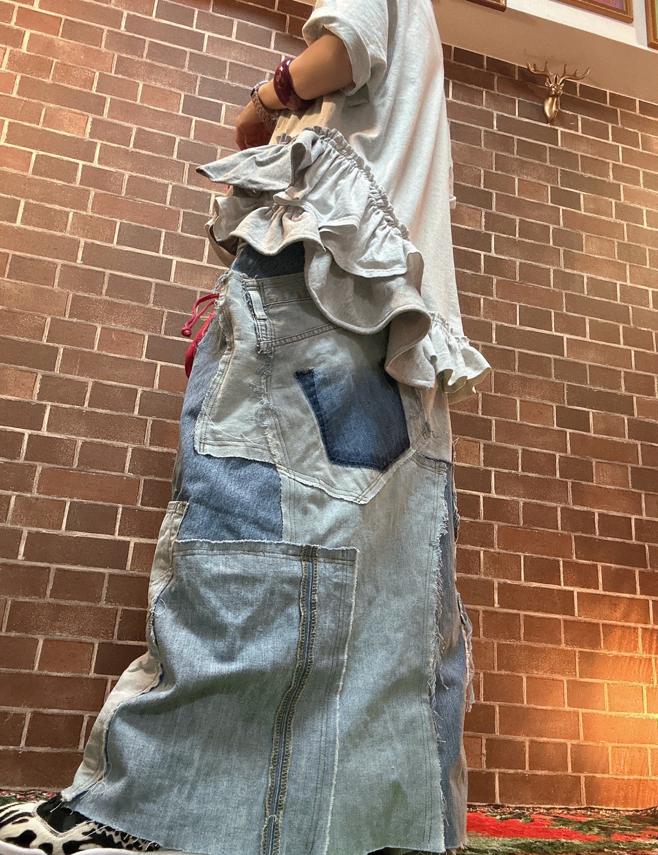 海外古着デニムを使用して制作したリメイクのロングスカートです⭐︎