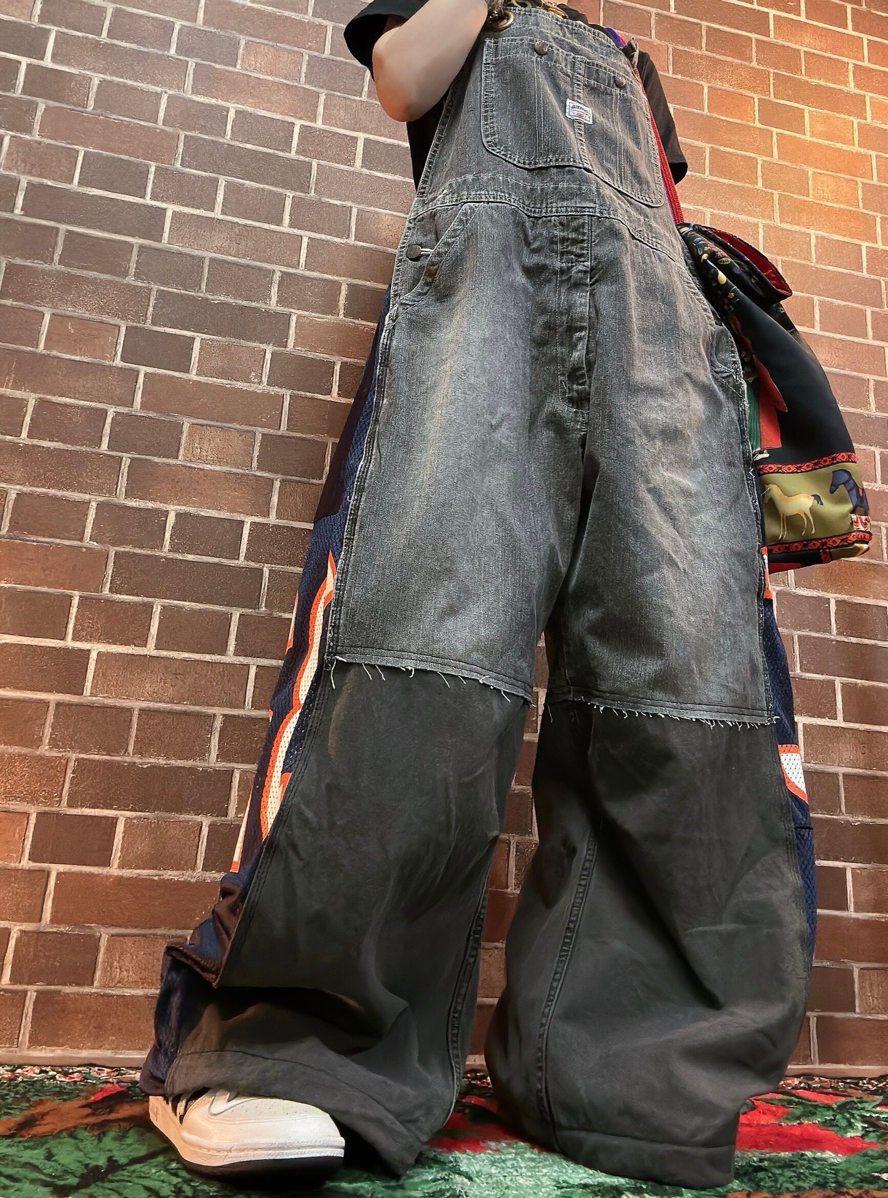 海外古着のゲームシャツとデニムオーバーオールをドッキング制作しました。