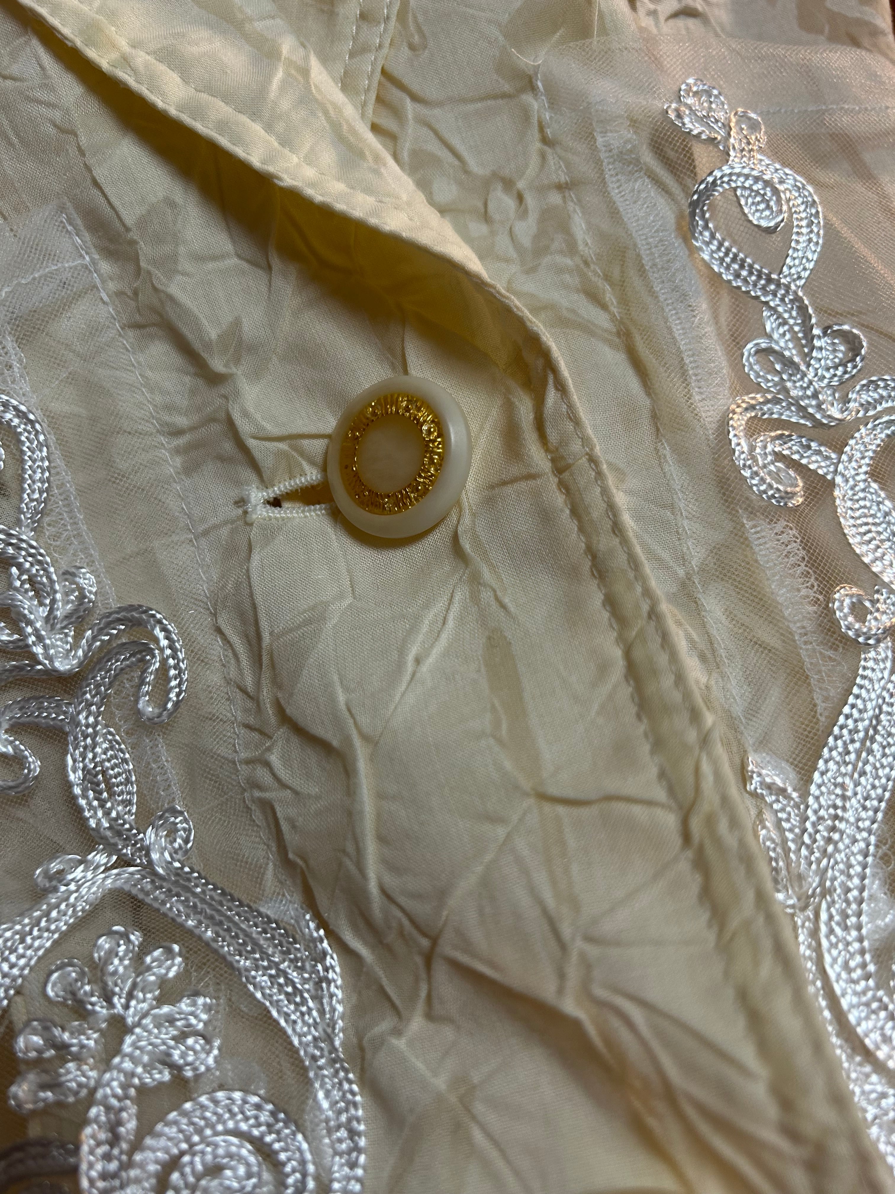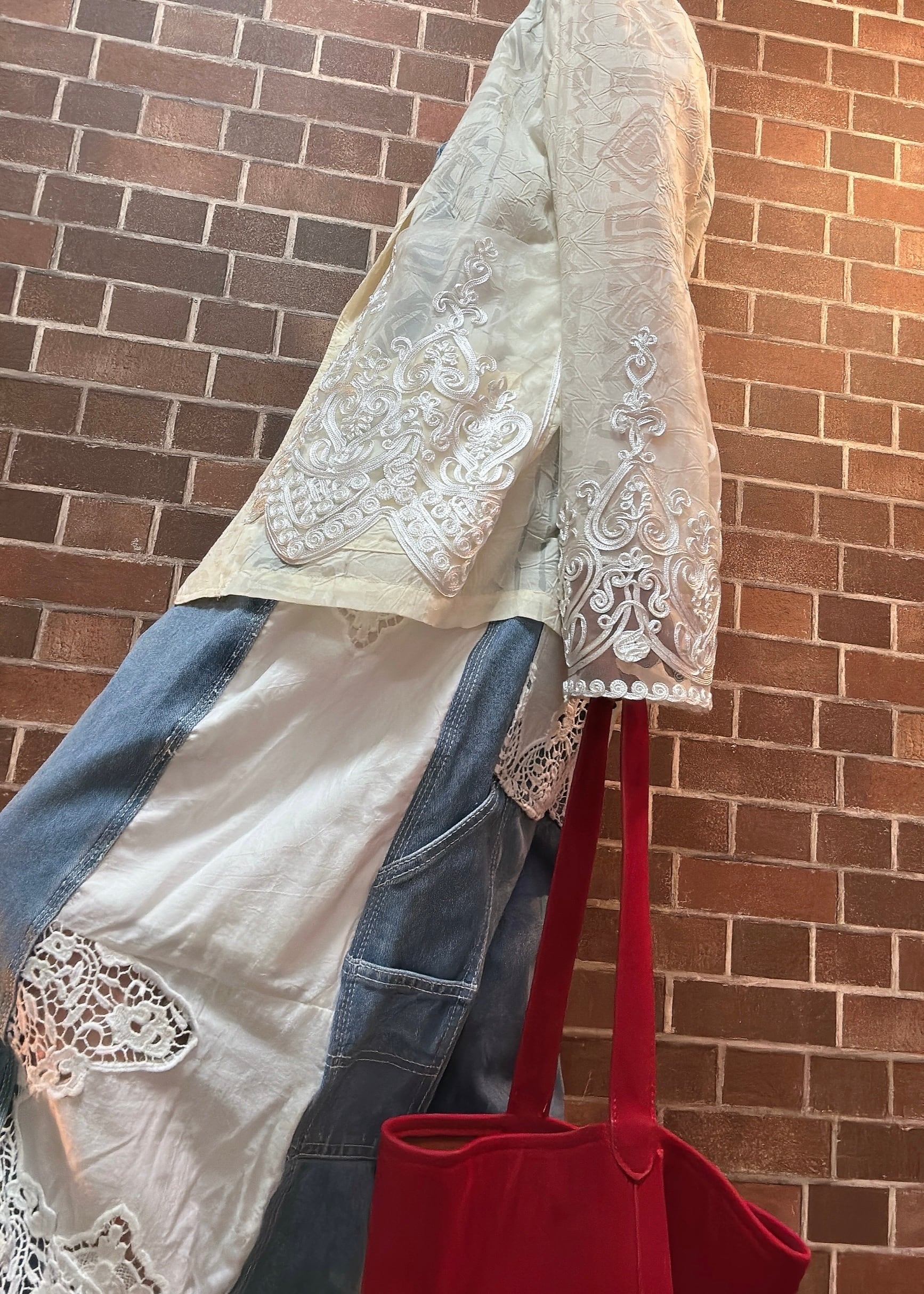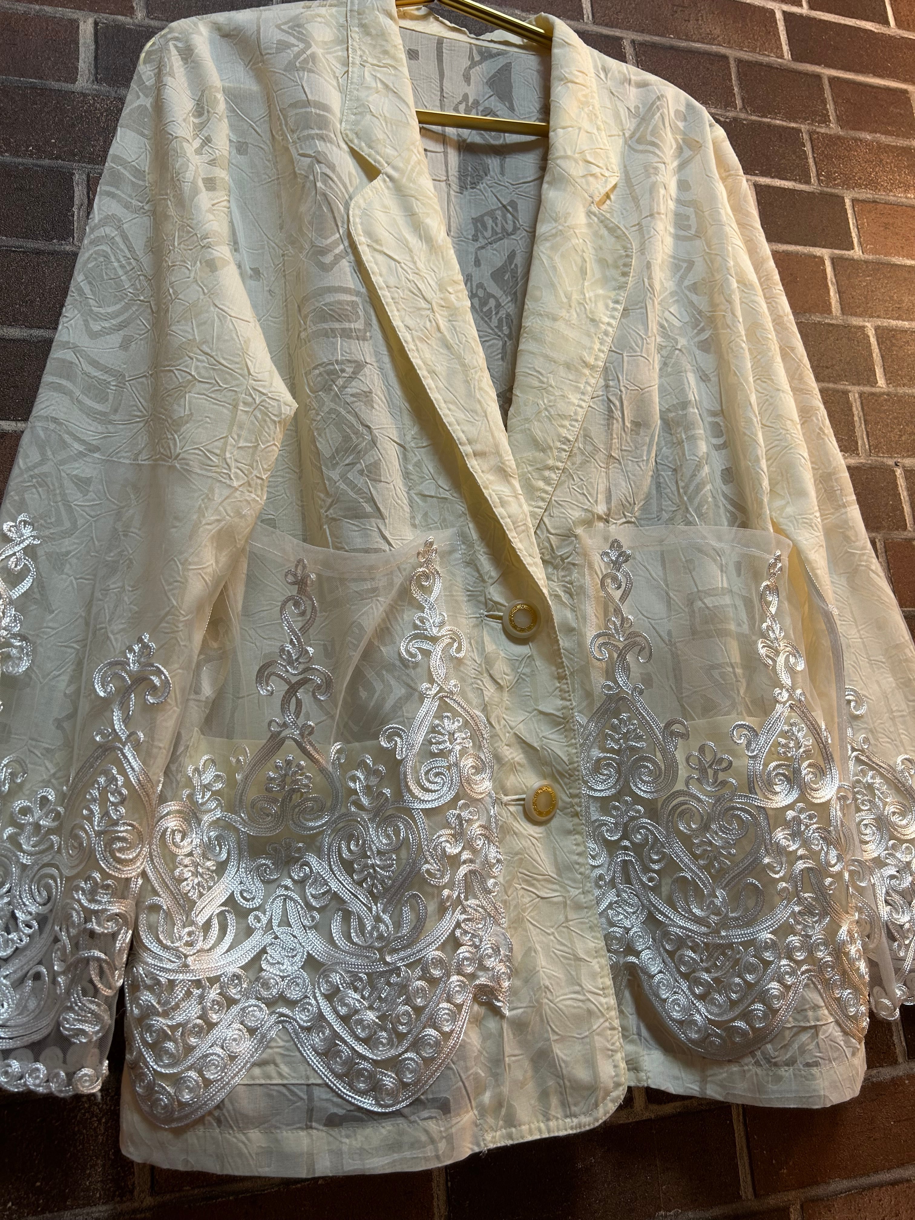 ビンテージのシースルーレースとジャケットを使用して制作したリメイクのシアージャケットです。