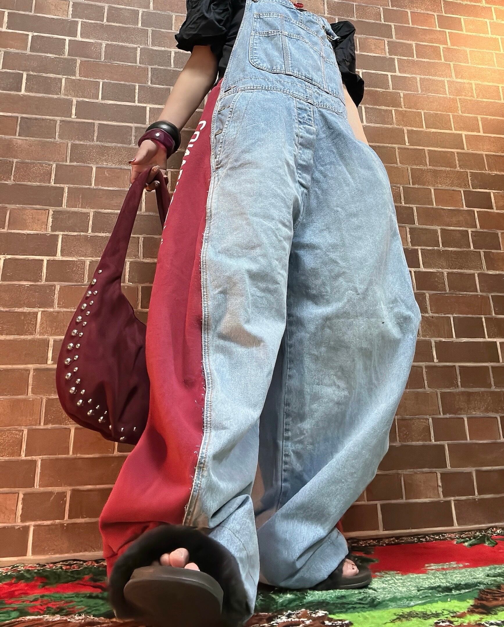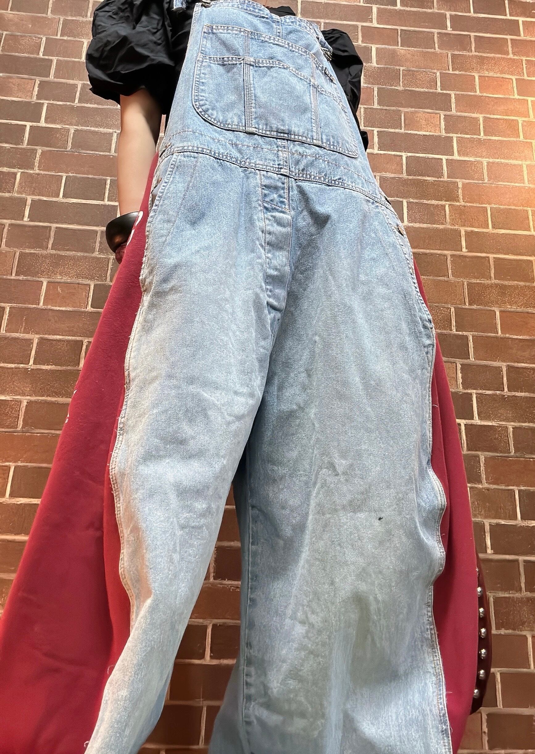 古着スエットとデニムのオーバーオールをドッキングしたリメイクオーバーオールです⭐︎
