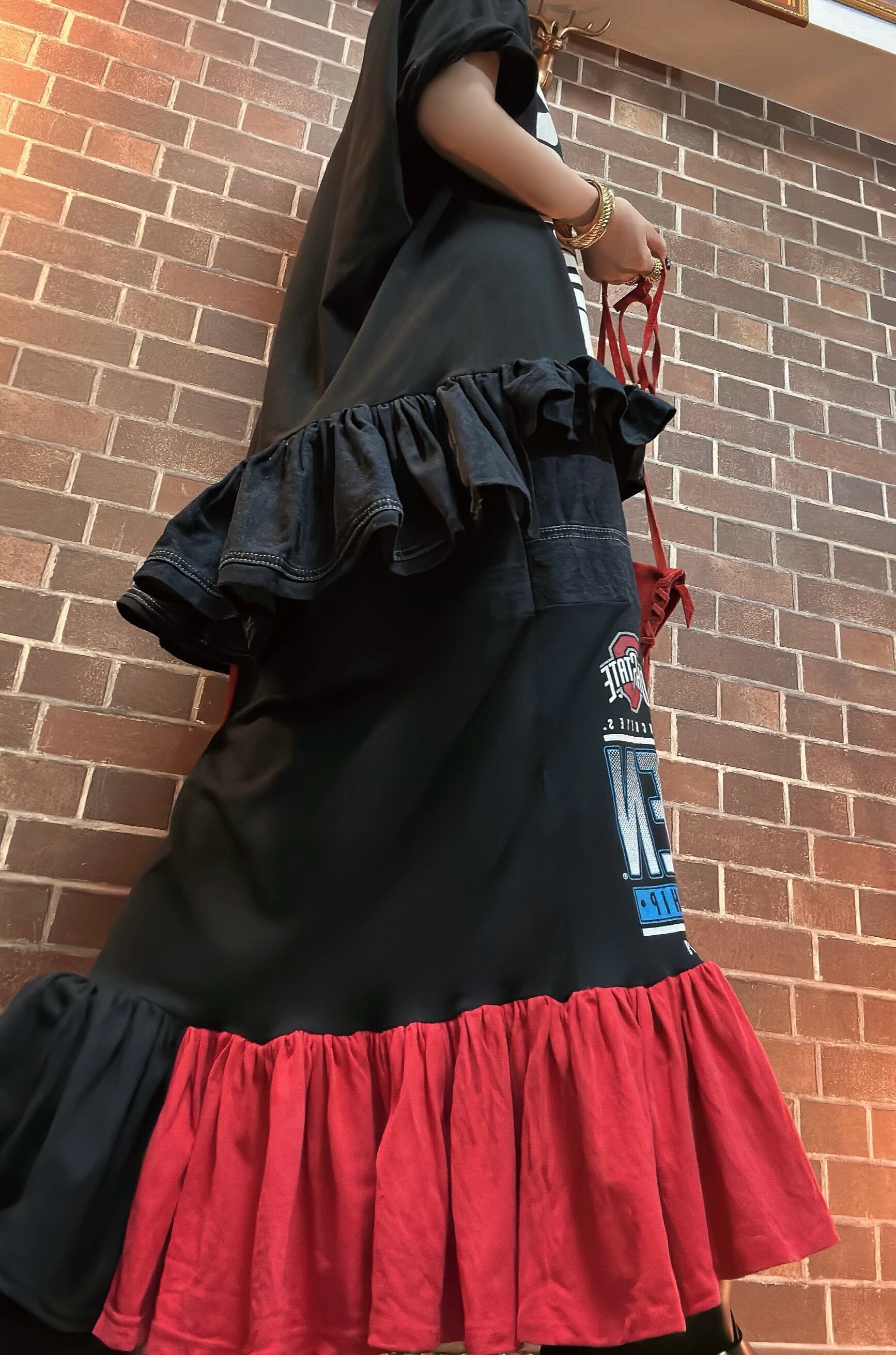 リメイク 海外古着Tシャツ×デニムパッチワークワンピース