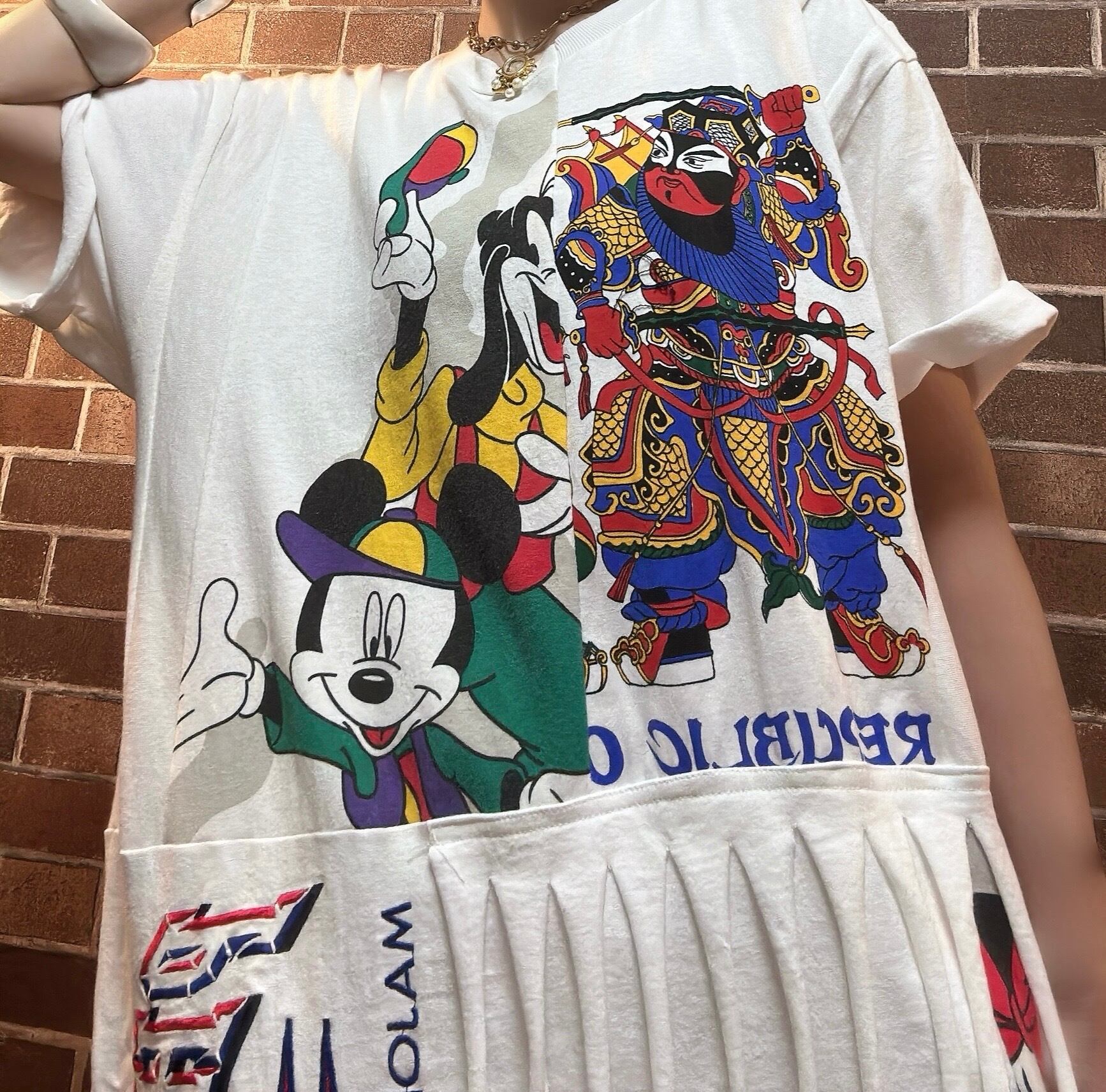 海外古着Tシャツを使用して制作したリメイクのパッチワークワンピースです⭐︎