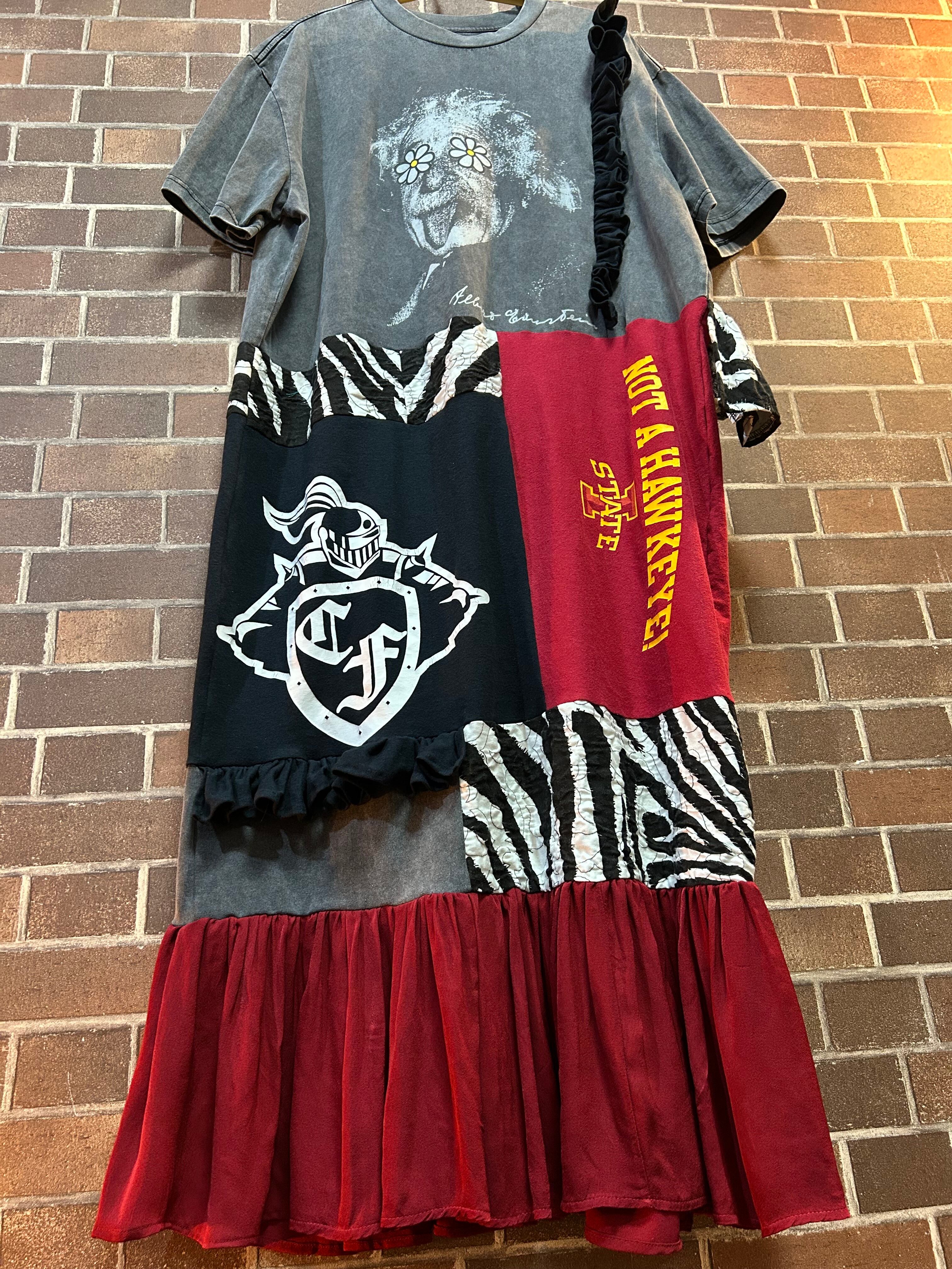 古着Tシャツと異素材生地をミックスして制作したパッチワークワンピースです⭐︎