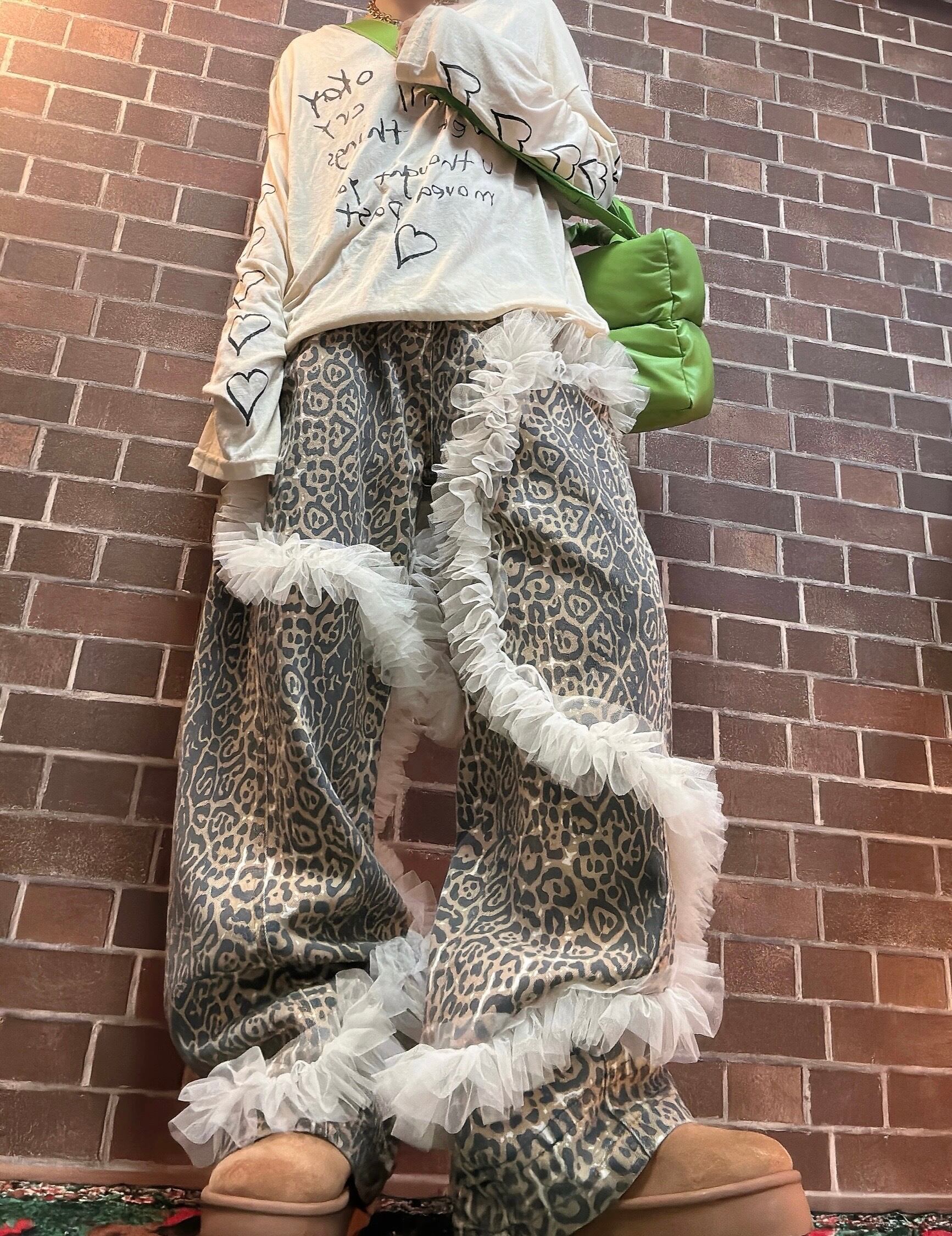 薄手の柔らかレオパードデニムにチュールフリルをリメイクしました⭐︎