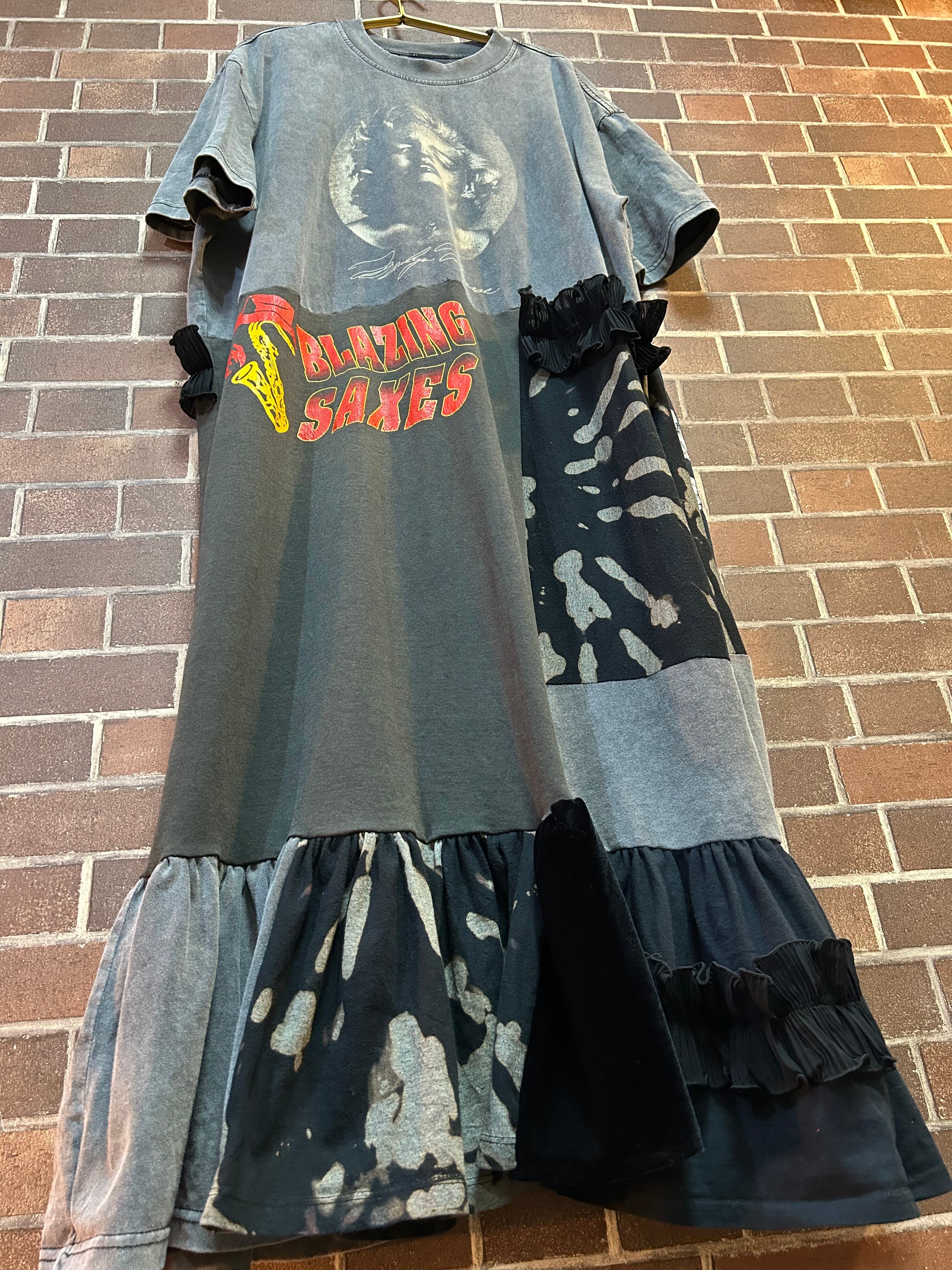 古着Tシャツやベロアなどの異素材パッチワークのリメイクワンピースです⭐︎