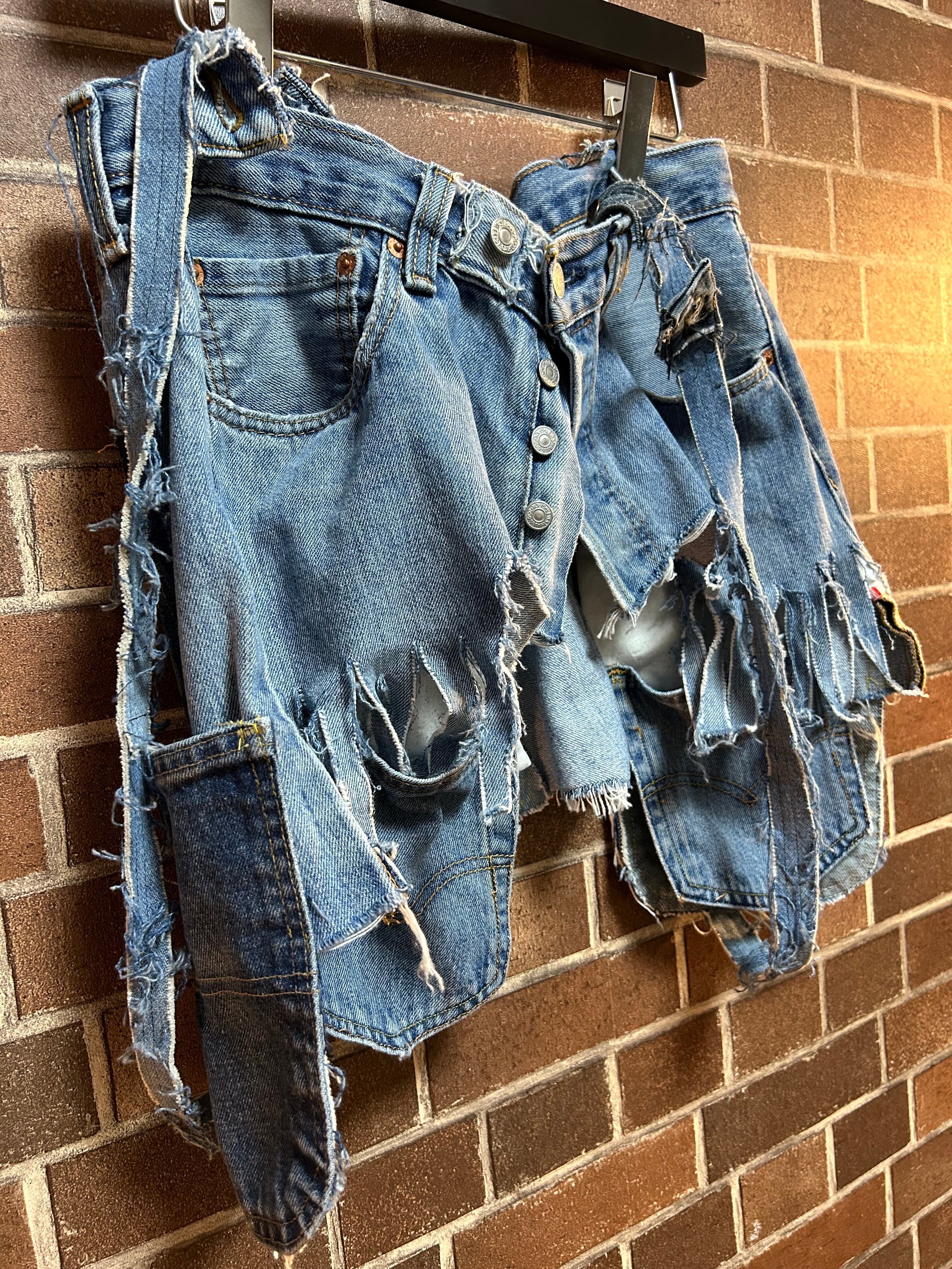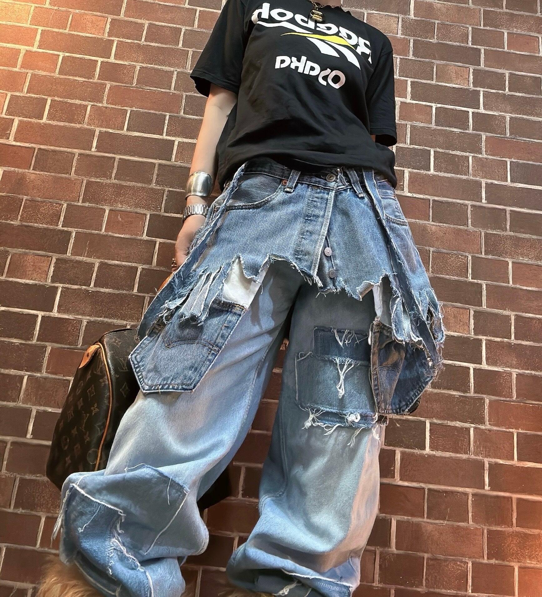古着デニムを使用して制作したリメイクのラップスカートです⭐︎