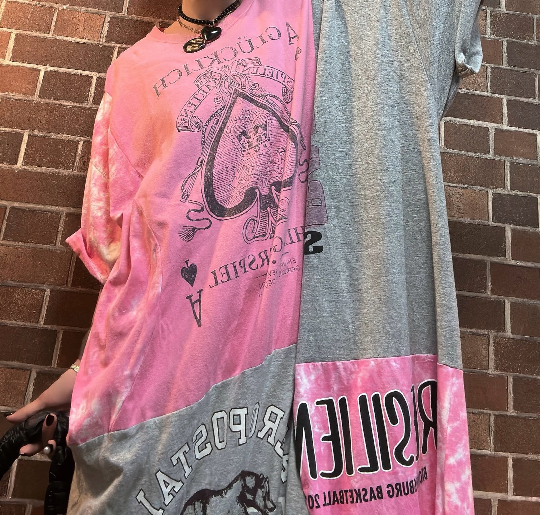 海外古着Tシャツを使用して制作したパッチワークワンピースです⭐︎