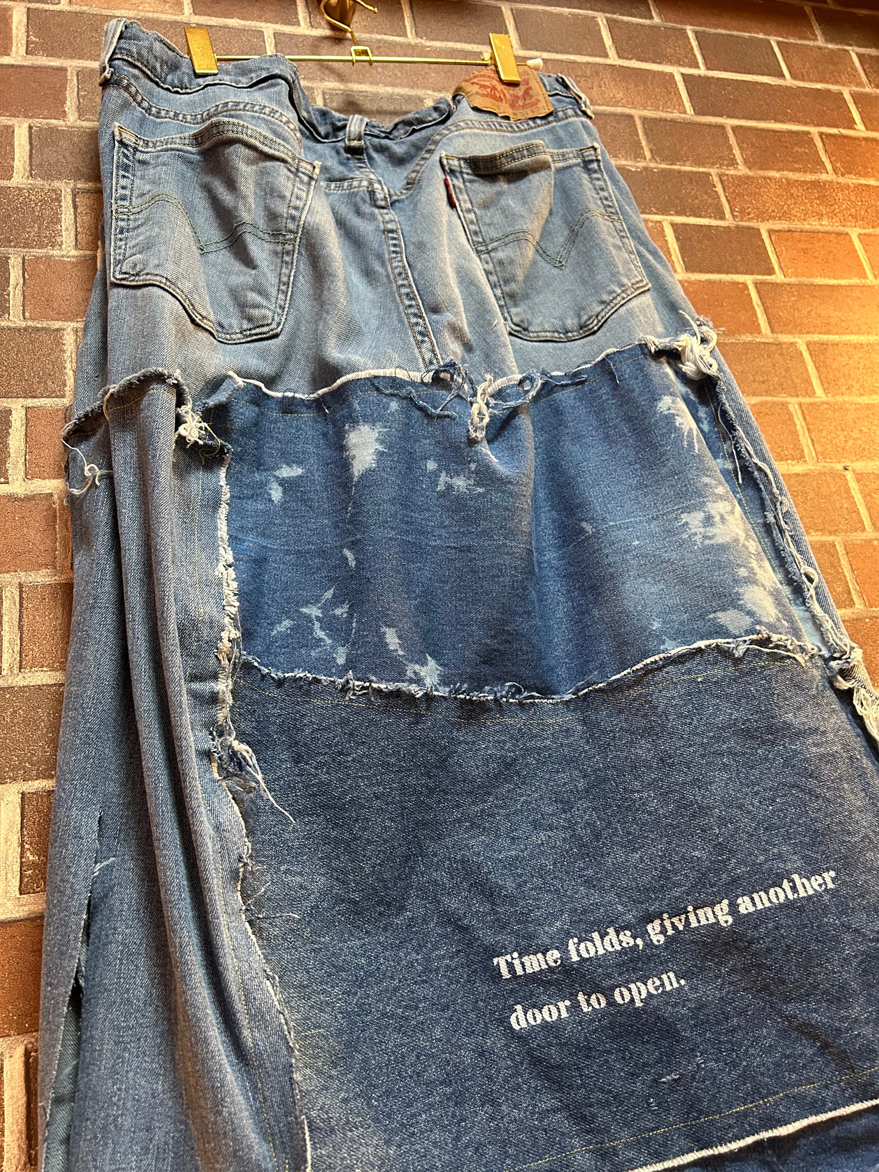 古着のデニムを使用して制作したリメイクのパッチワークスカートです⭐︎