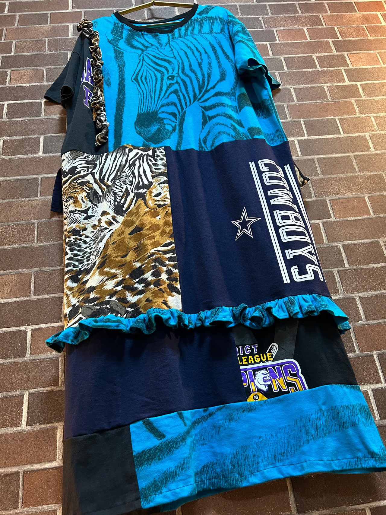 海外古着Tシャツを使用して制作したリメイクのパッチワークワンピースです⭐︎