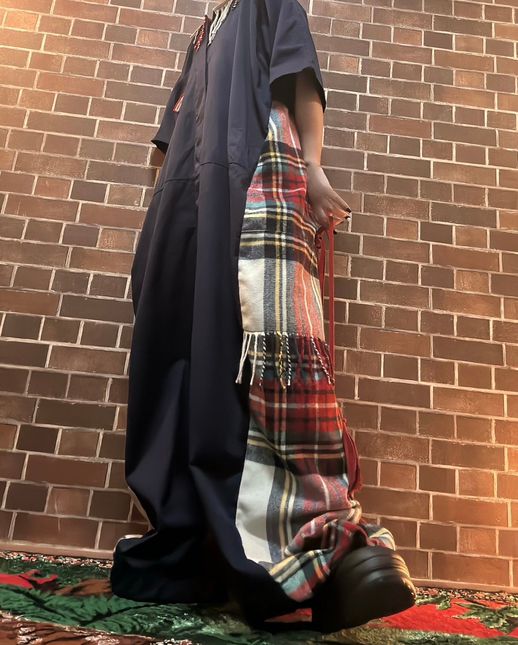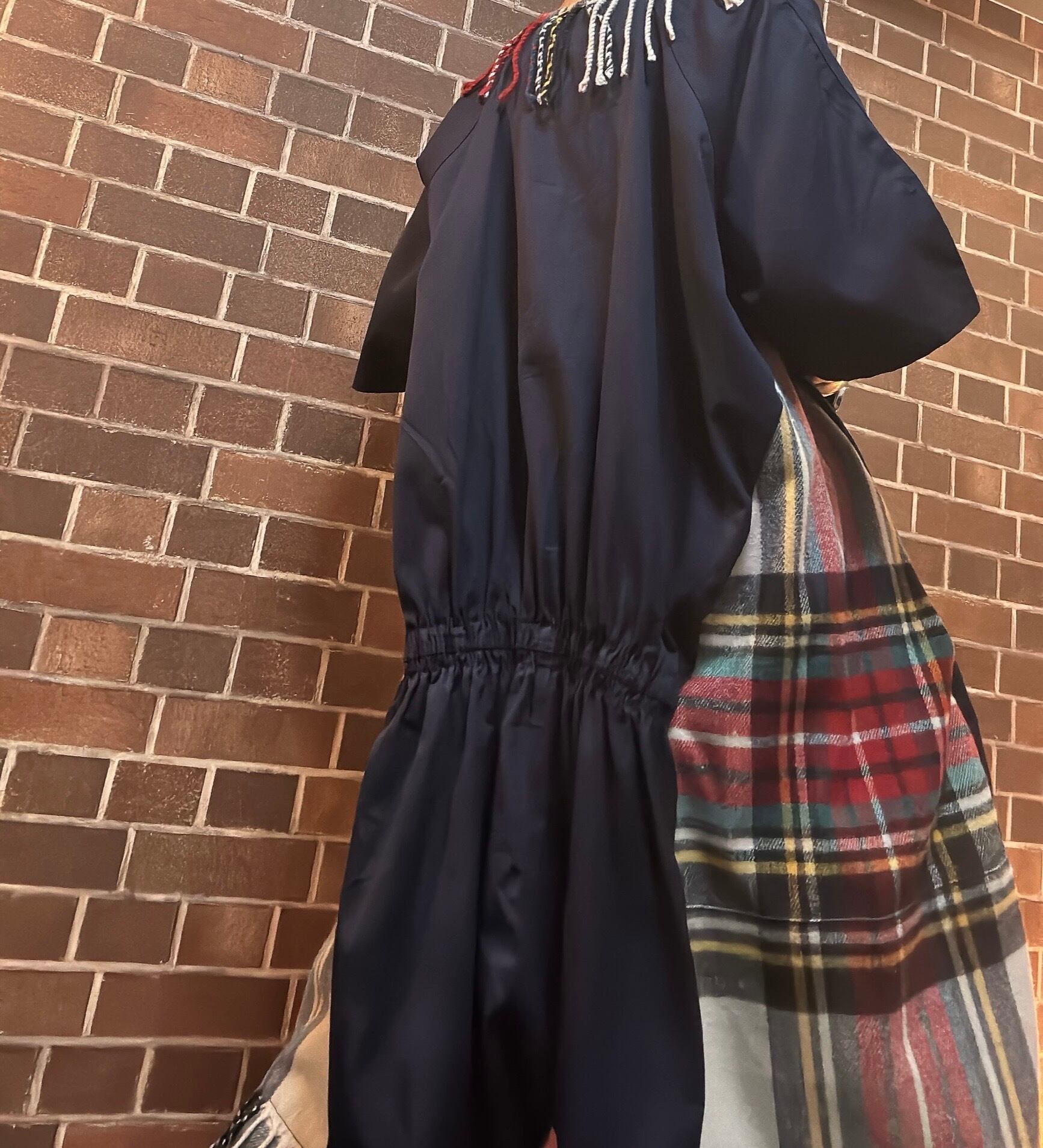 80sの USA製オールインワンにチェック柄生地をドッキングしたリメイク品です⭐︎