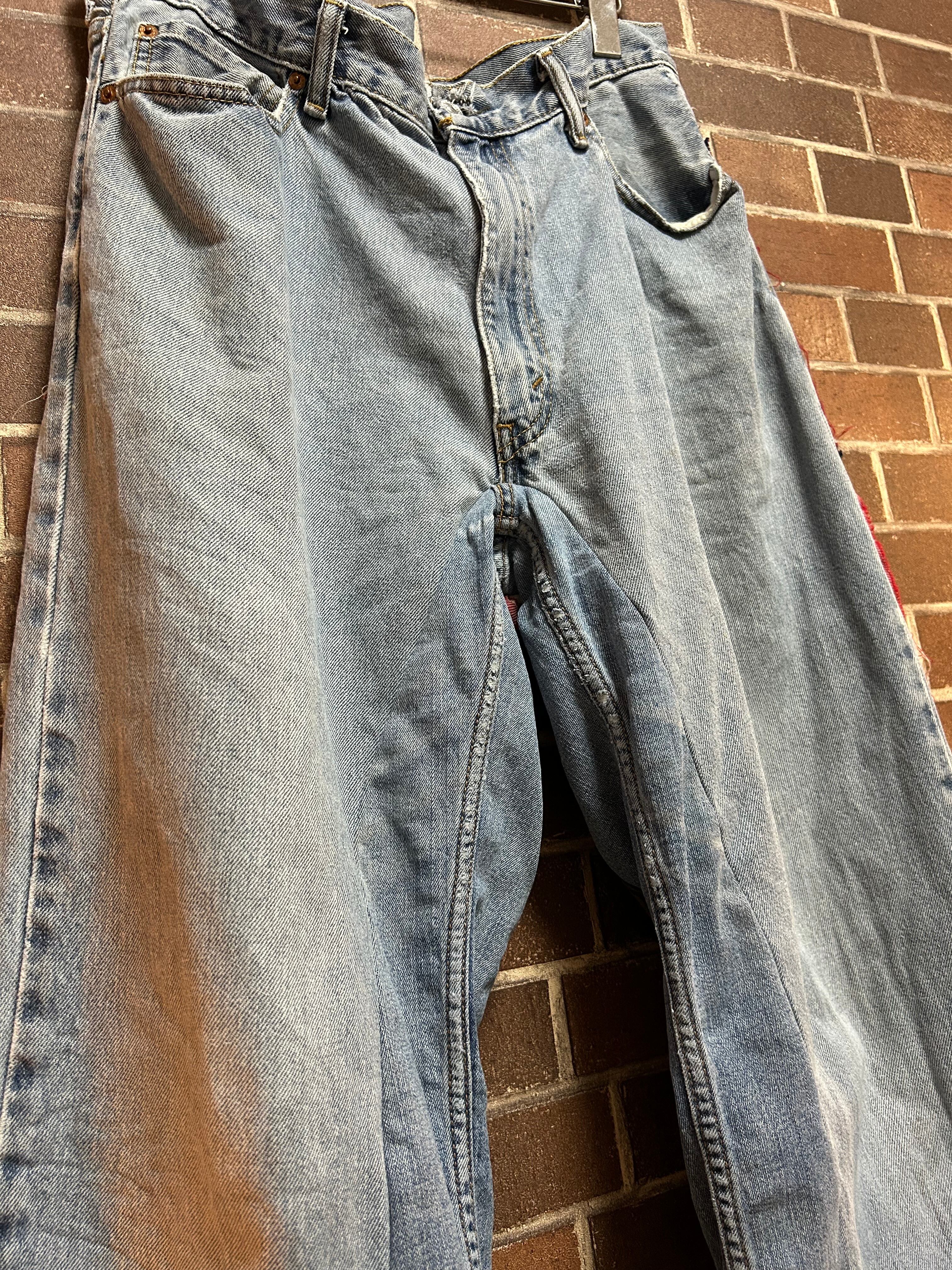 古着のネルチェックシャツやデニムを使用して制作したリメイクのドッキングパンツです⭐︎