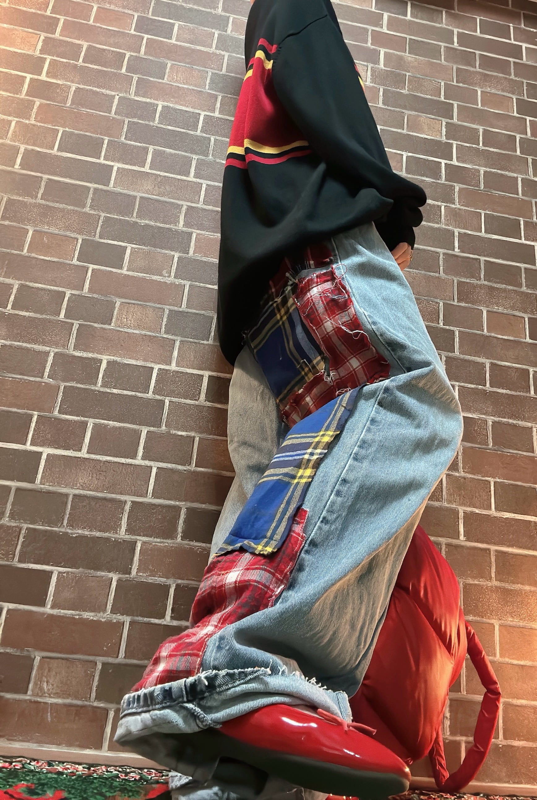 リメイク 古着チェックシャツ⭐︎デニムドッキングパンツ