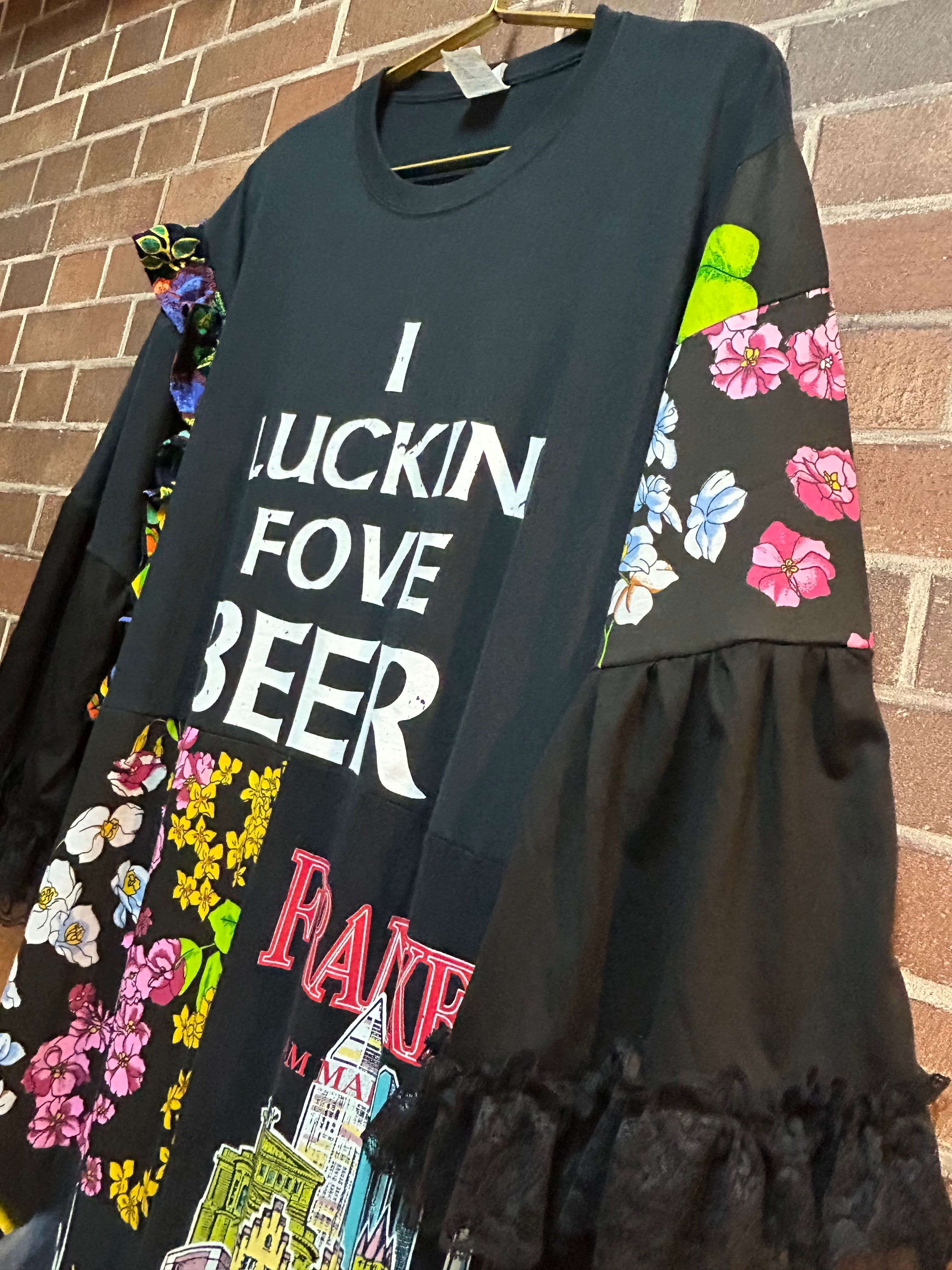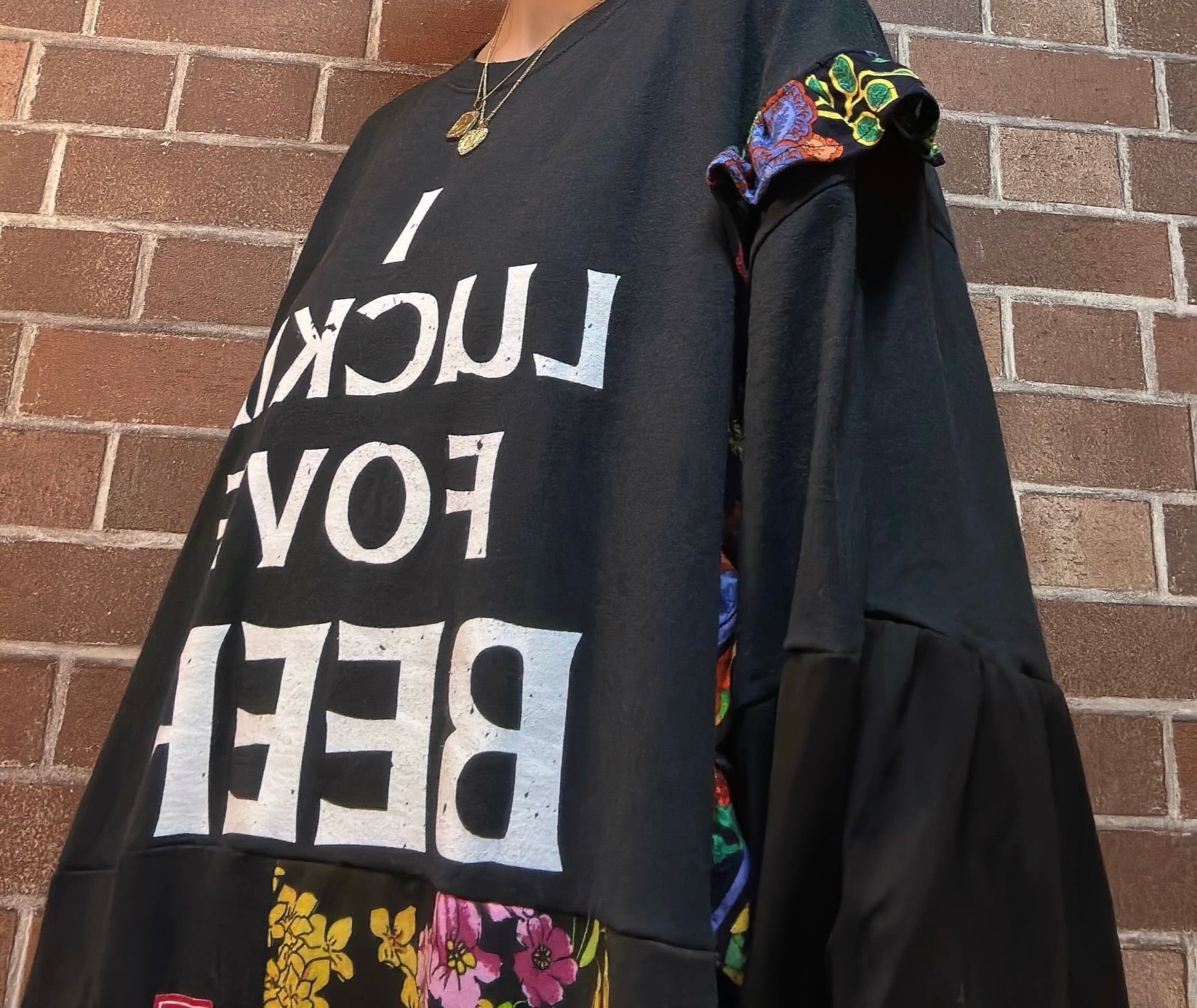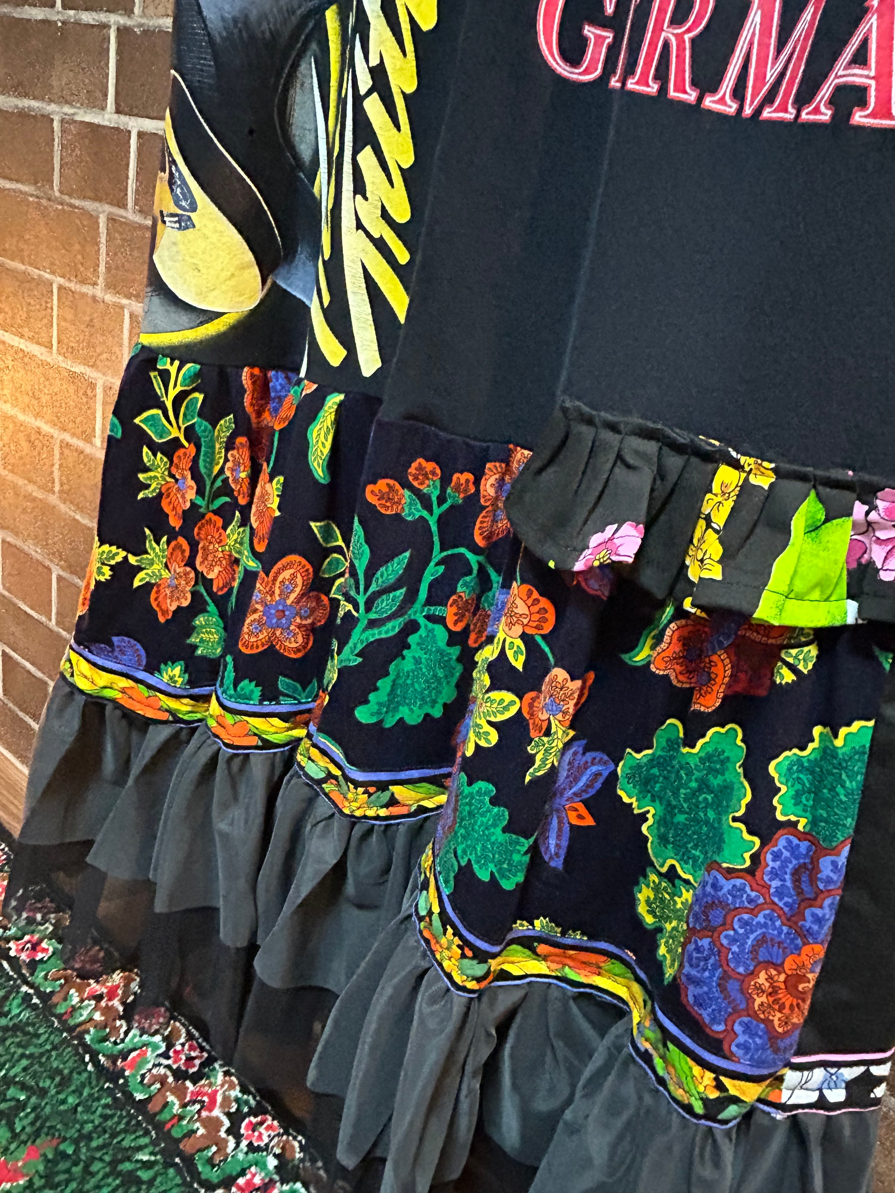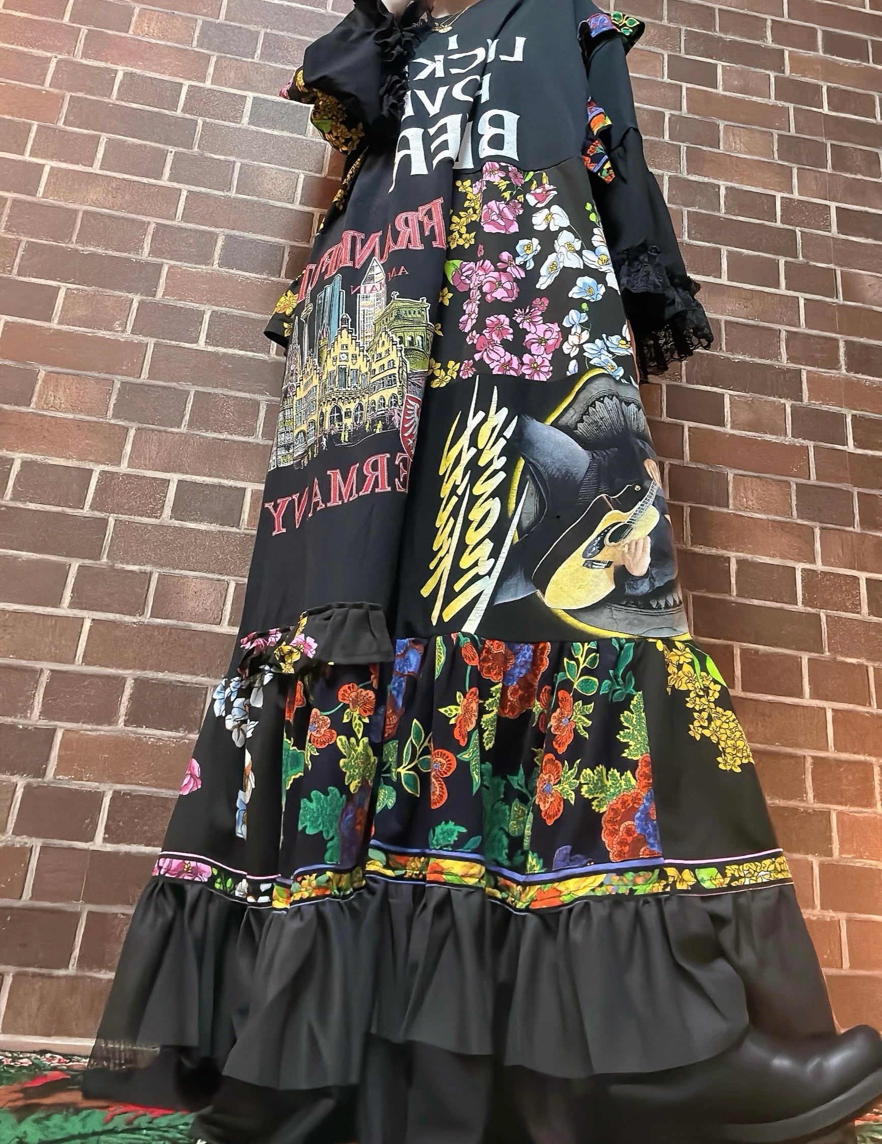 海外古着Tシャツを使用して制作したリメイクのフリルワンピースです⭐︎