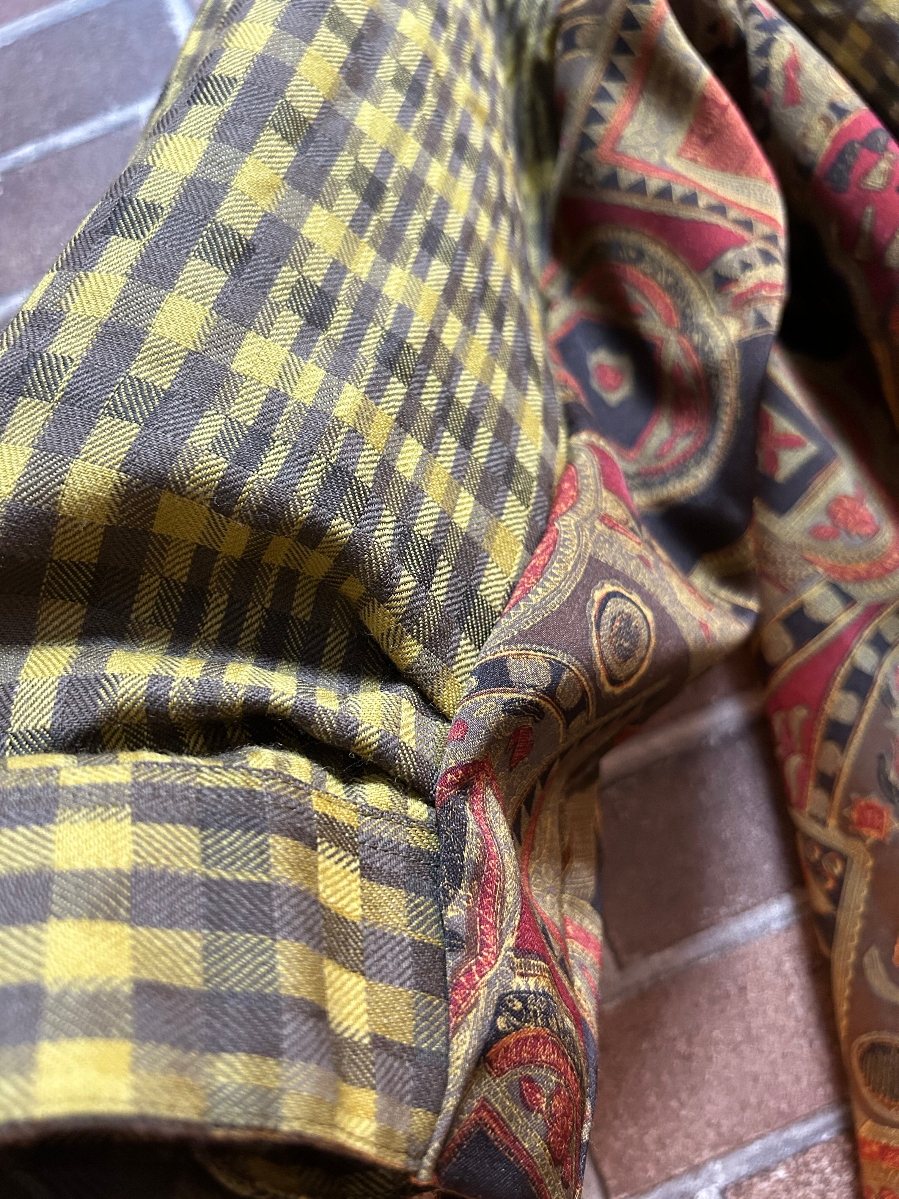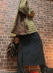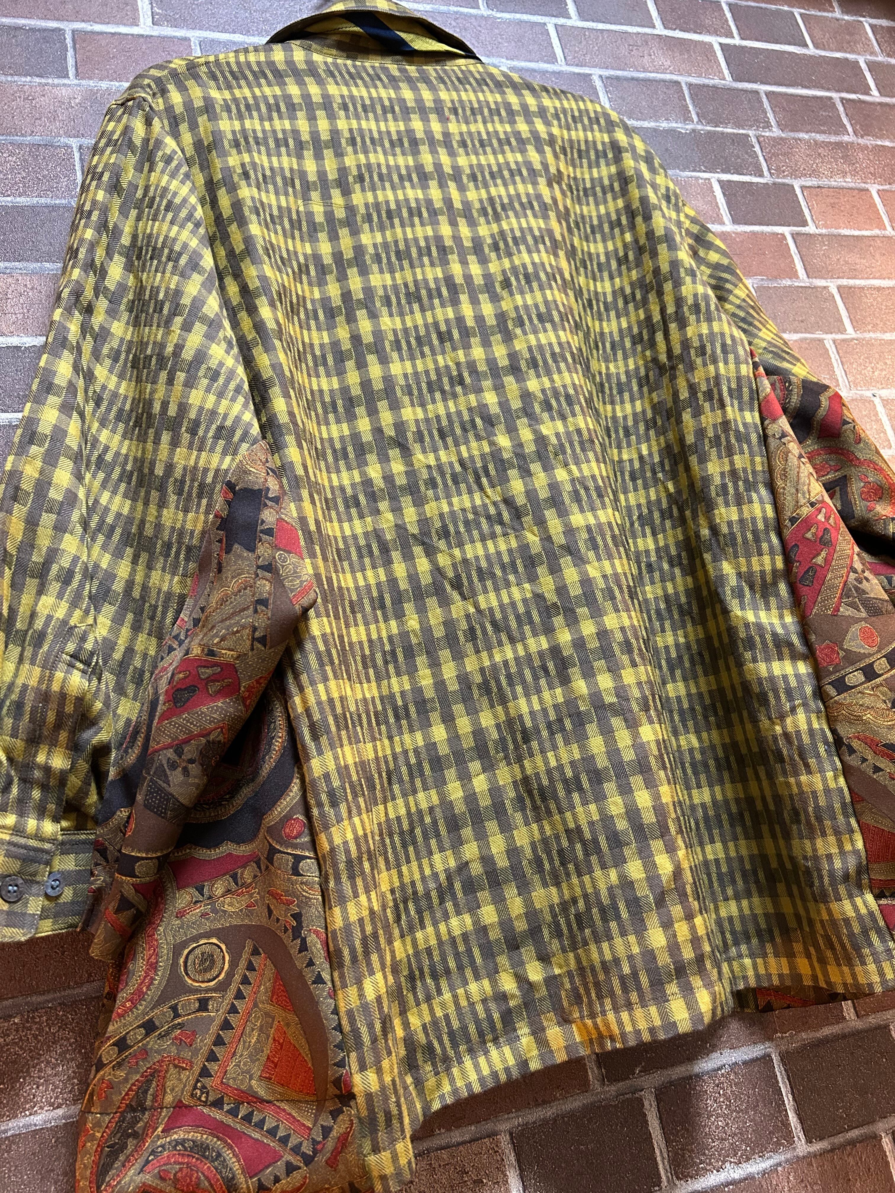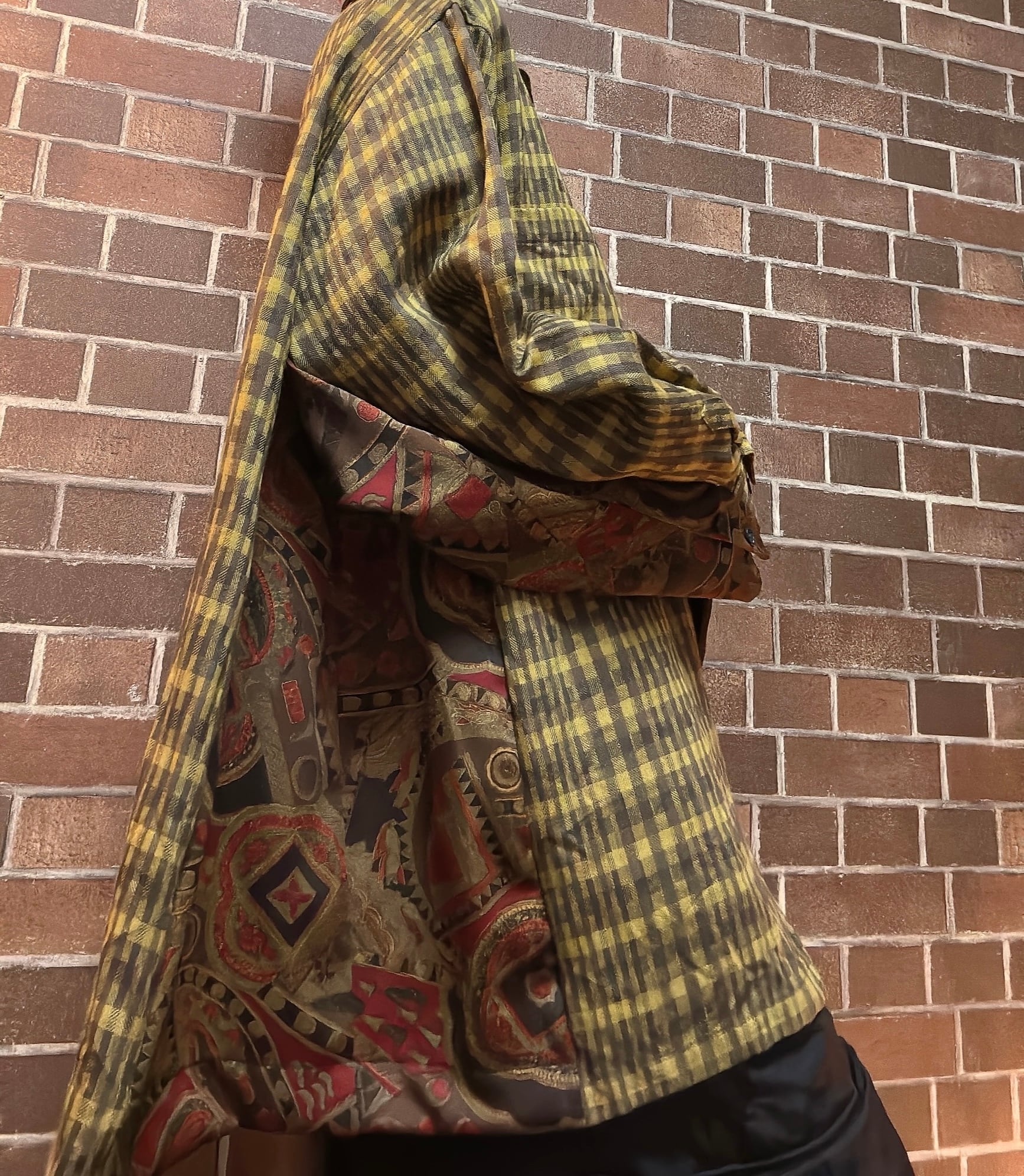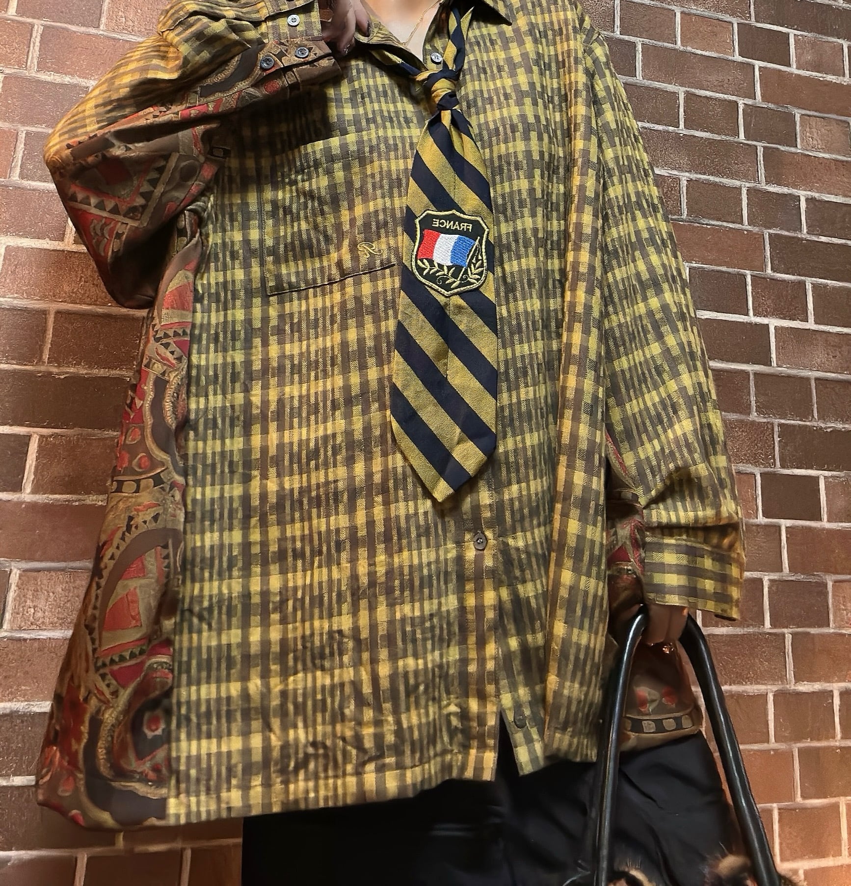 古着のチェックシャツとビンテージジャケットを使用して制作したリメイクのトップスです。