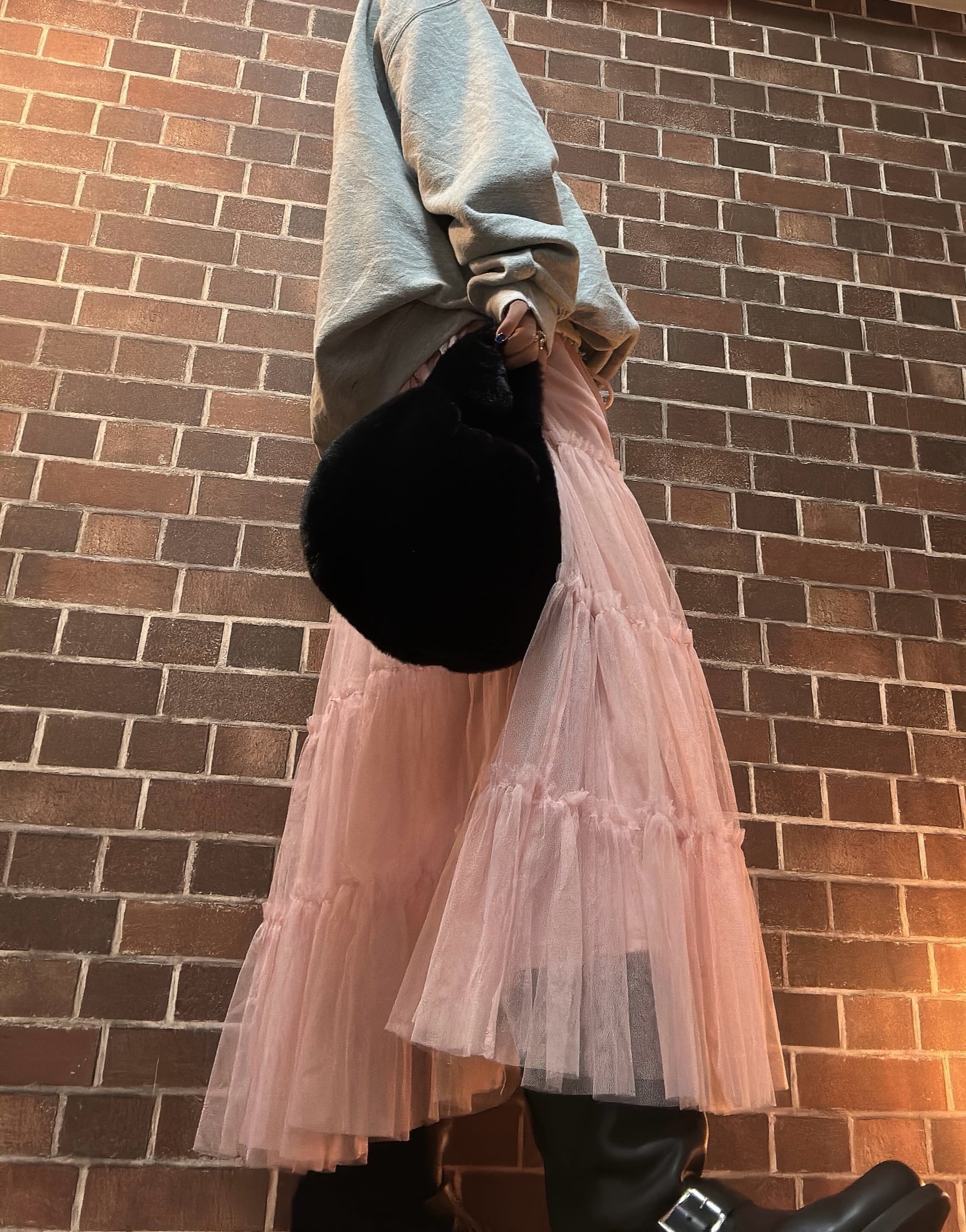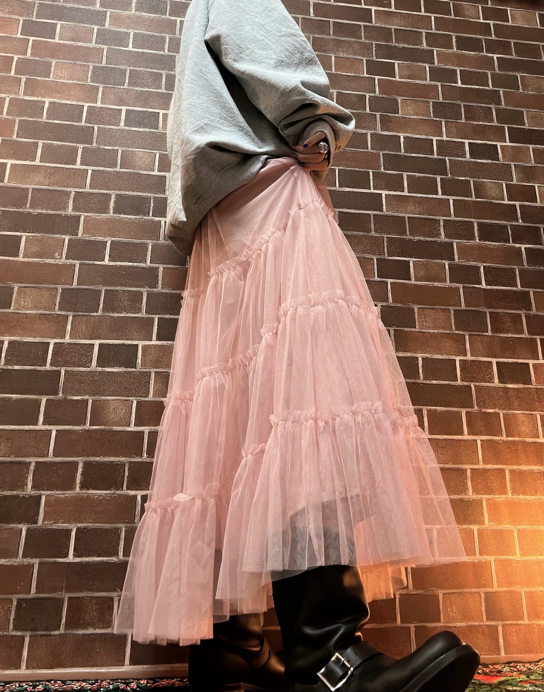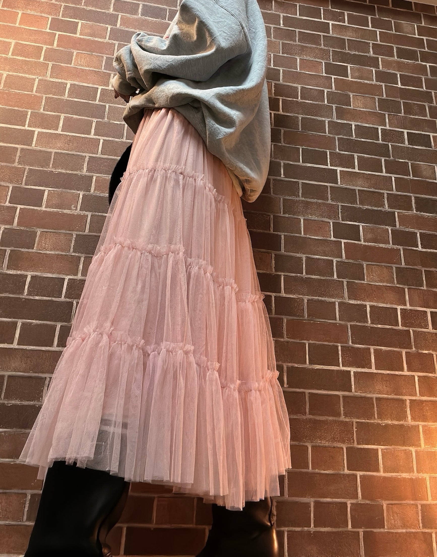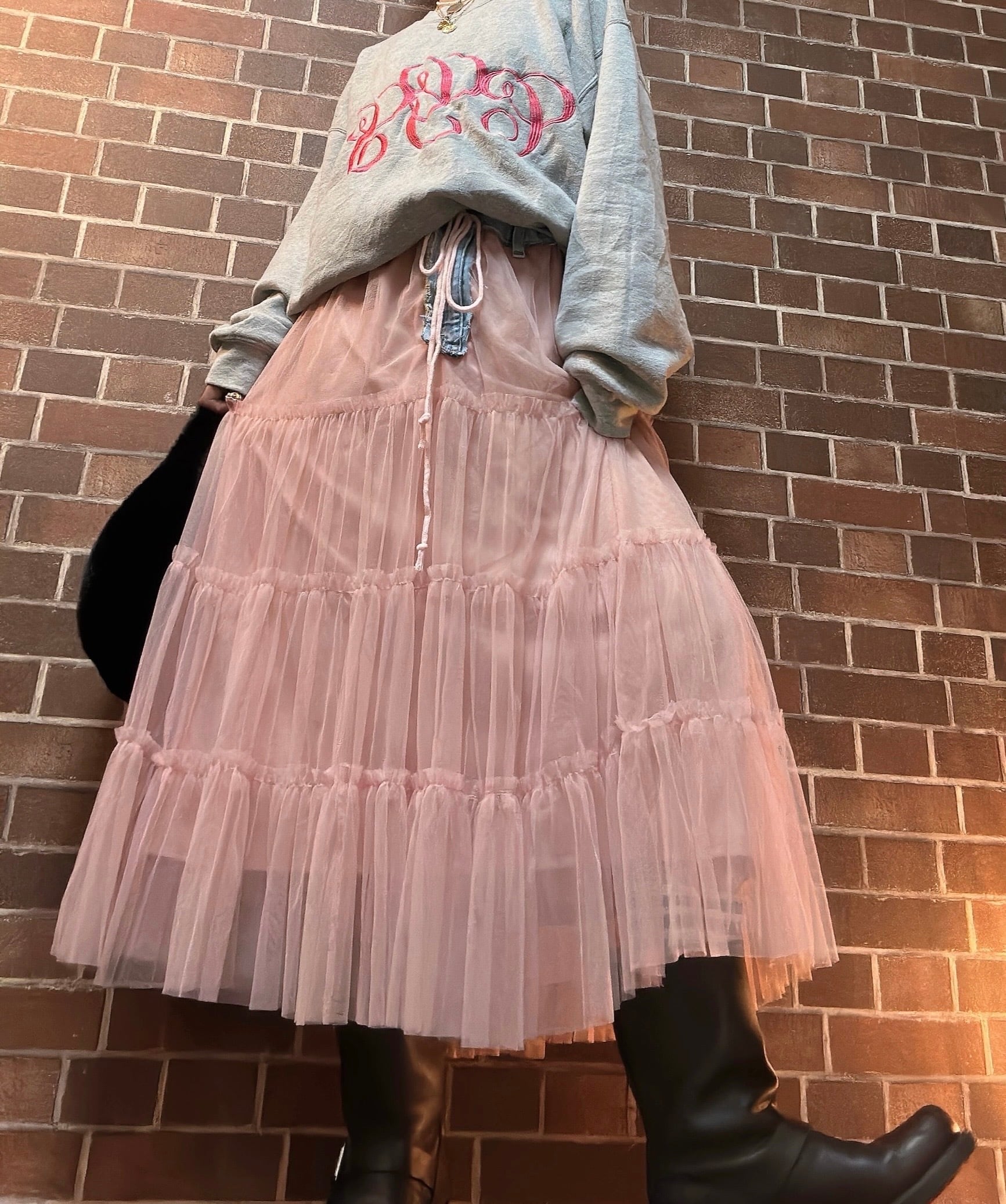 古着デニムとチュールスカートを使用して制作したリメイクスカートです⭐︎