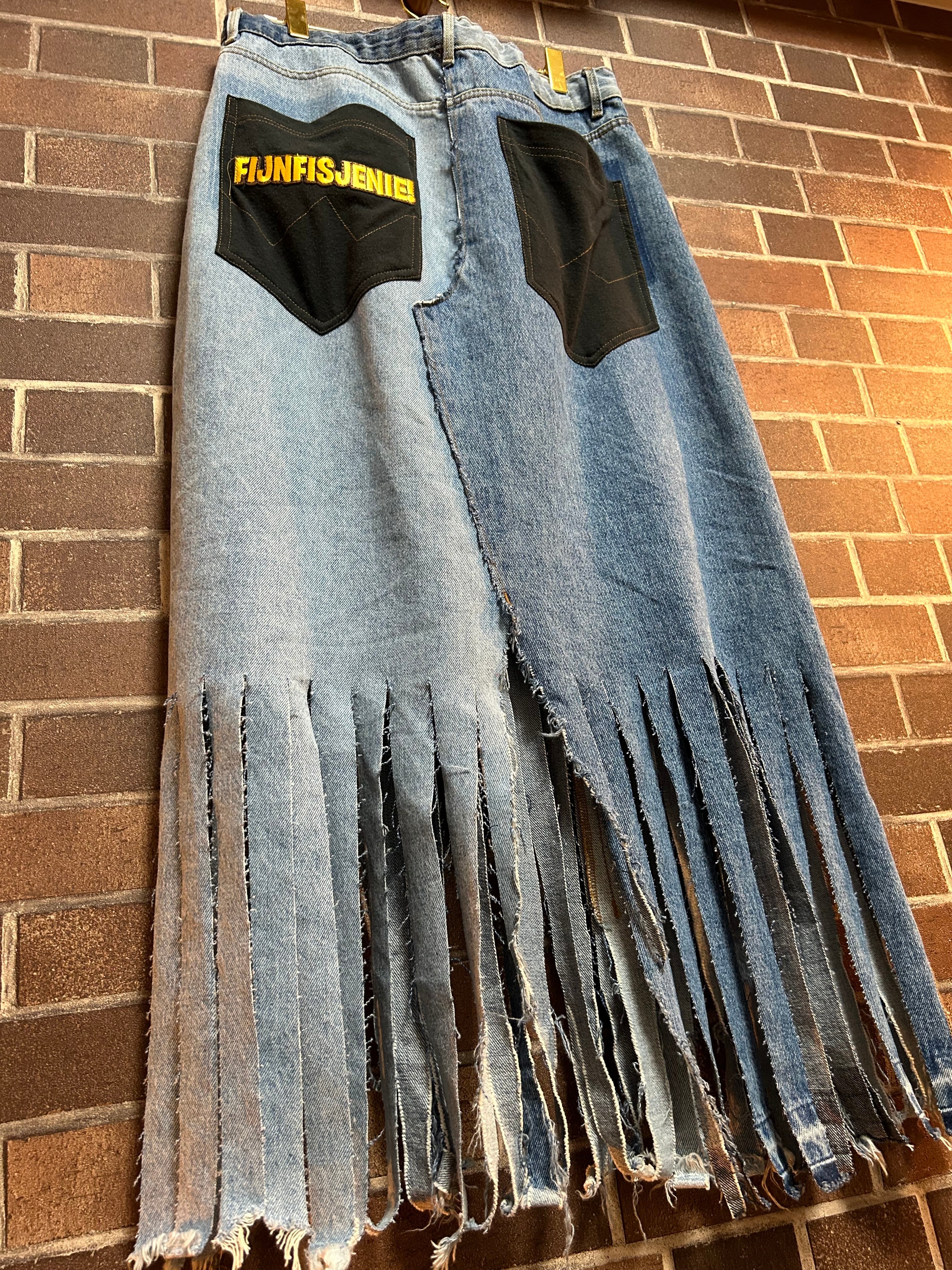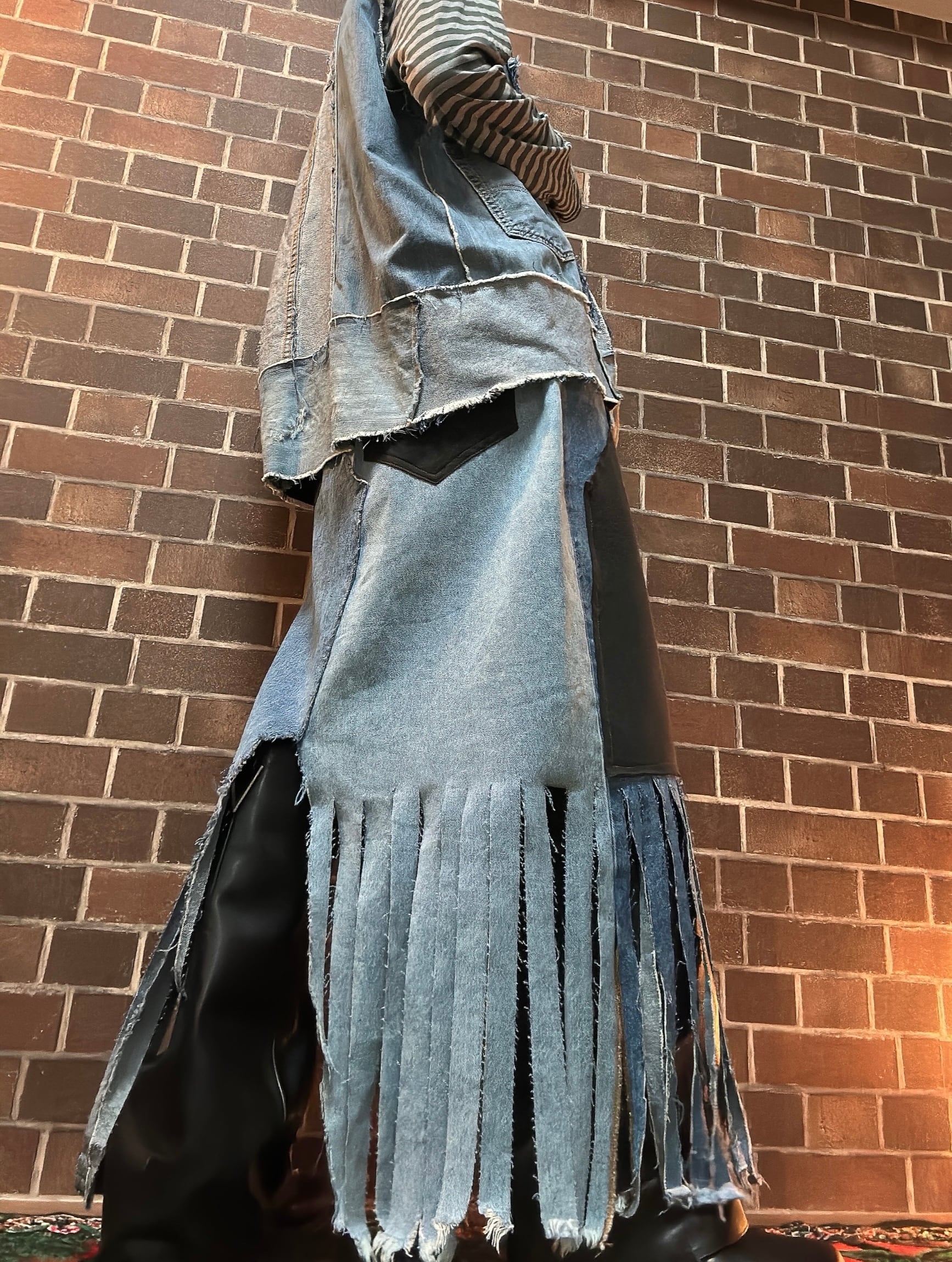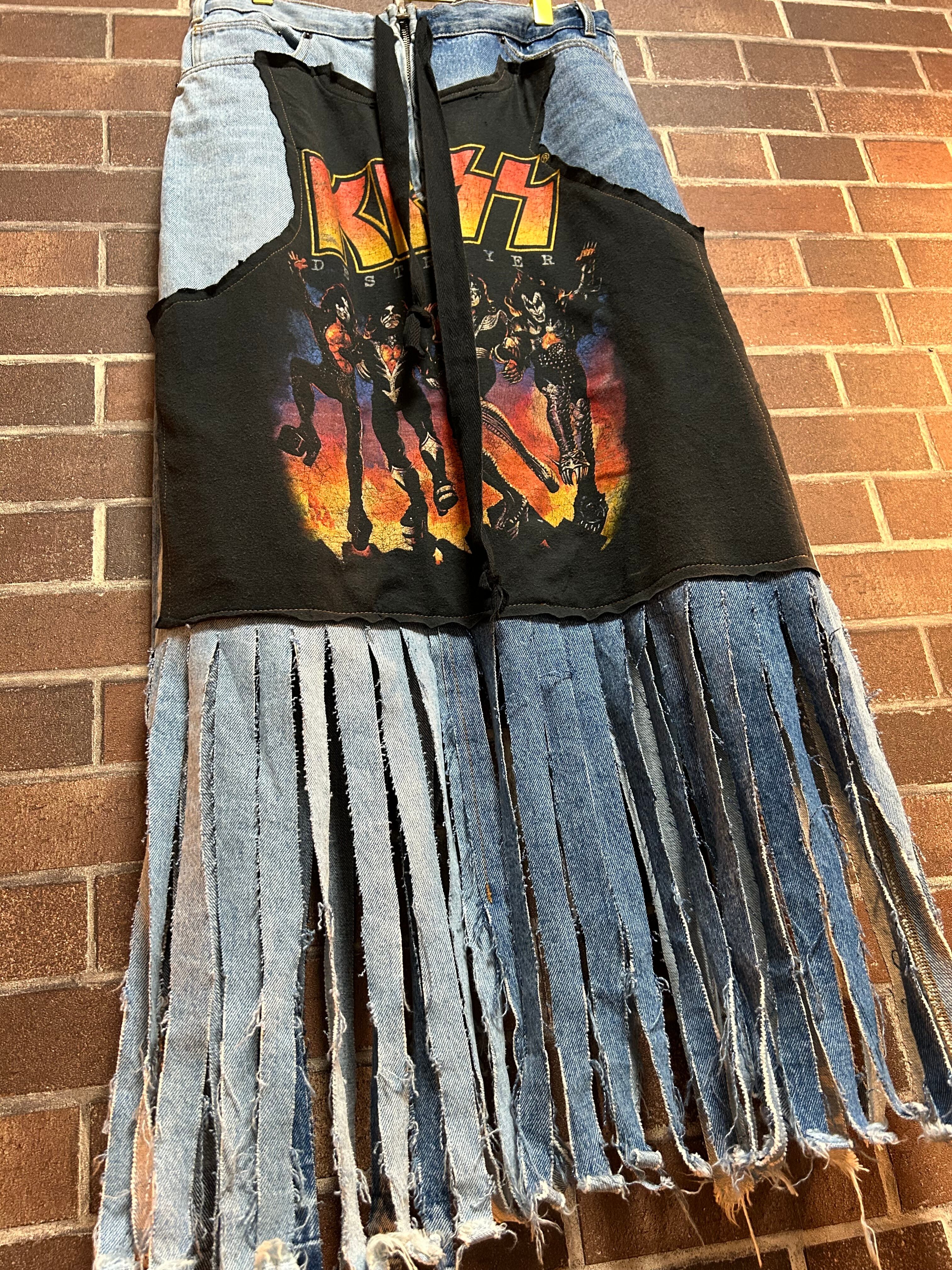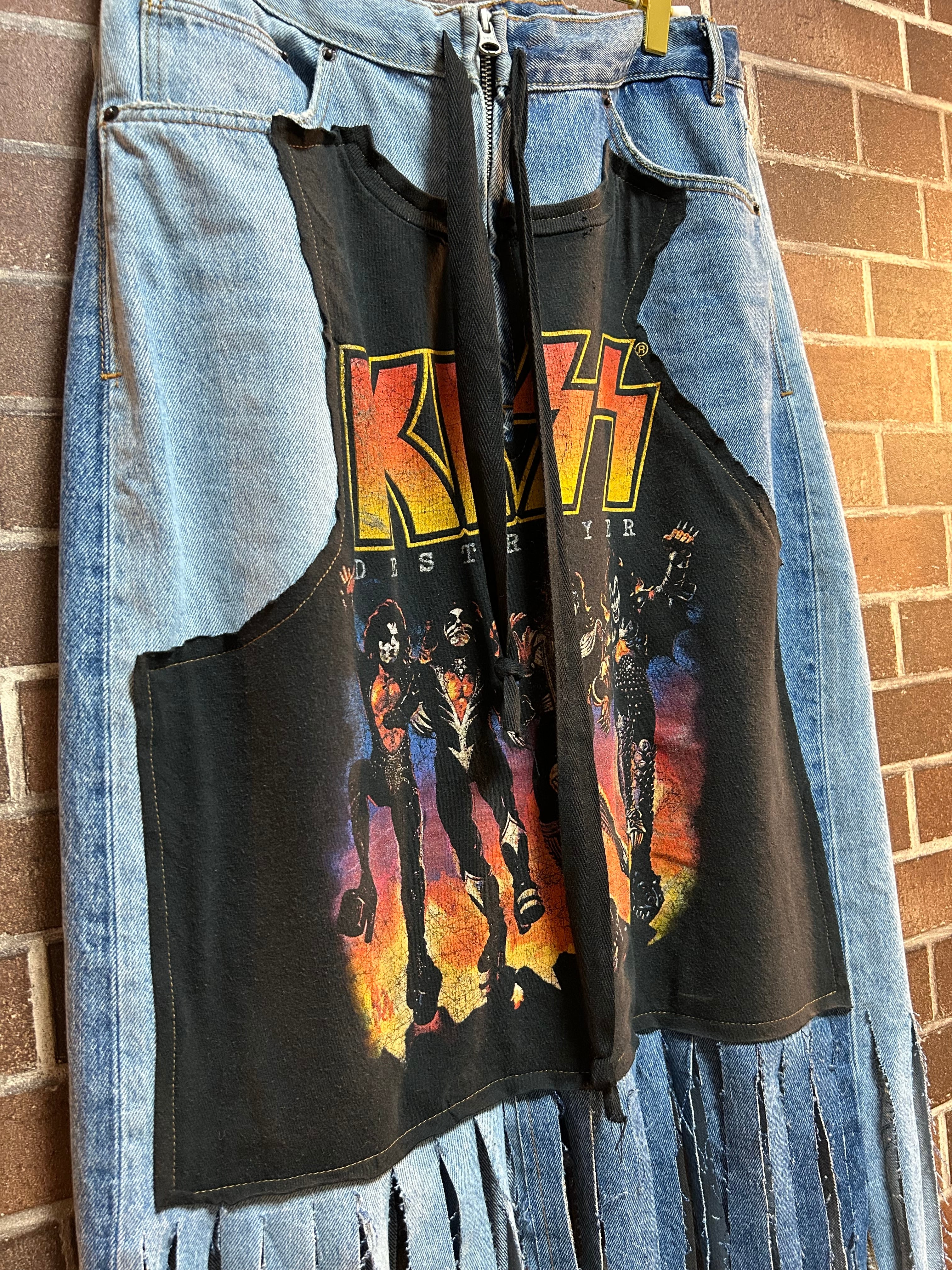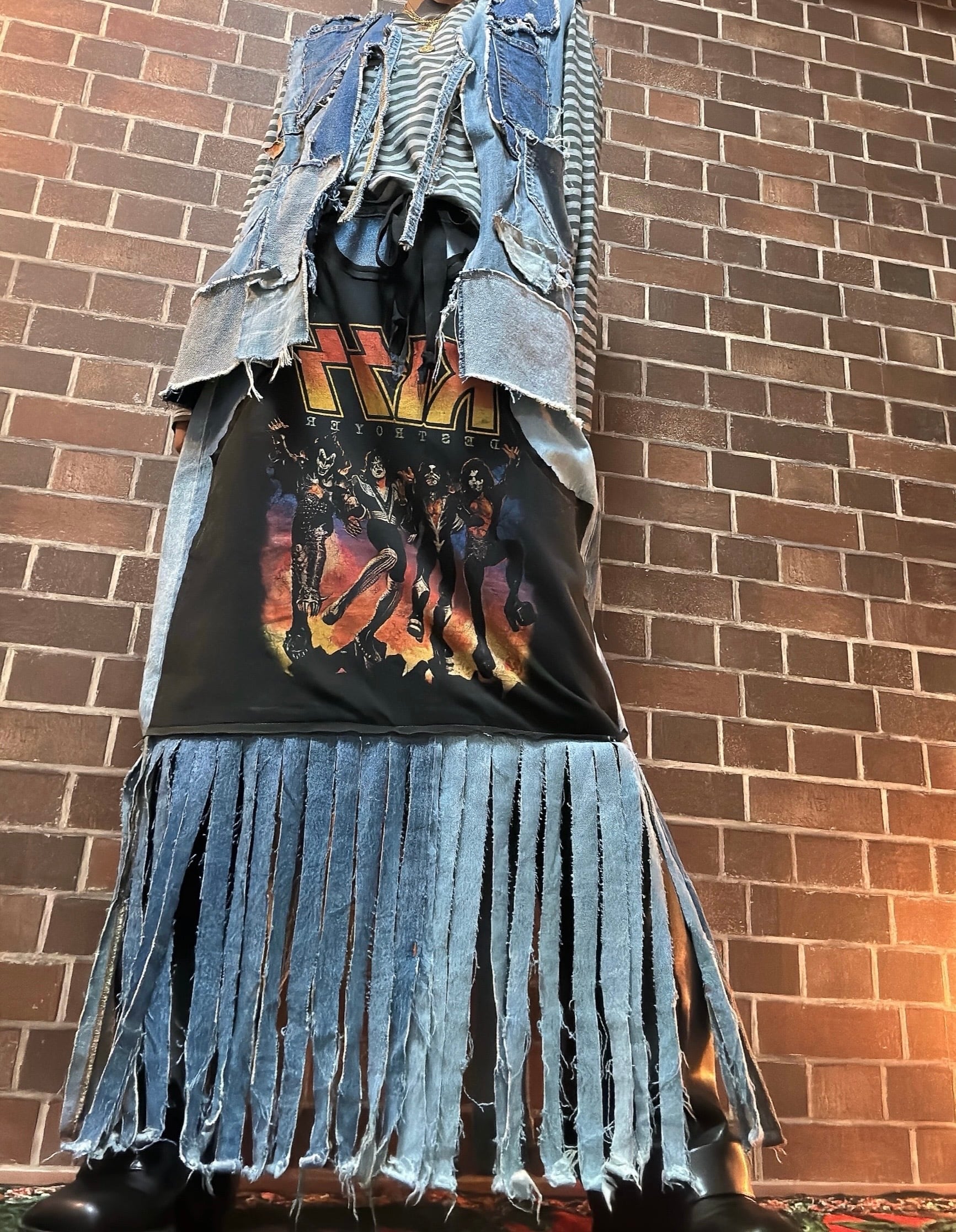 リメイク ビンテージTシャツ⭐︎ドッキングフリンジデニムスカート