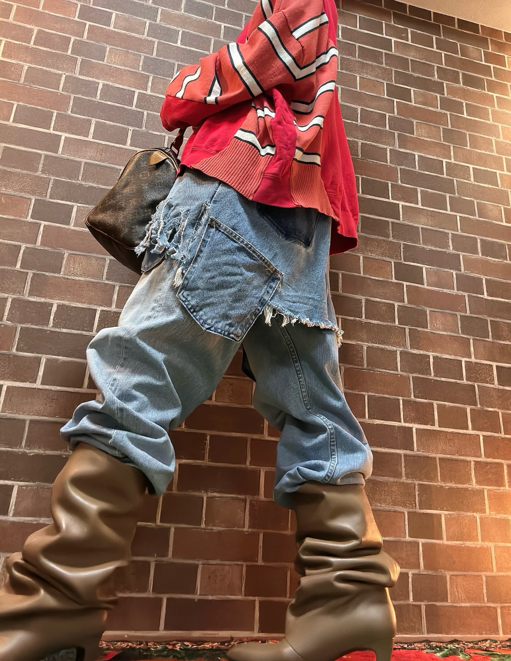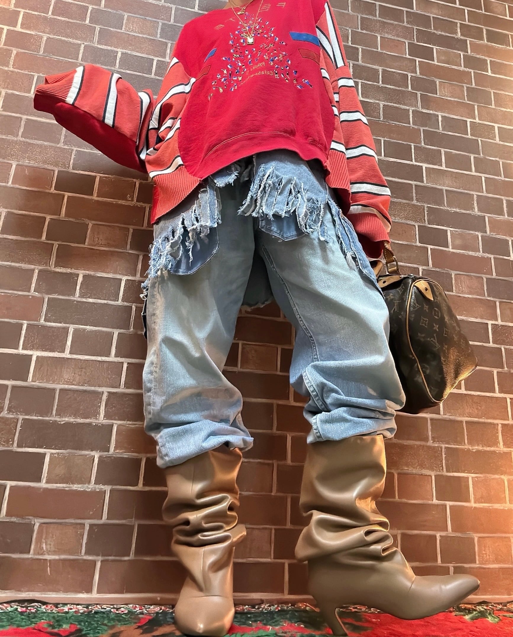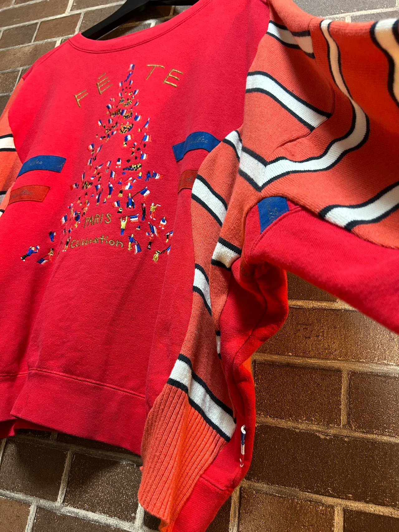 古着のニットとスエットを使用して制作したリメイクのトップスです⭐︎