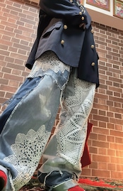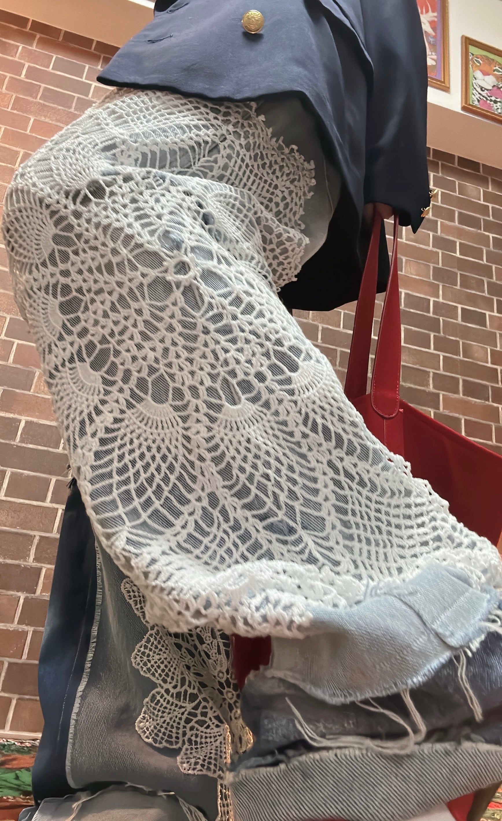 リメイク 鍵編みクロシェ&ペイントパッチワークデニム