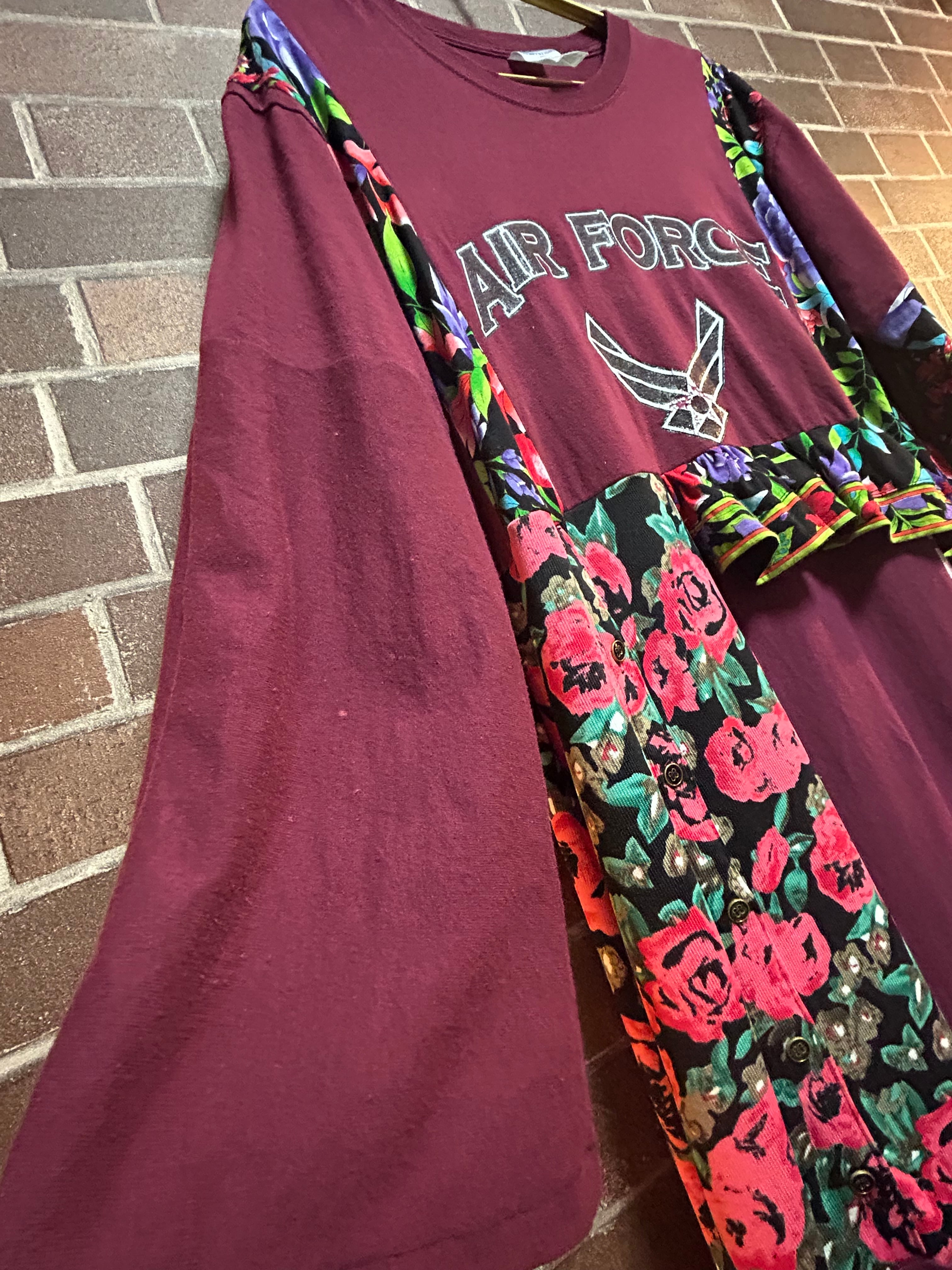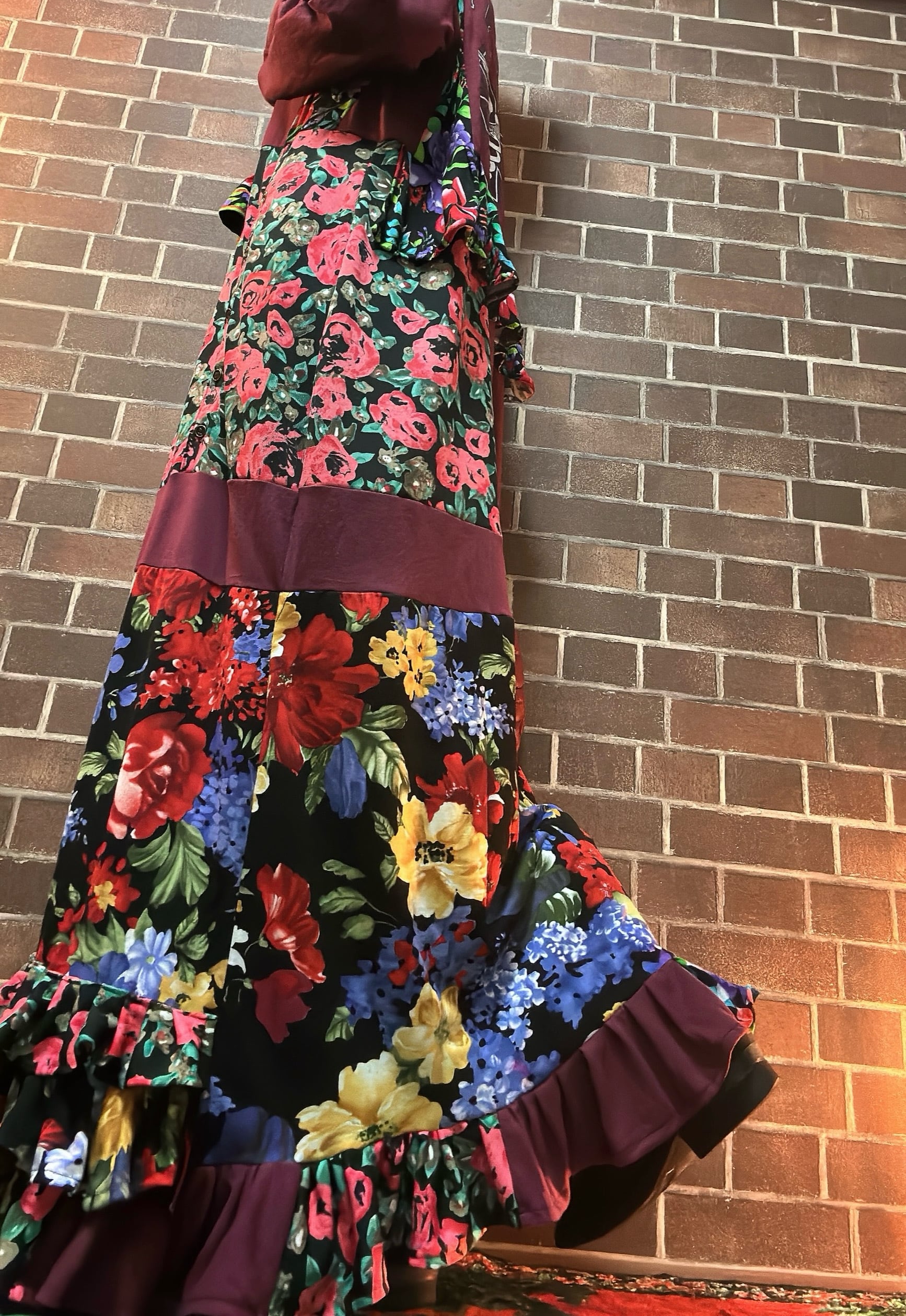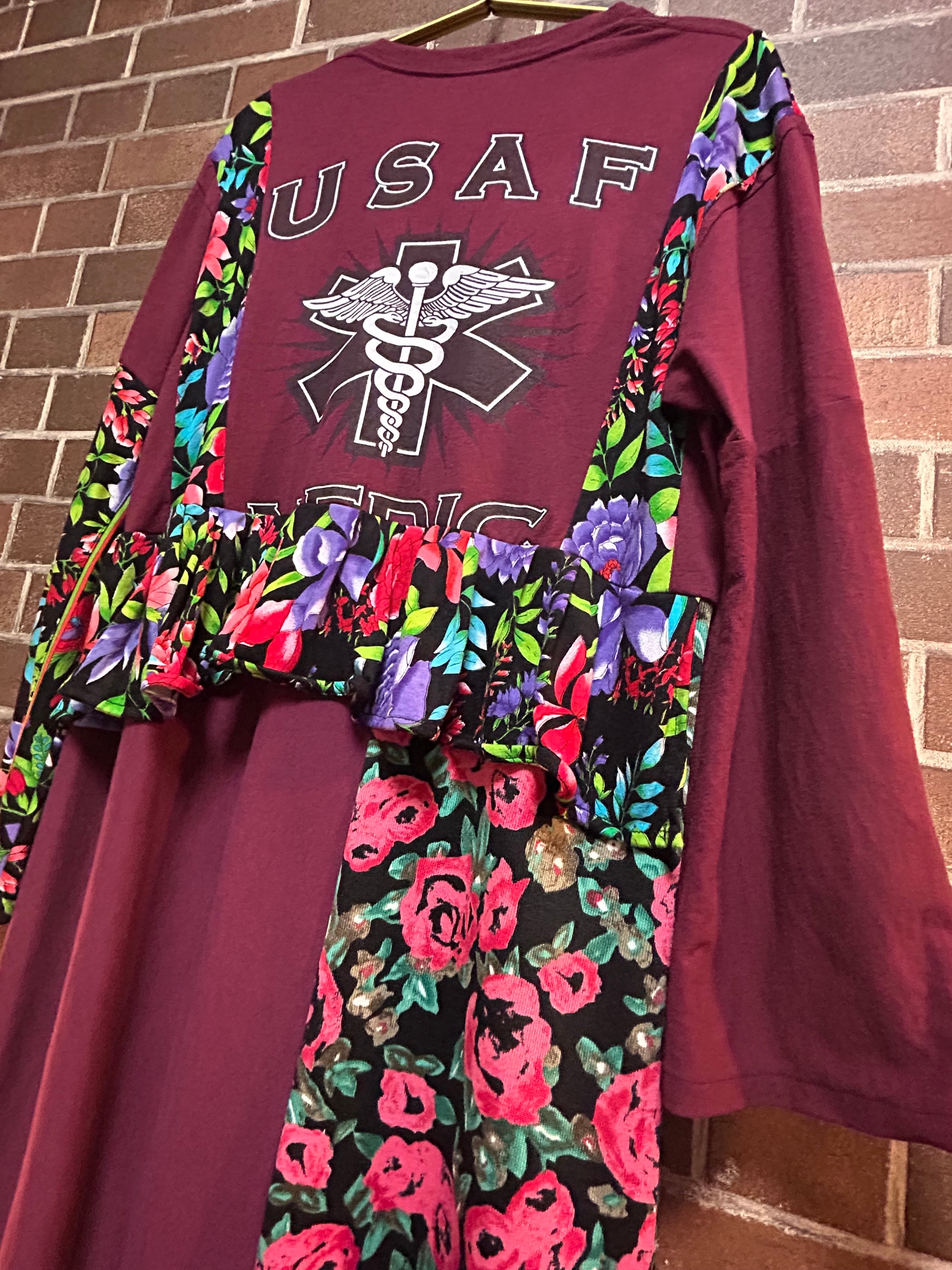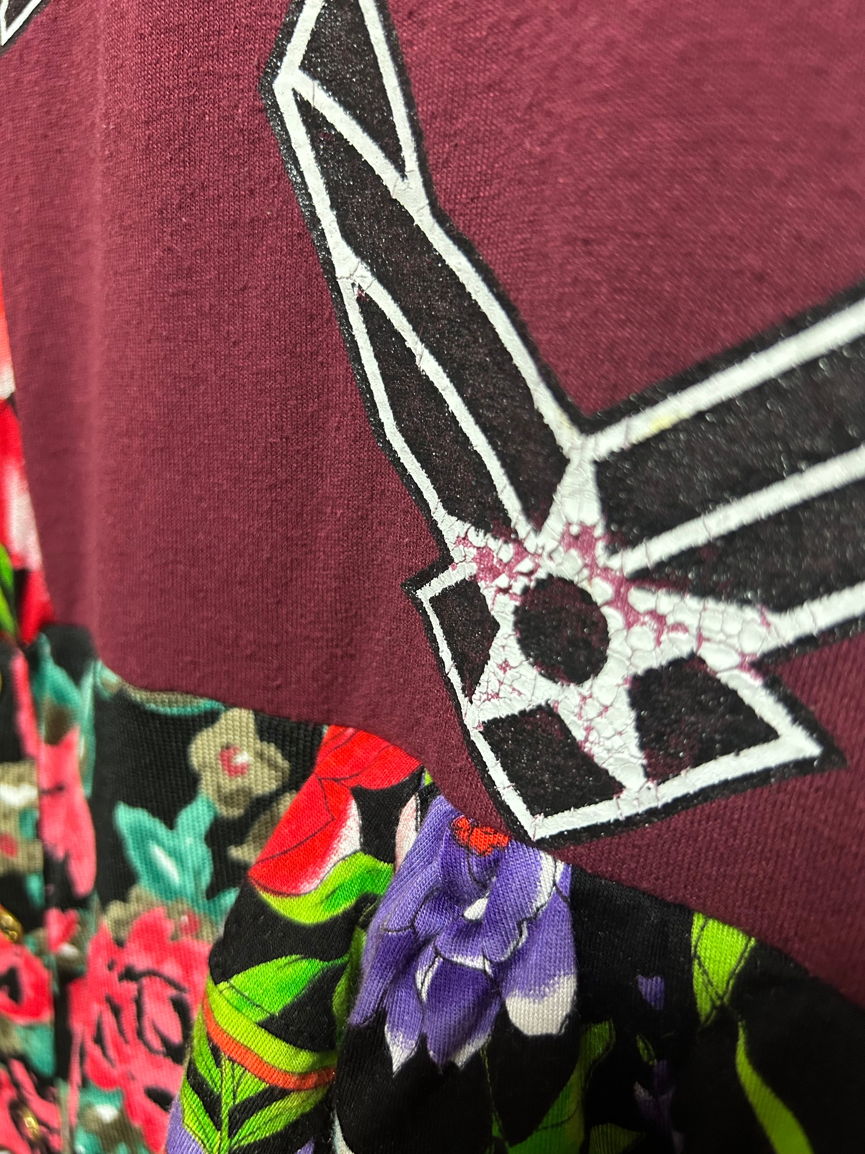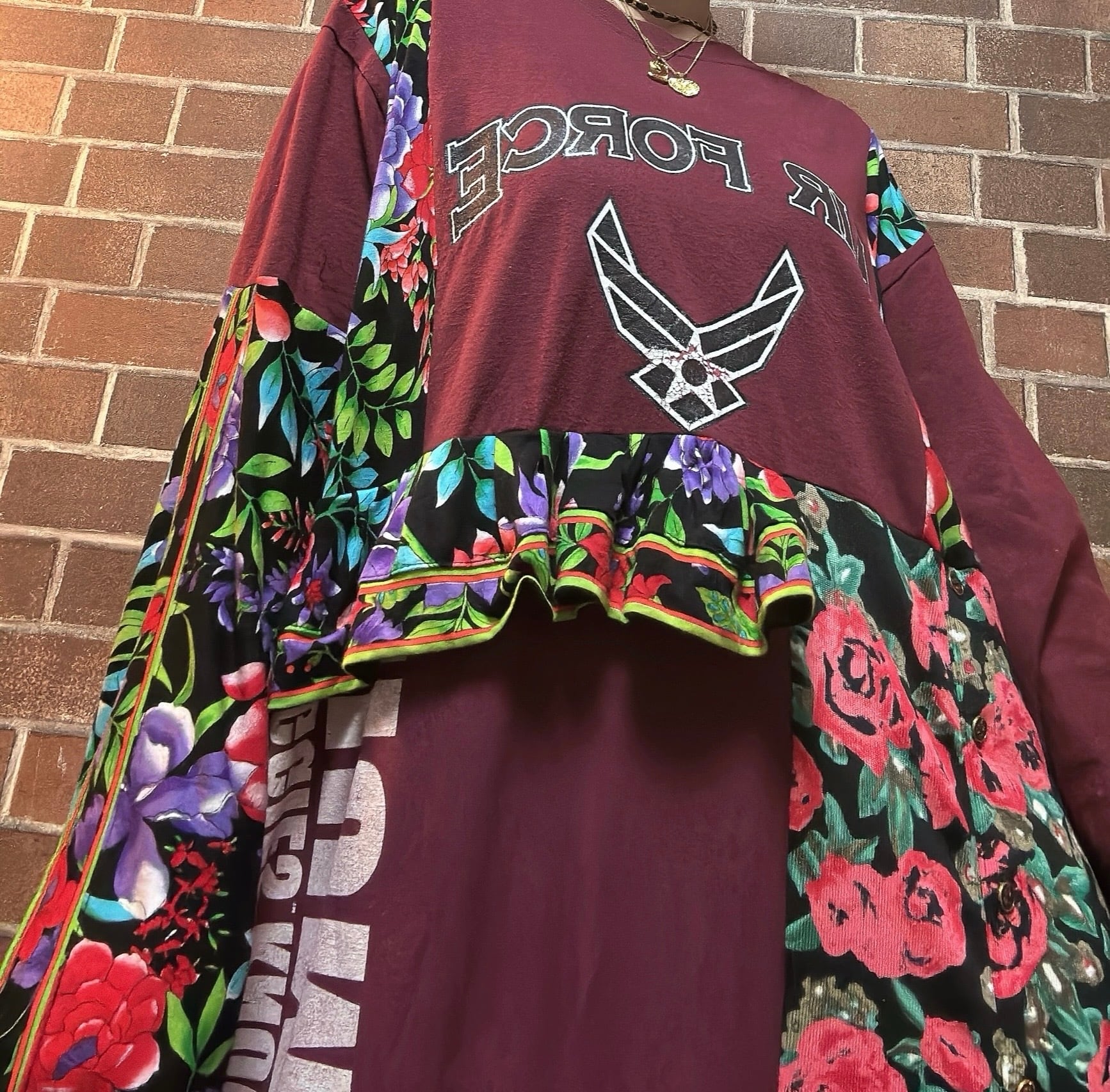 古着Tシャツを使用して制作したリメイクのパッチワークフリルワンピースです⭐︎