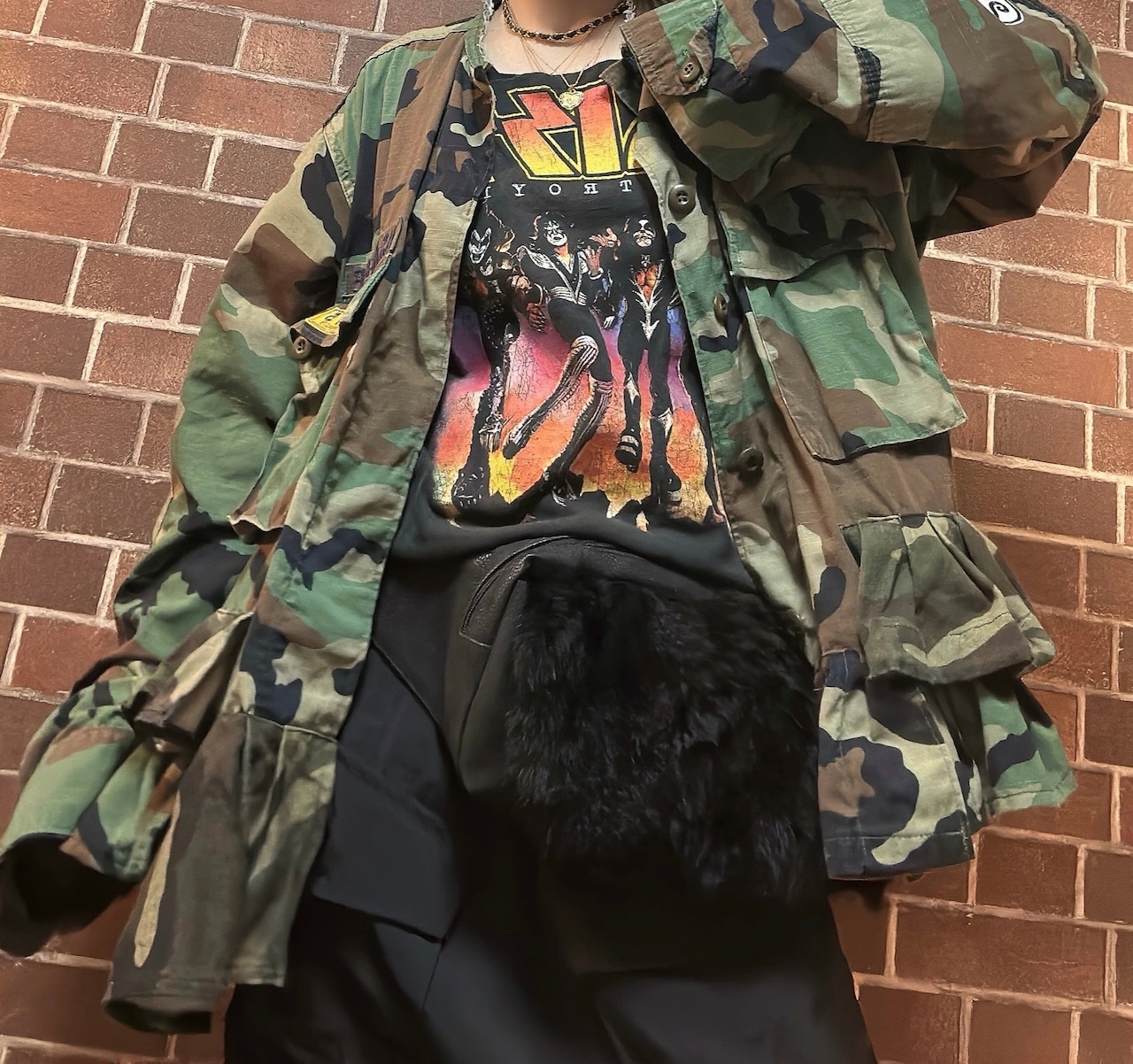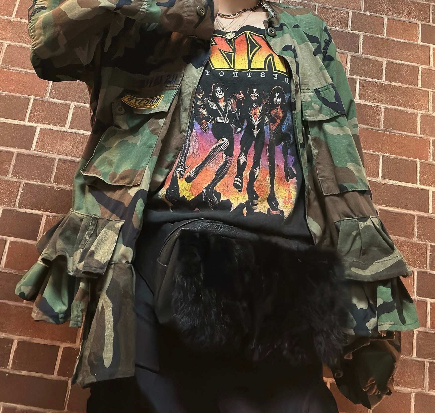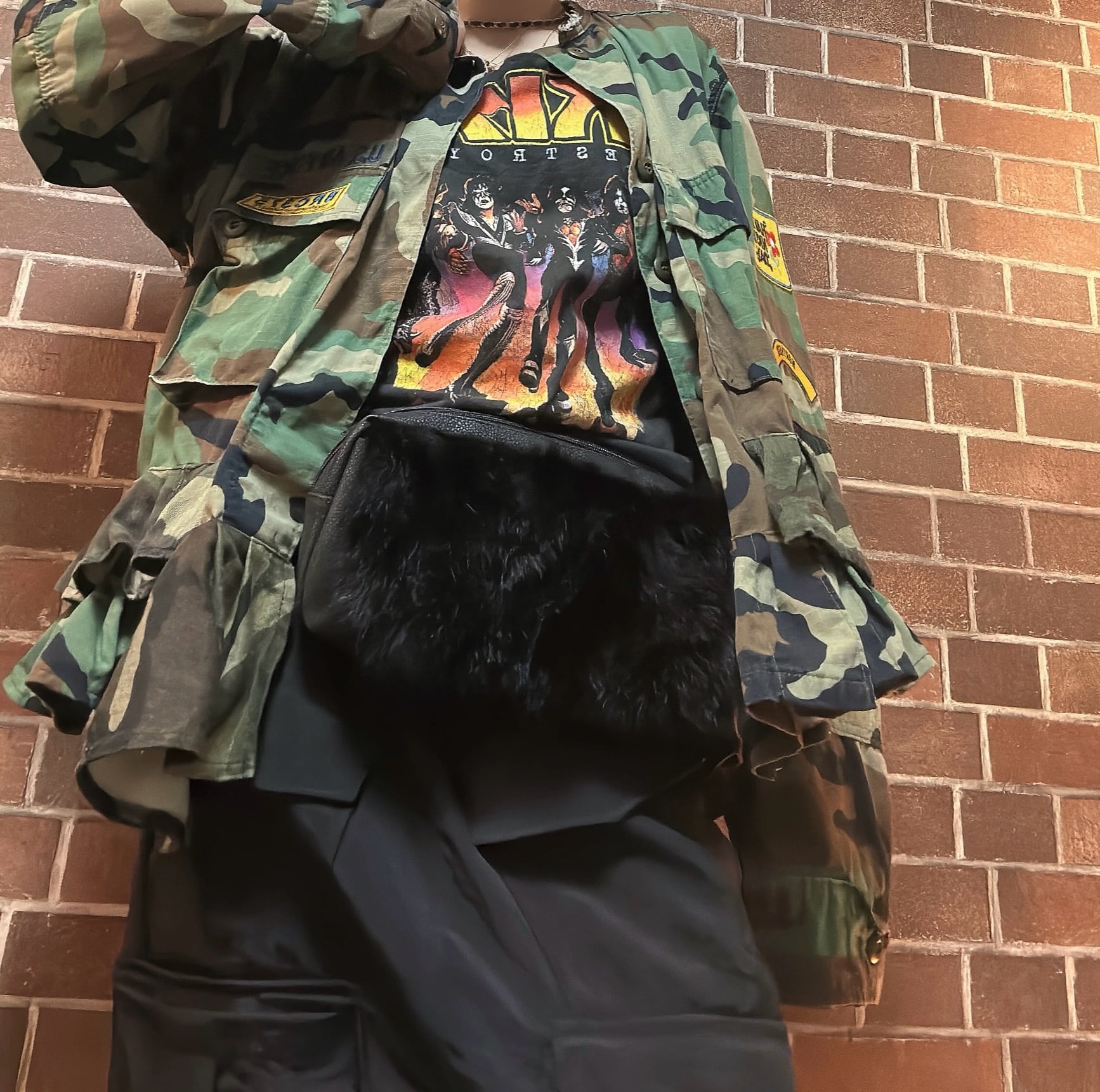 海外古着のミリタリージャケットを使用して制作したリメイクのフリルジャケットです⭐︎
