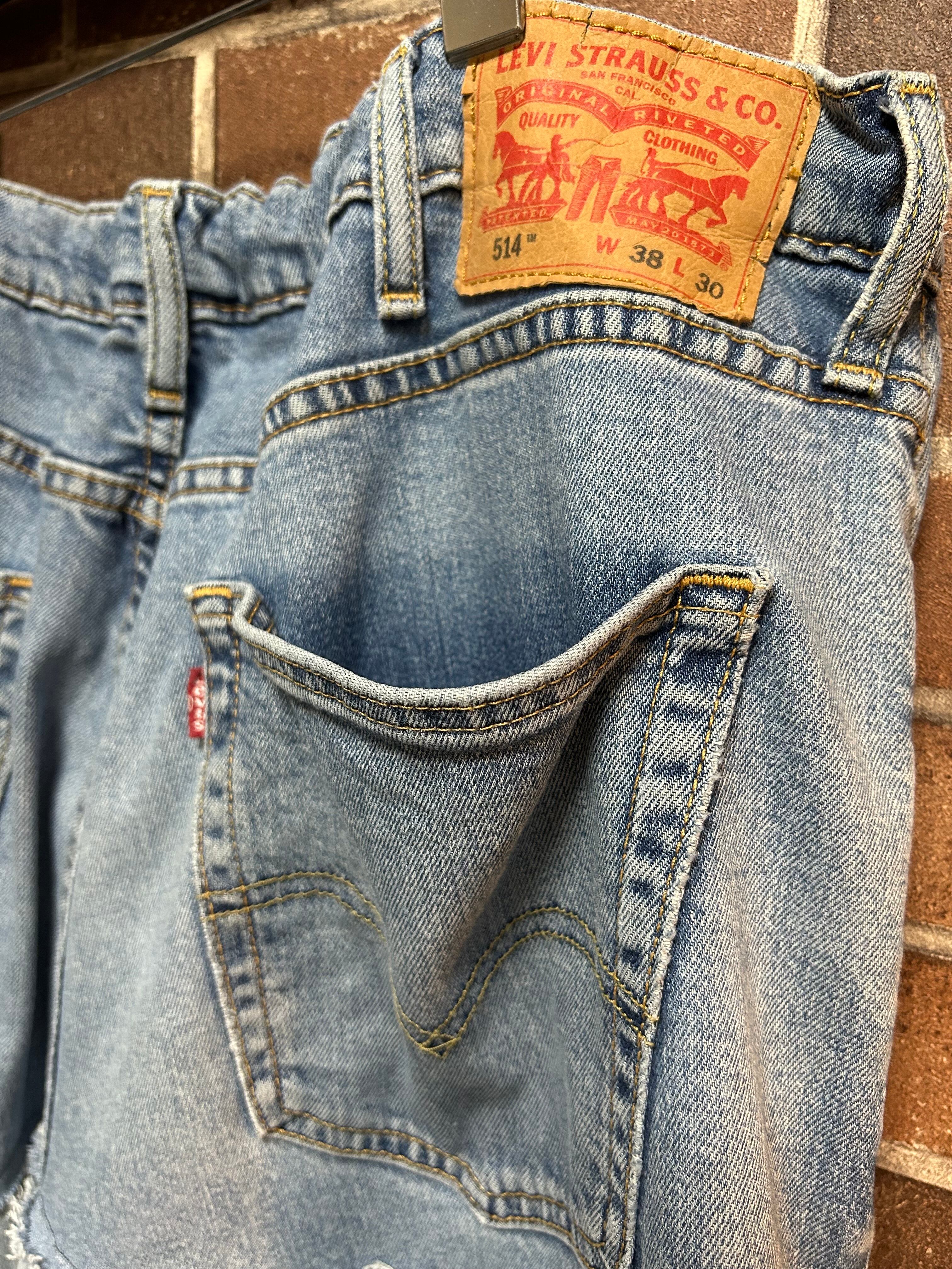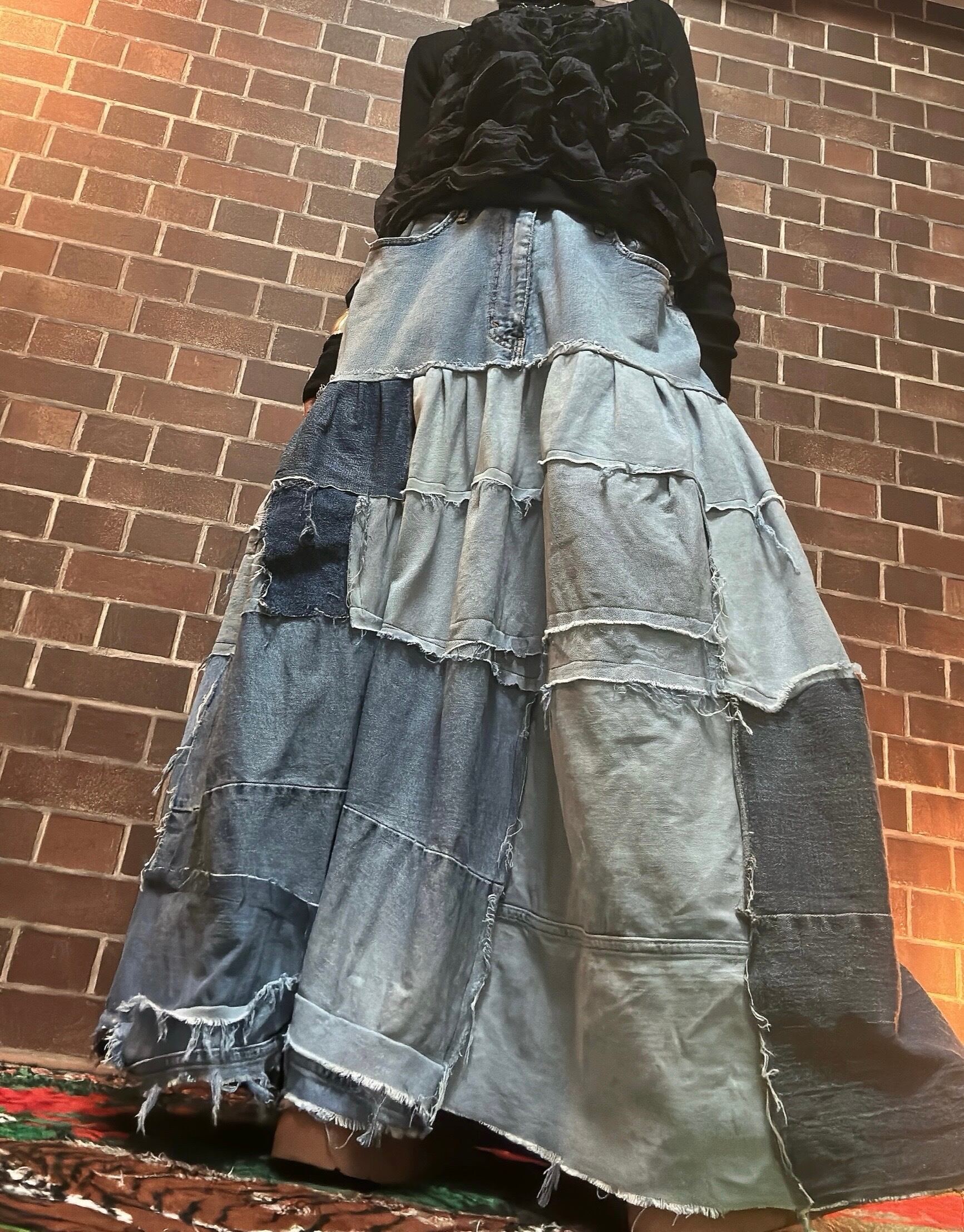 古着のデニムを使用して制作したリメイクのパッチワークスカートです⭐︎