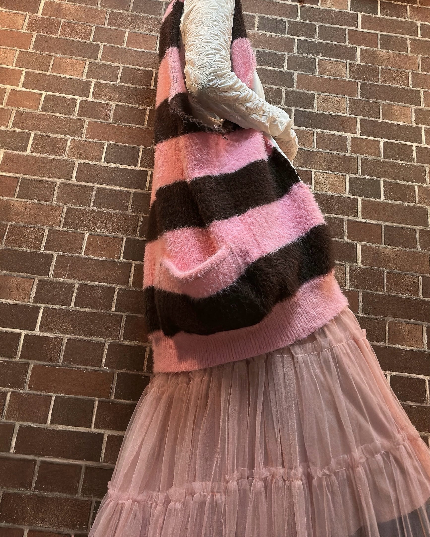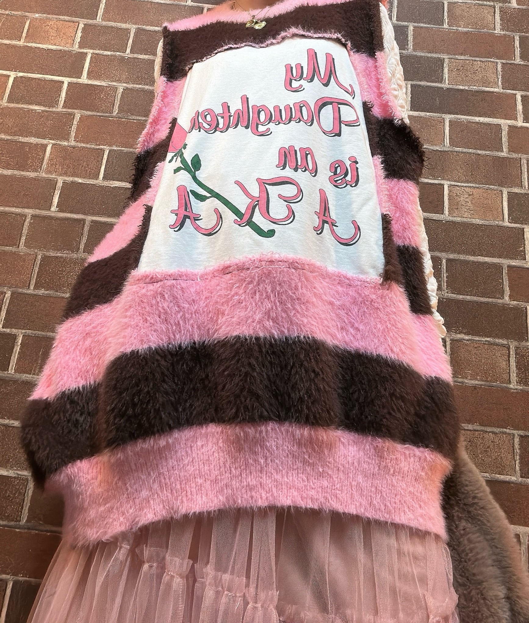 海外古着Tシャツとボーダーニットを使用して制作したリメイクのオーバーベストです⭐︎