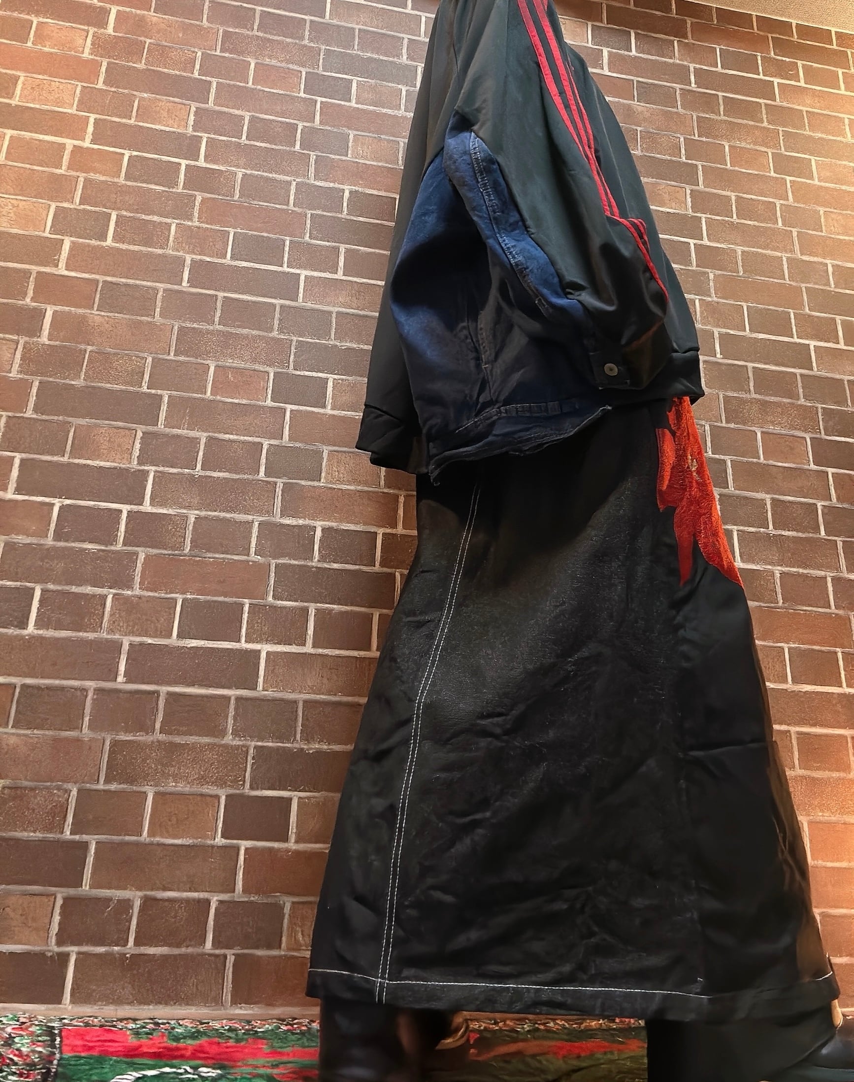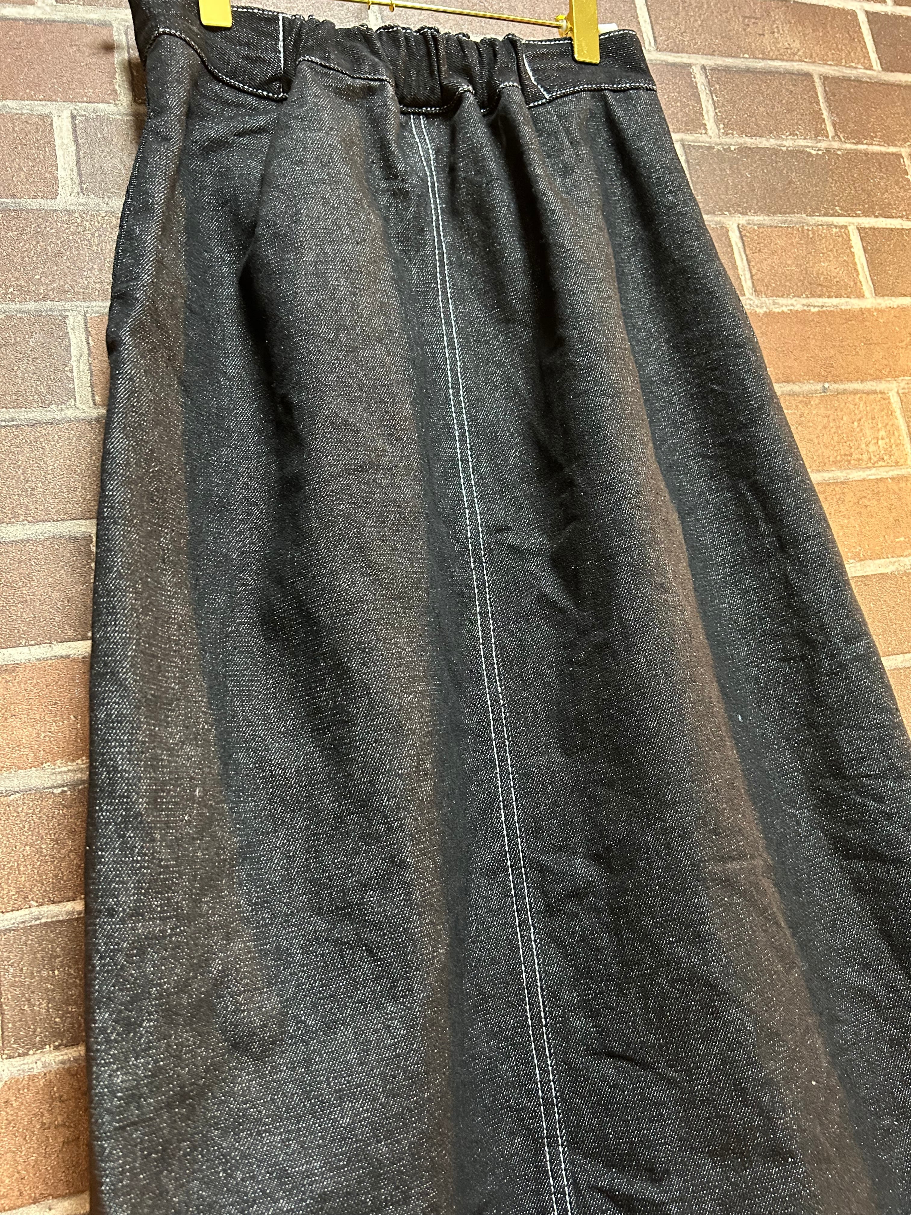 リメイク ビンテージ帯ドッキングブラックデニムスカート