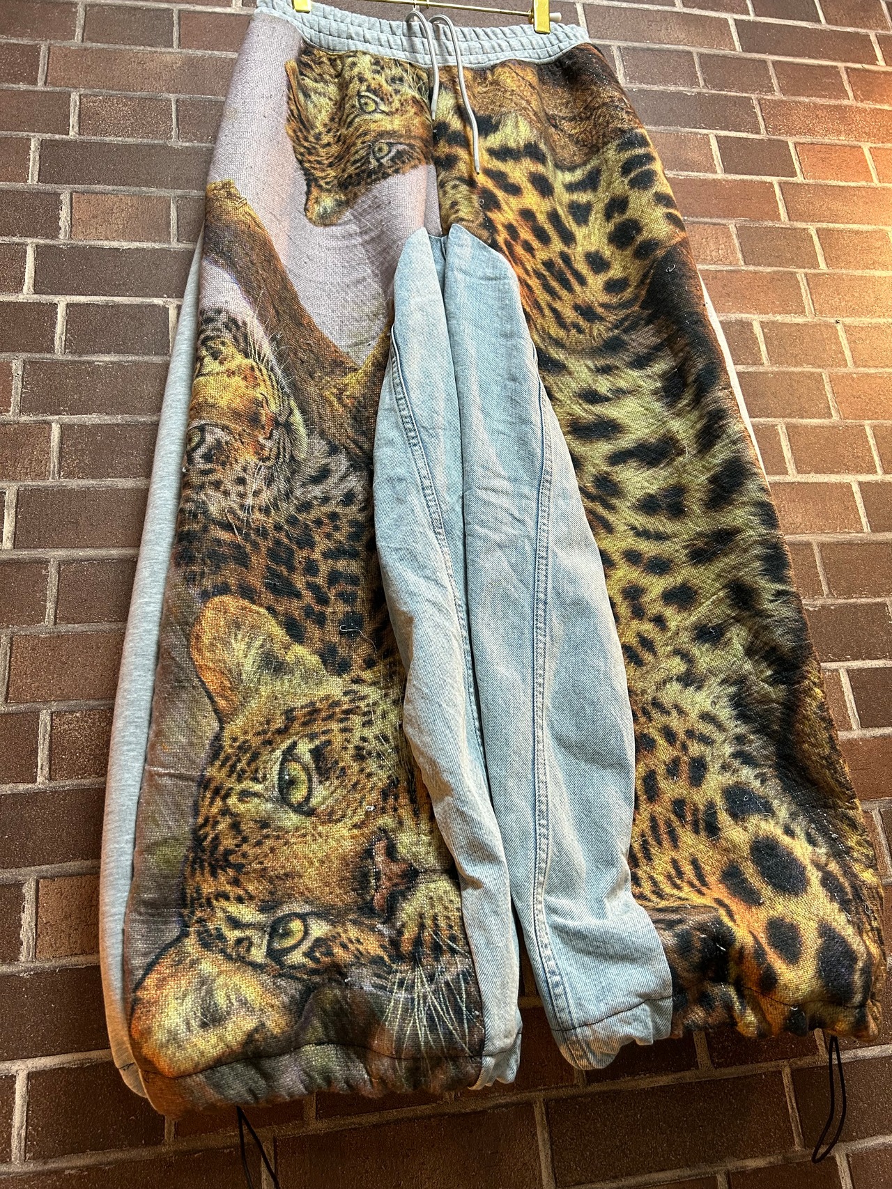 ビンテージのタイガーラグをスエットやデニムとドッキングして制作したリメイクのバルーンパンツです。
