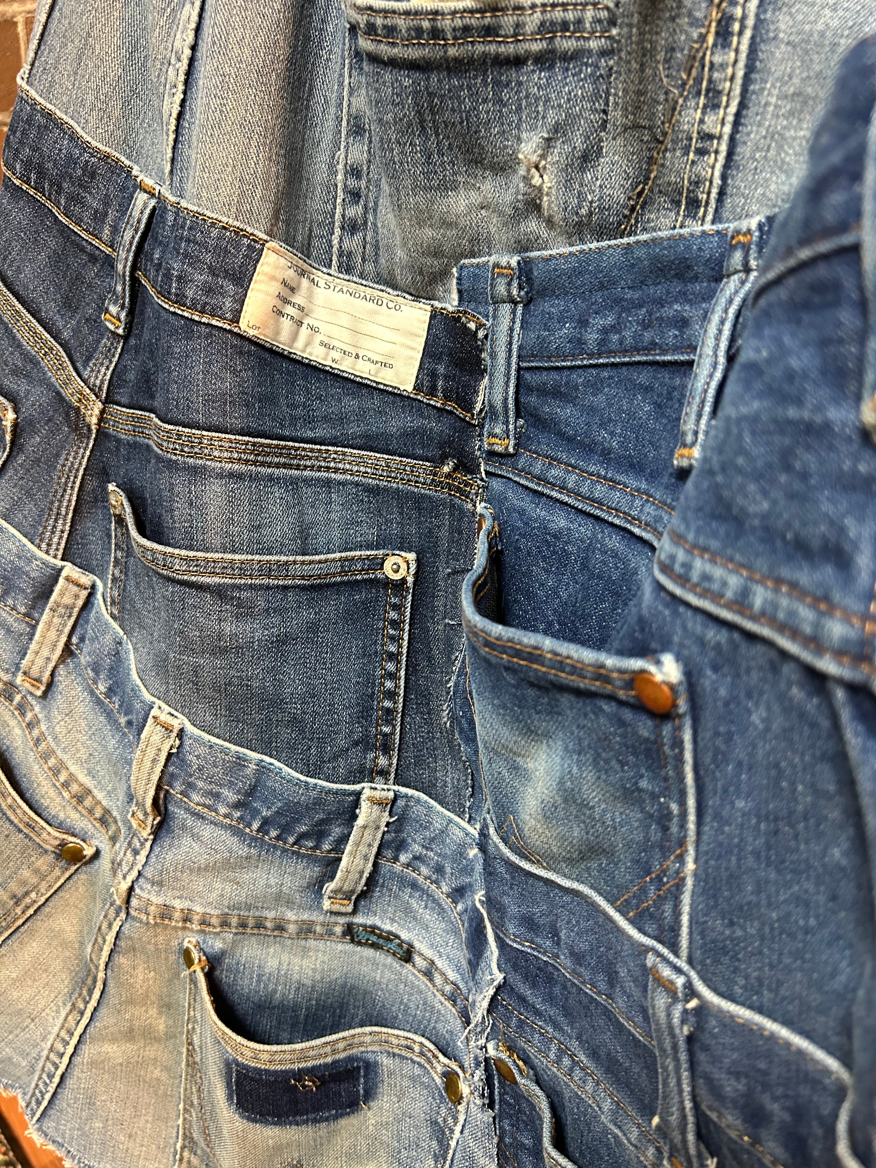古着デニムを使用して制作したリメイクのパッチワークスカートです⭐︎