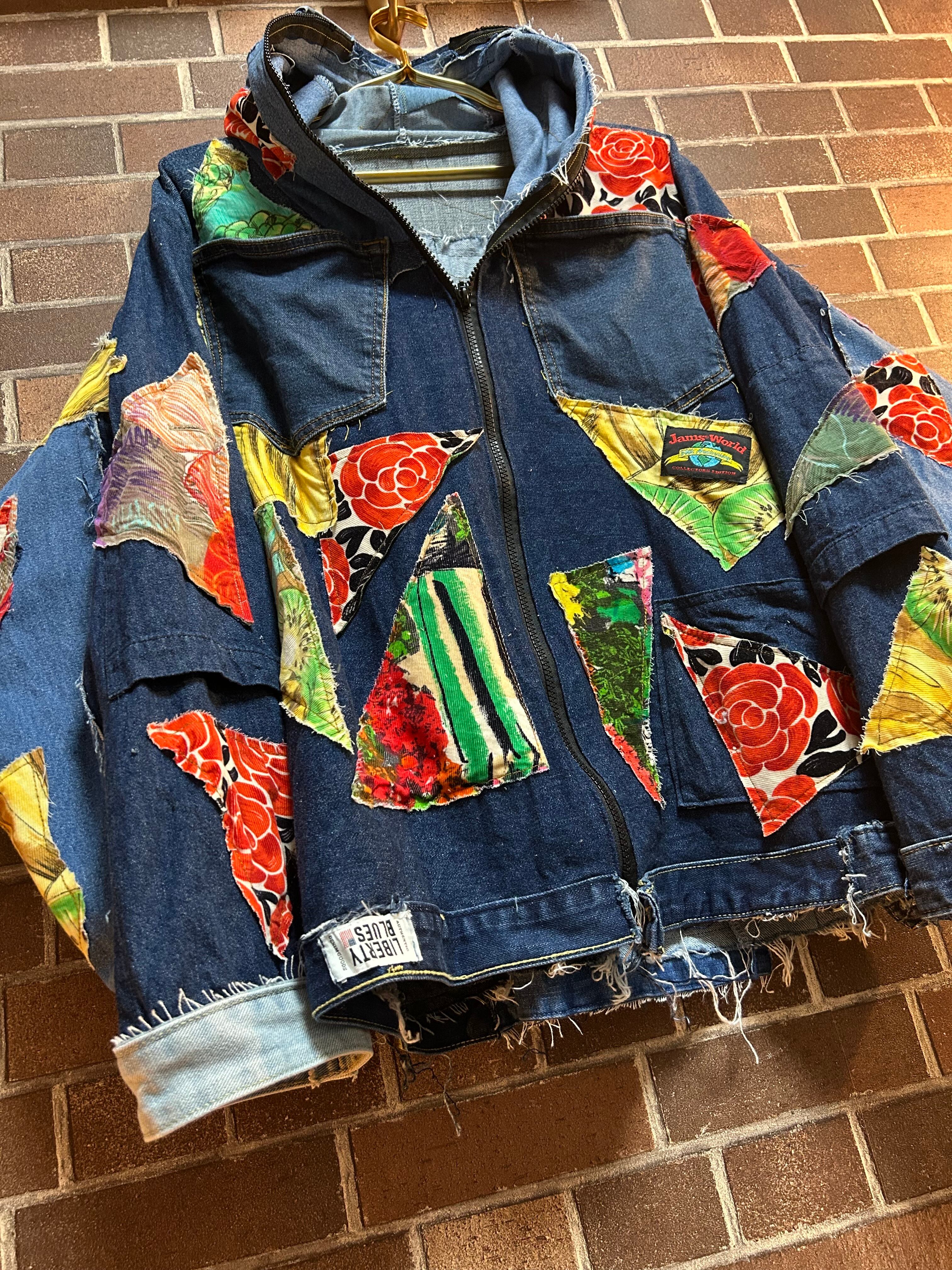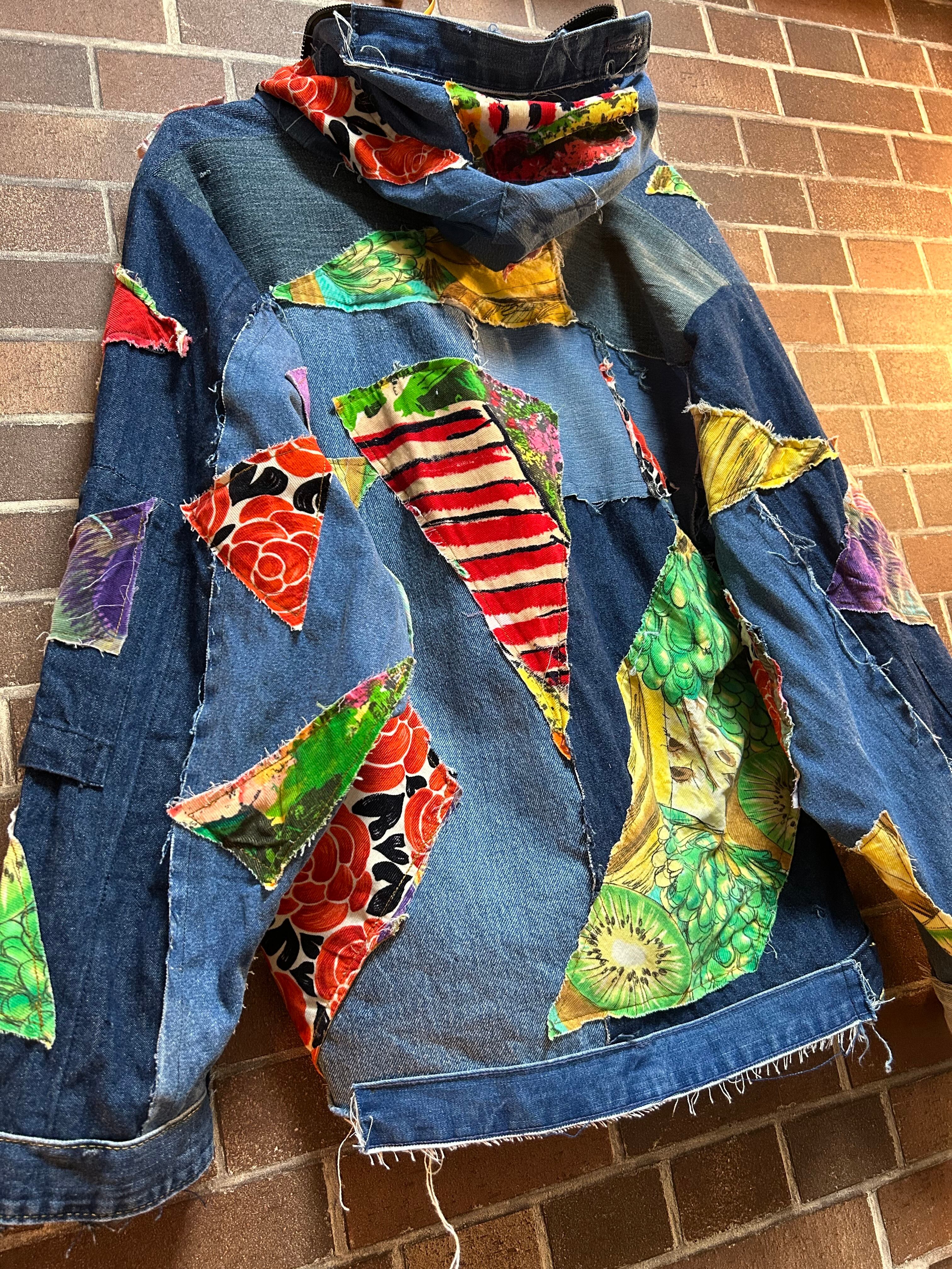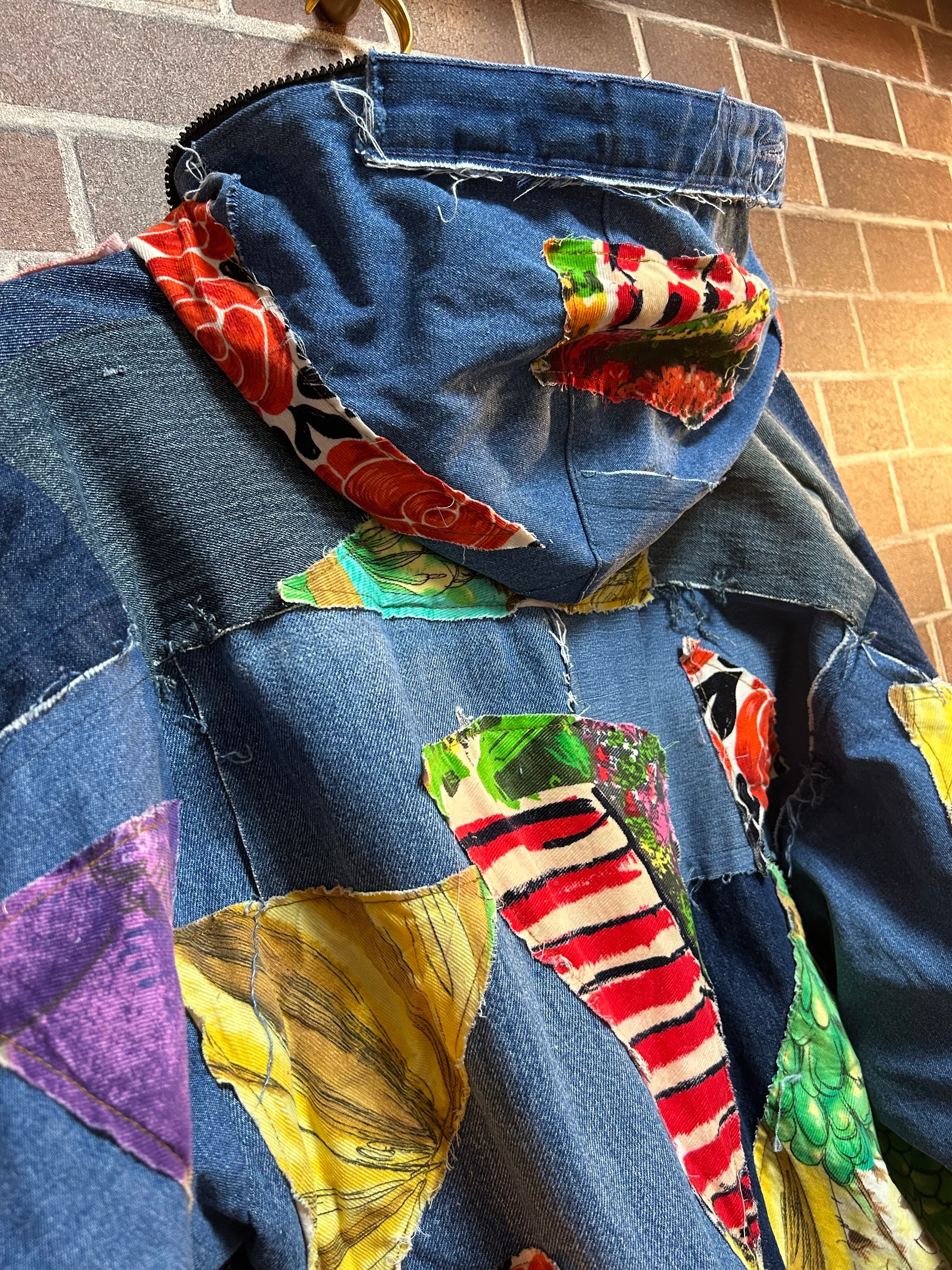 リメイク ビンテージ生地パッチワーク⭐︎パーカーデニムジャケット