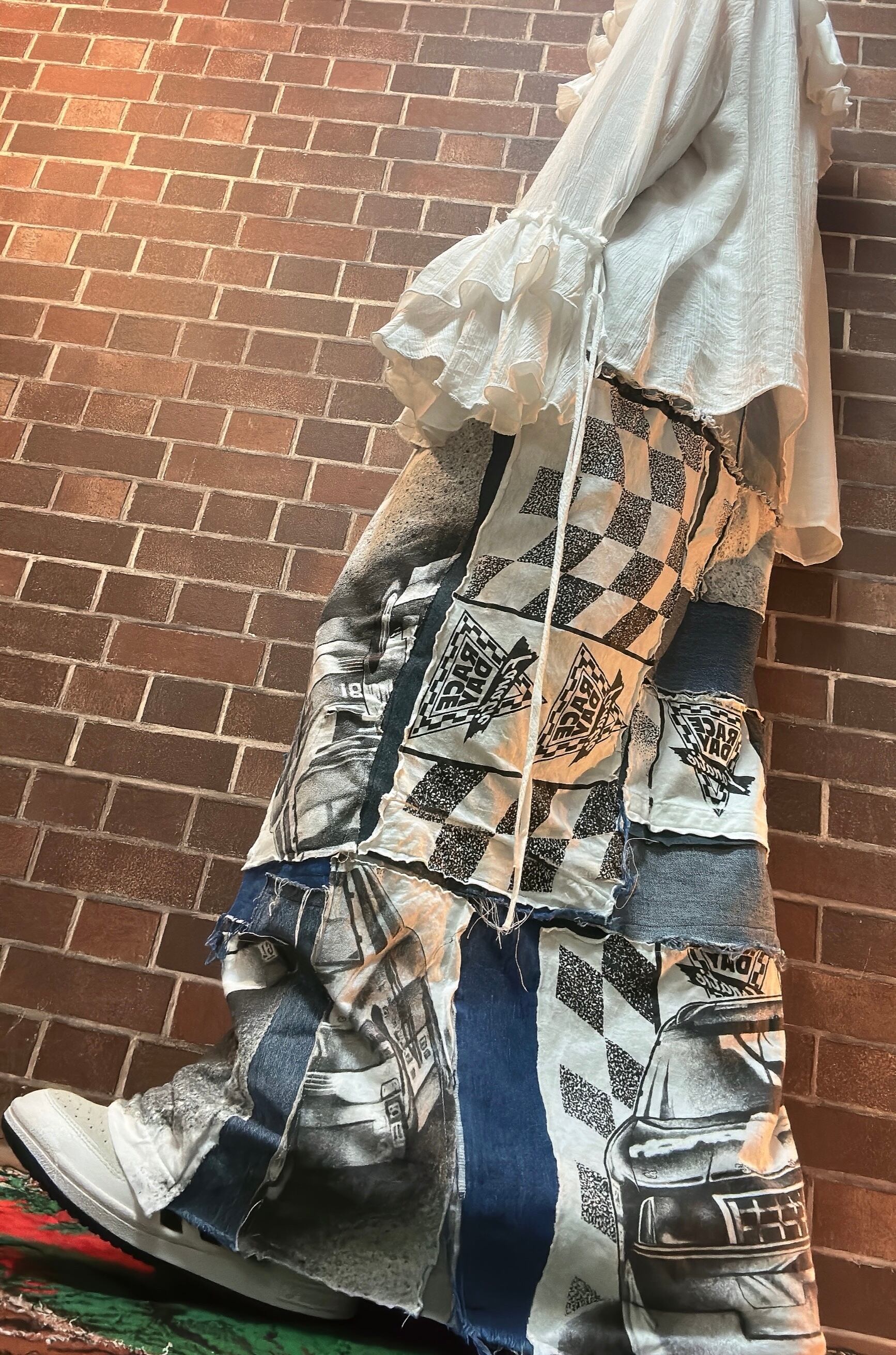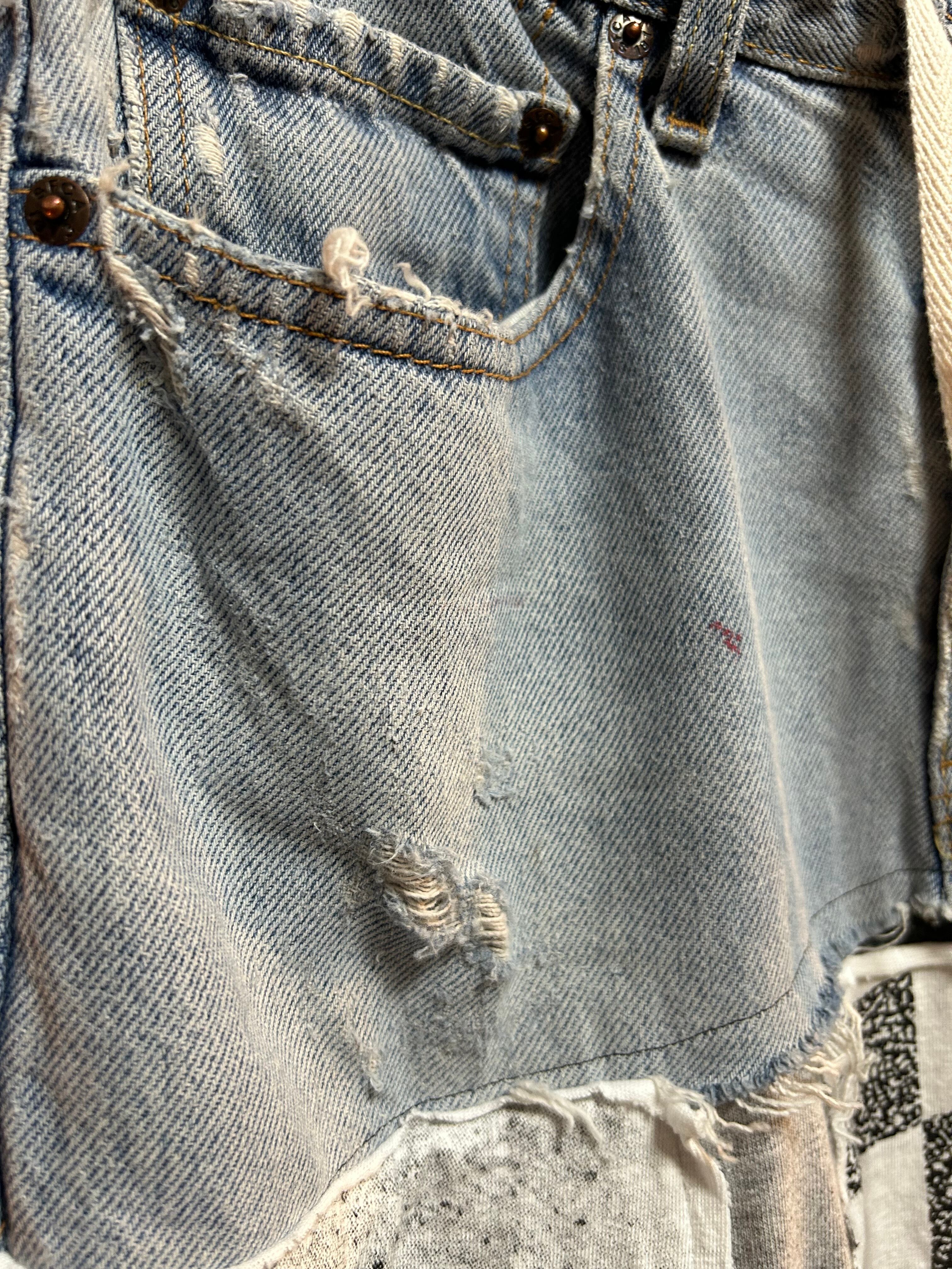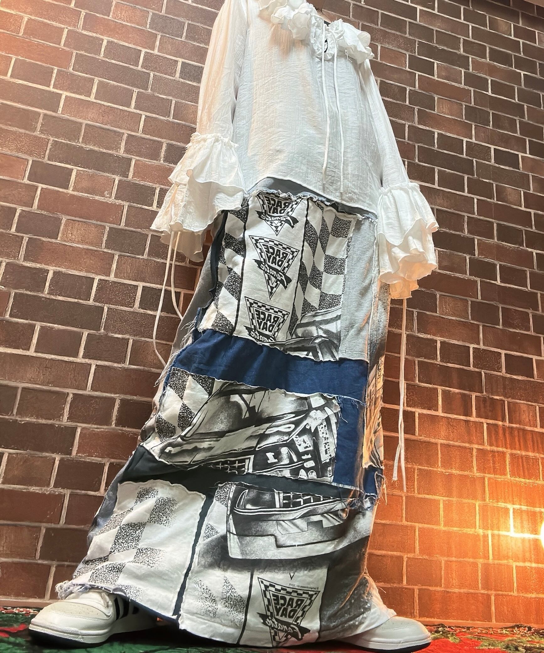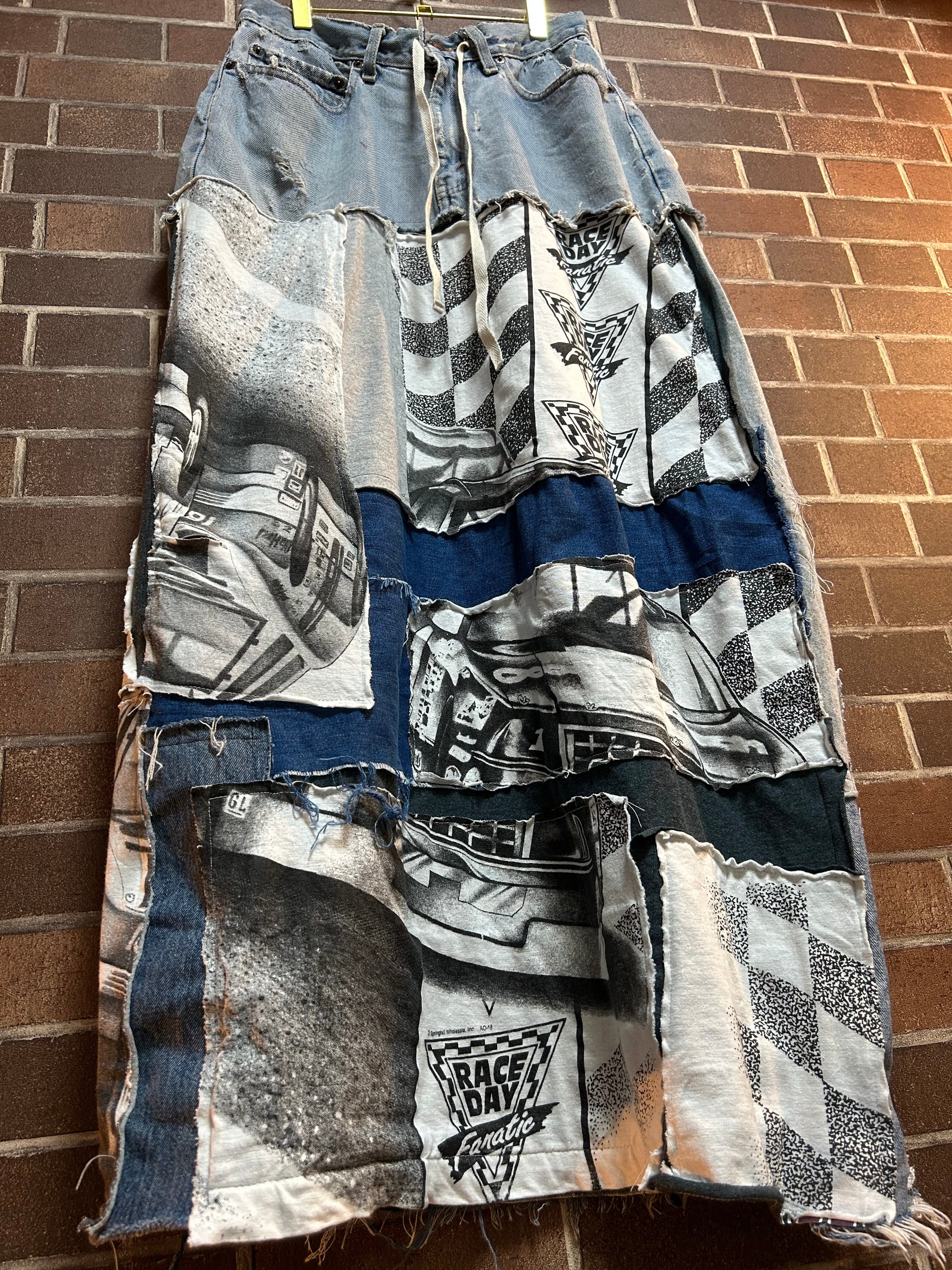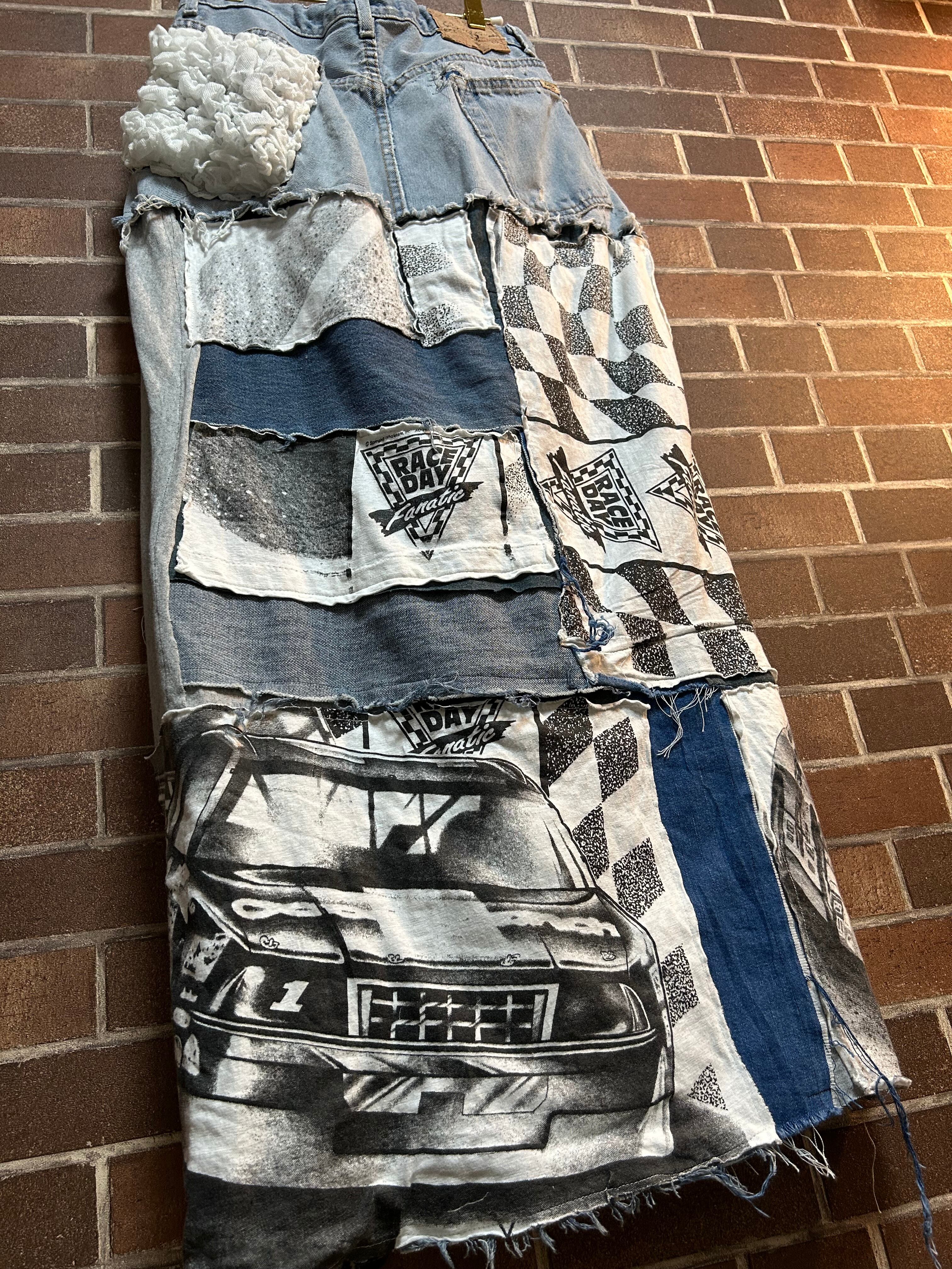 海外古着Tシャツやデニムを使用して制作したリメイクのパッチワークスカートです⭐︎