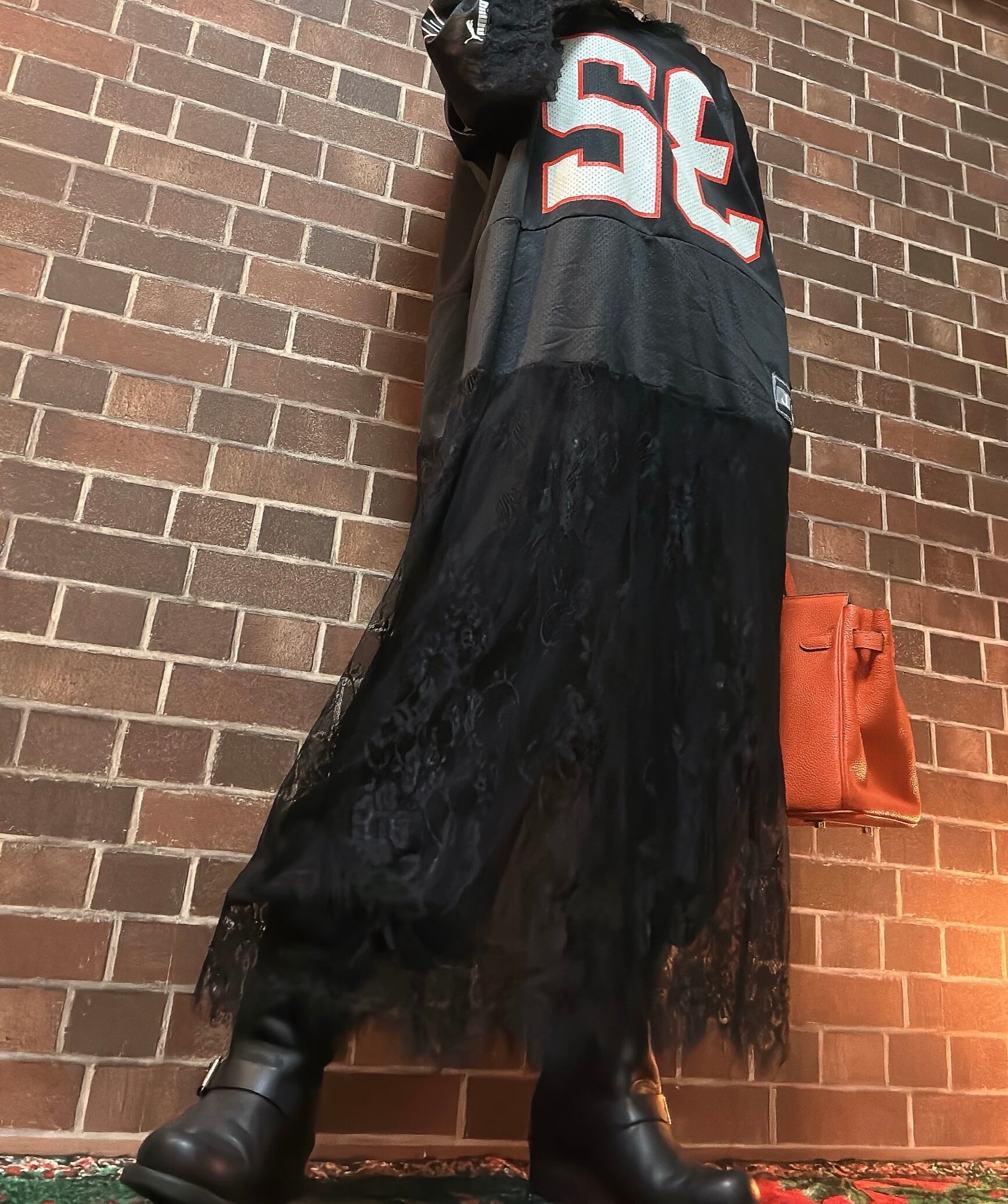 海外古着のゲームシャツとレースを使用してワンピースにリメイクしました⭐︎