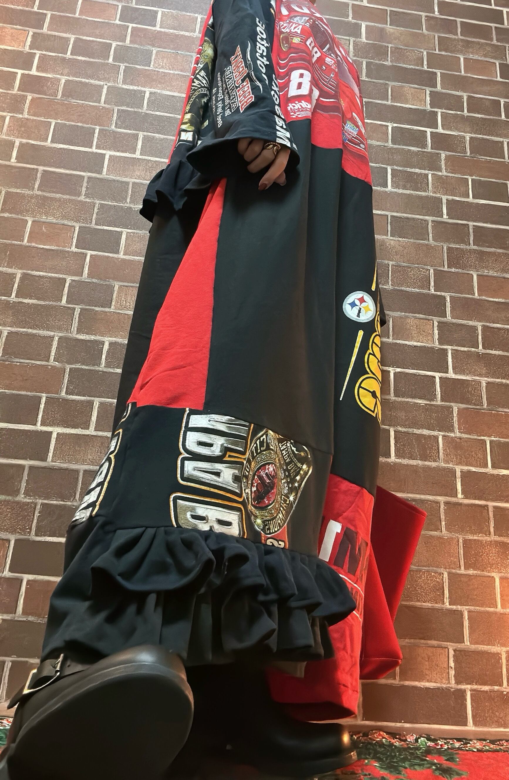 海外古着Tシャツを使用して製作したリメイクのパッチワークワンピースです⭐︎
