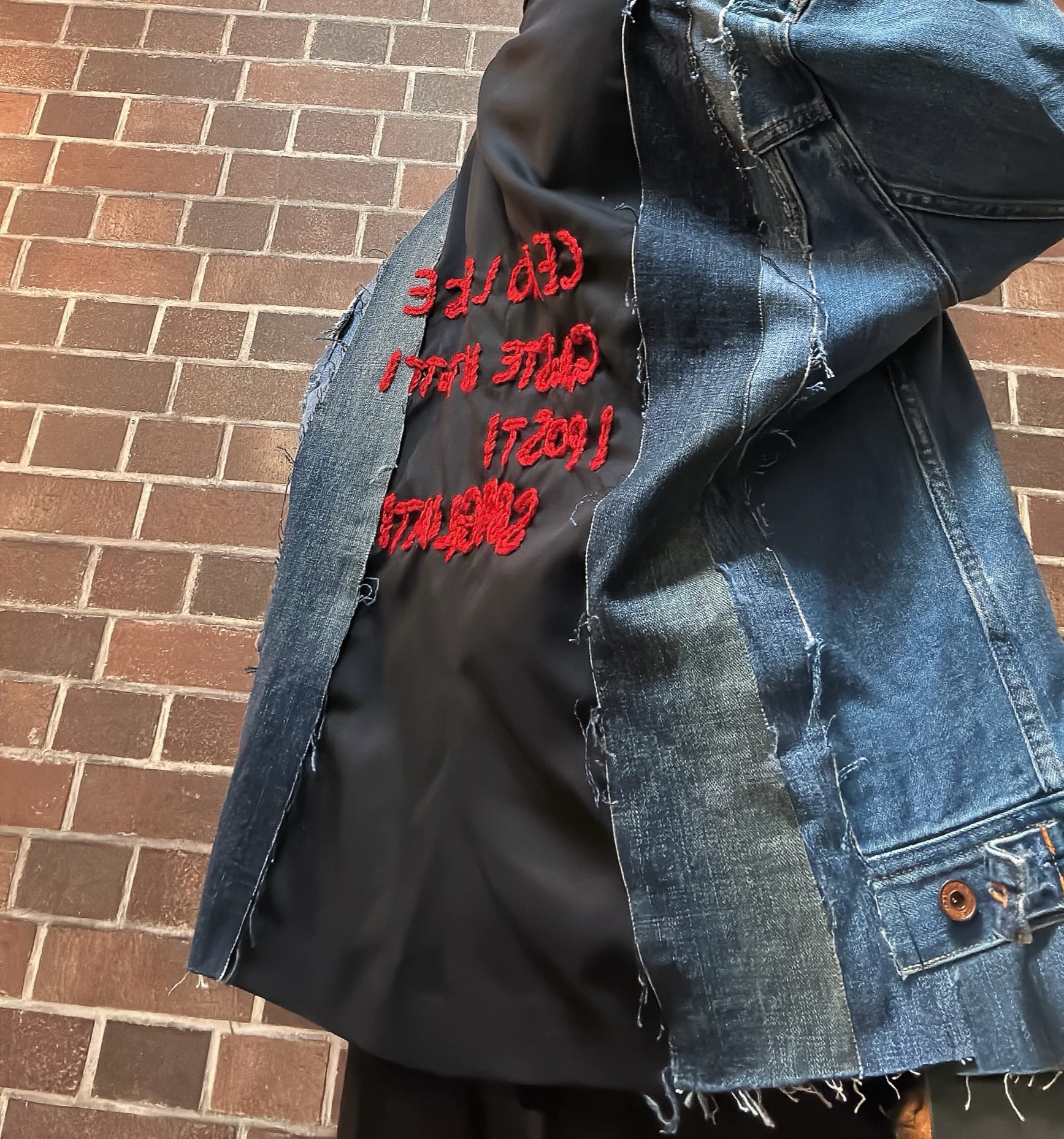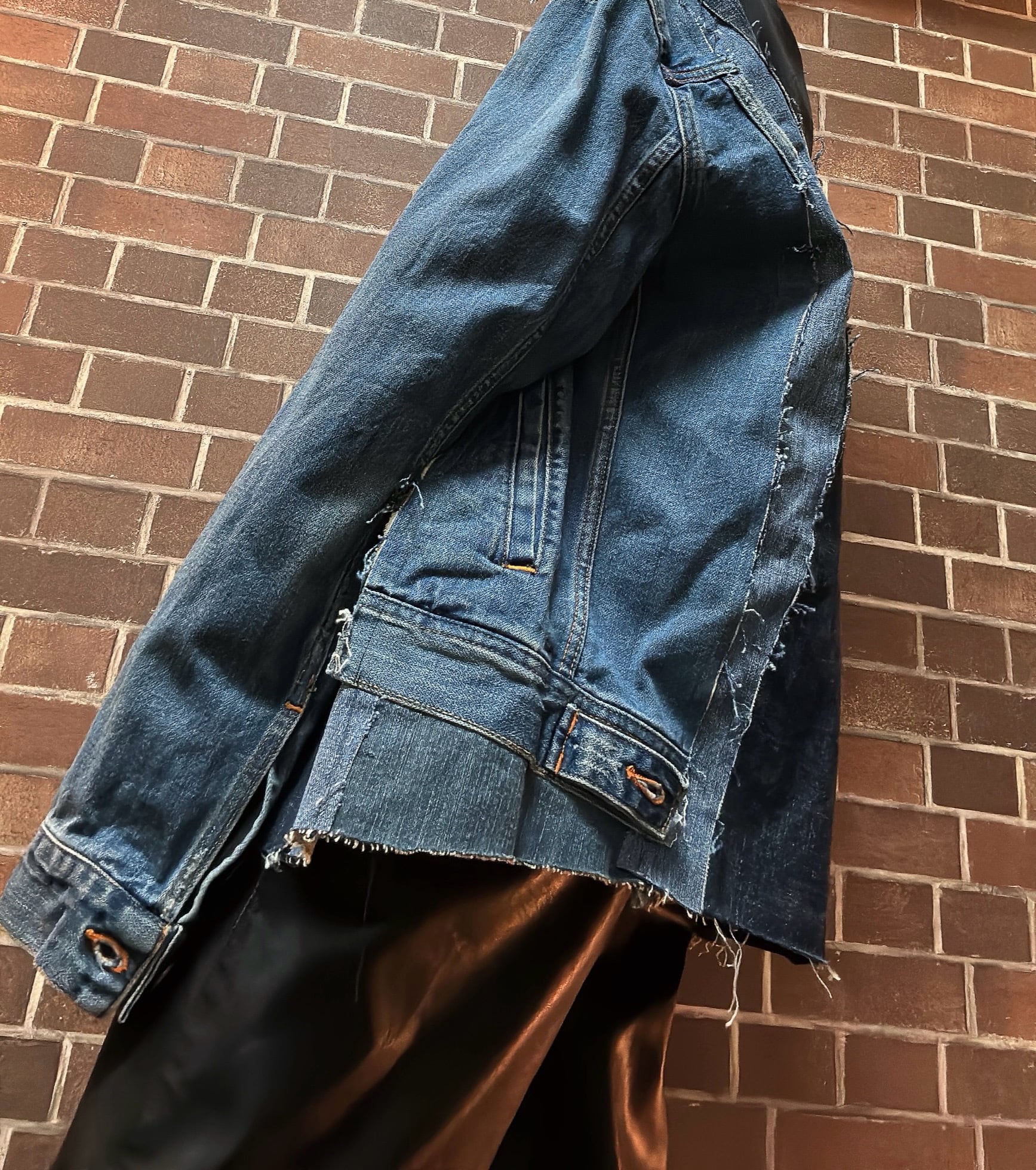 ビンテージジャケットとデニムを使用して制作したリメイクのドッキングジャケットです⭐︎