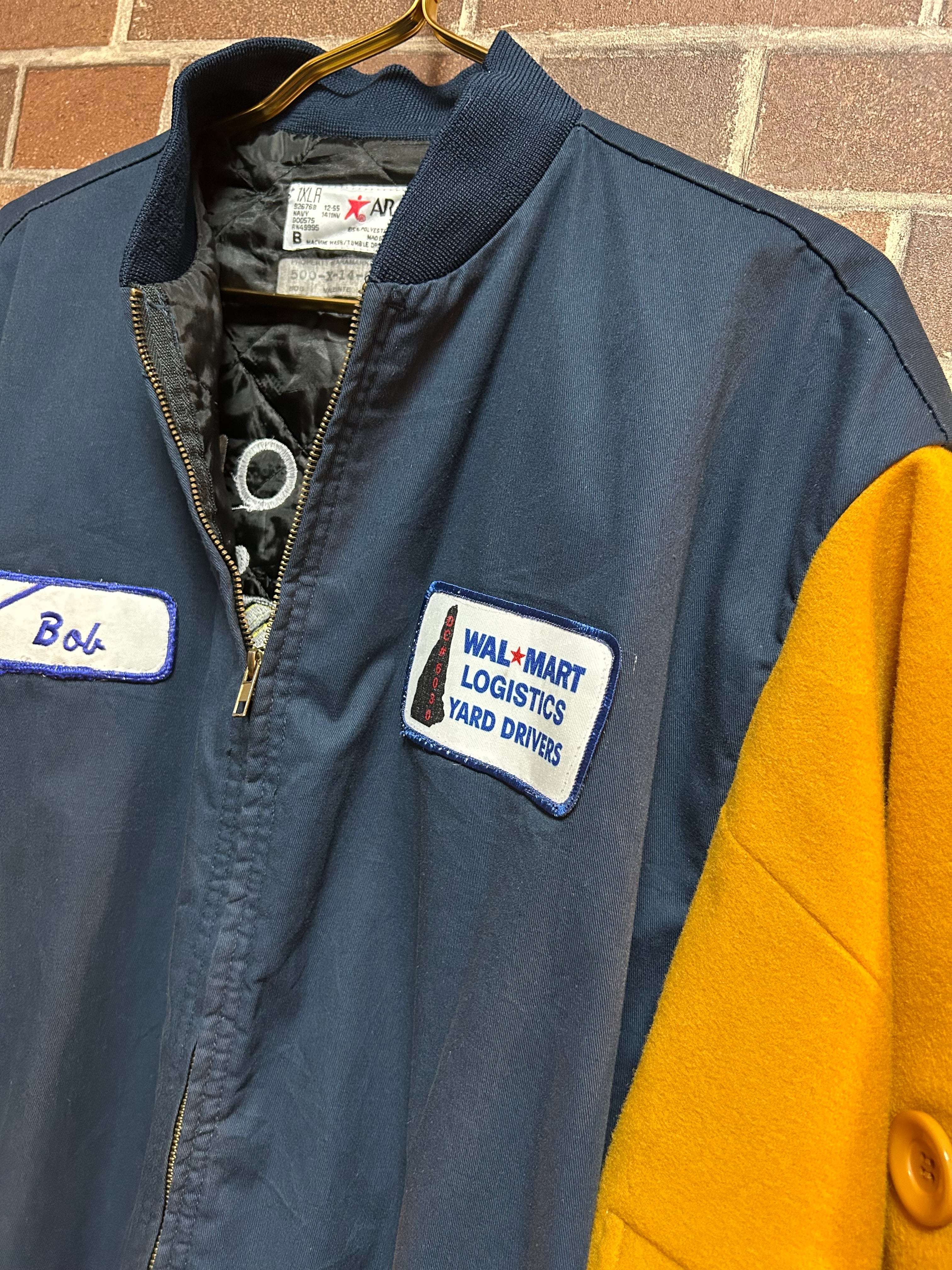 USA古着の刺繍ブルゾンとコートを使用して制作したリメイクのジャケットです⭐︎