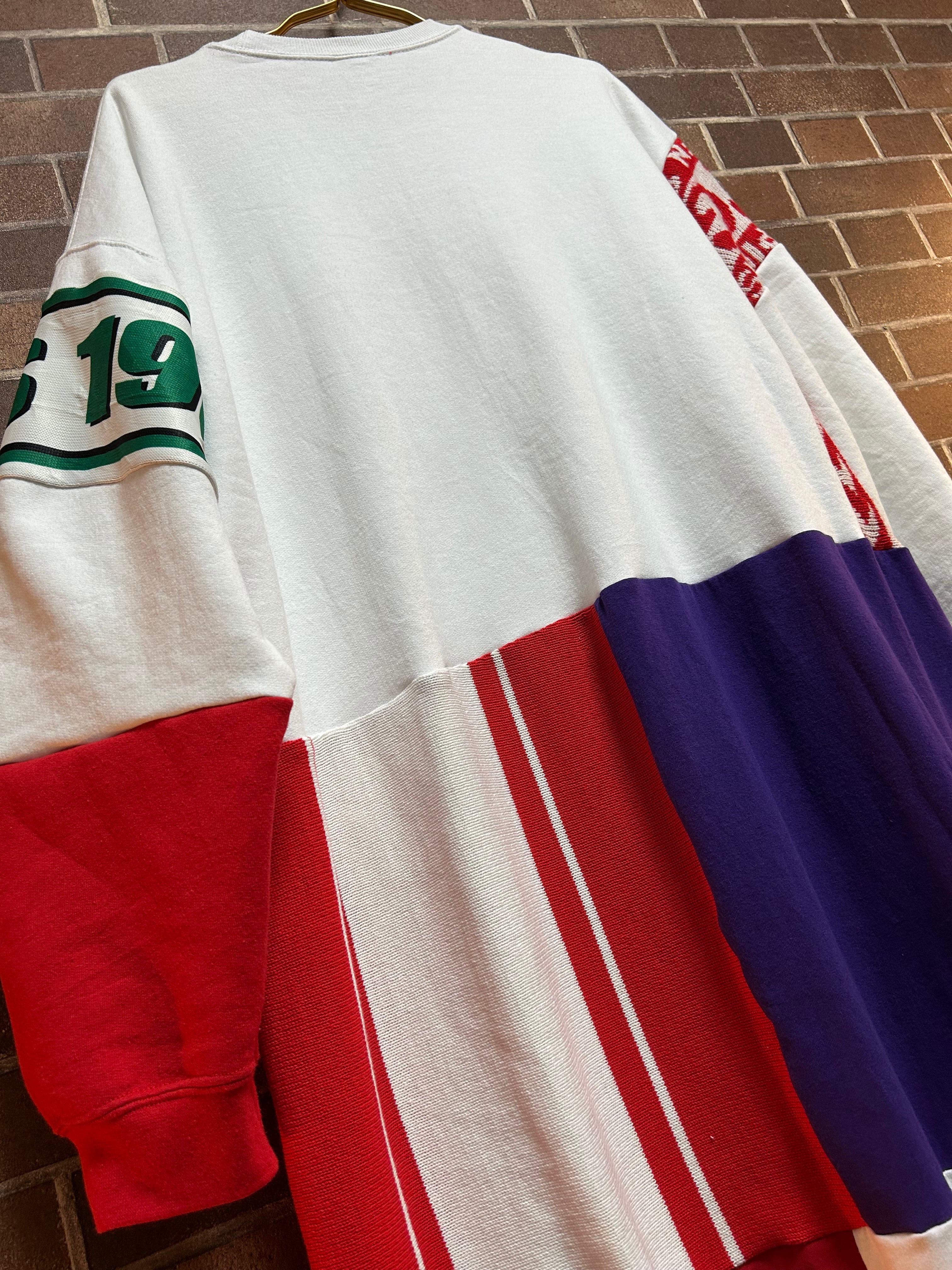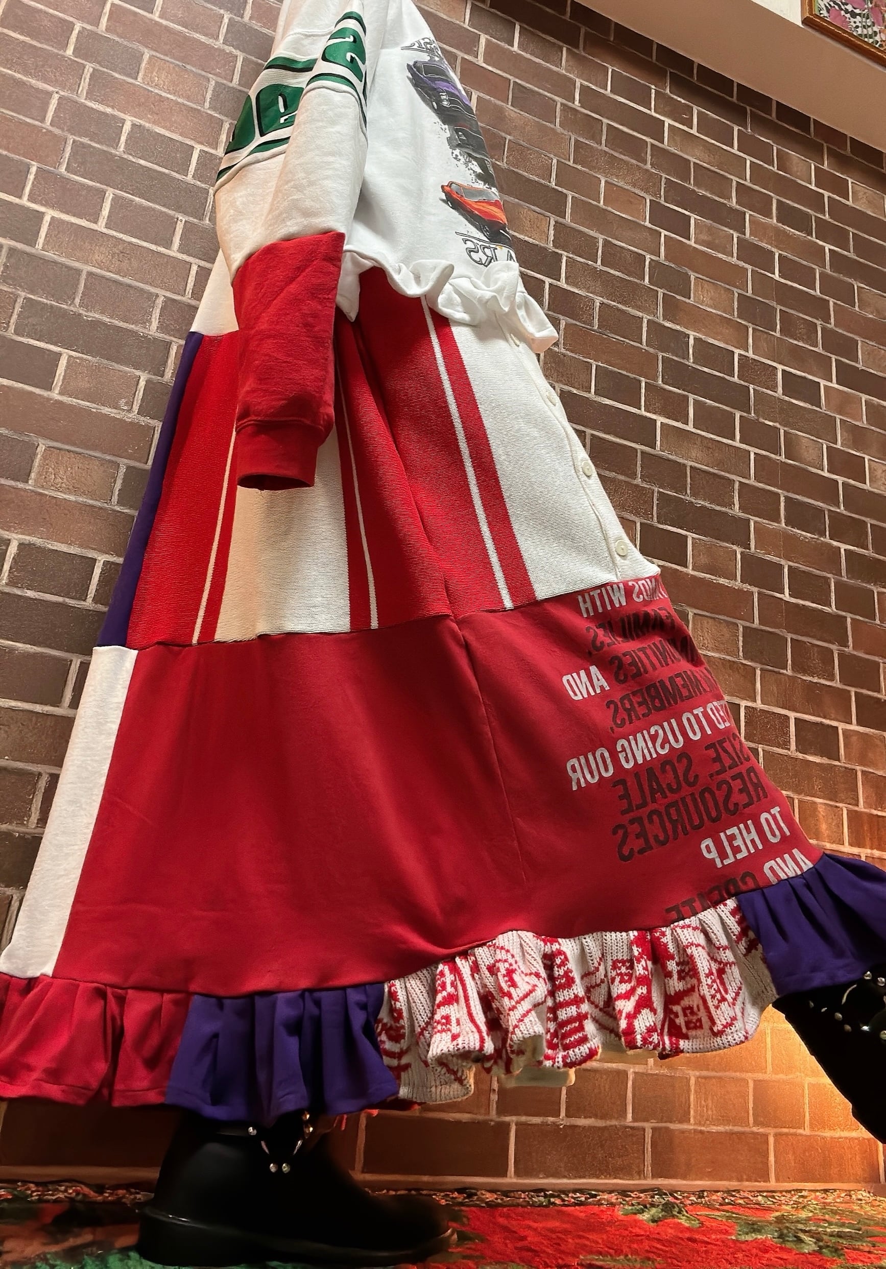 海外古着スエットやニット、Tシャツなど様々な生地を使用して制作したリメイクのワンピースです⭐︎