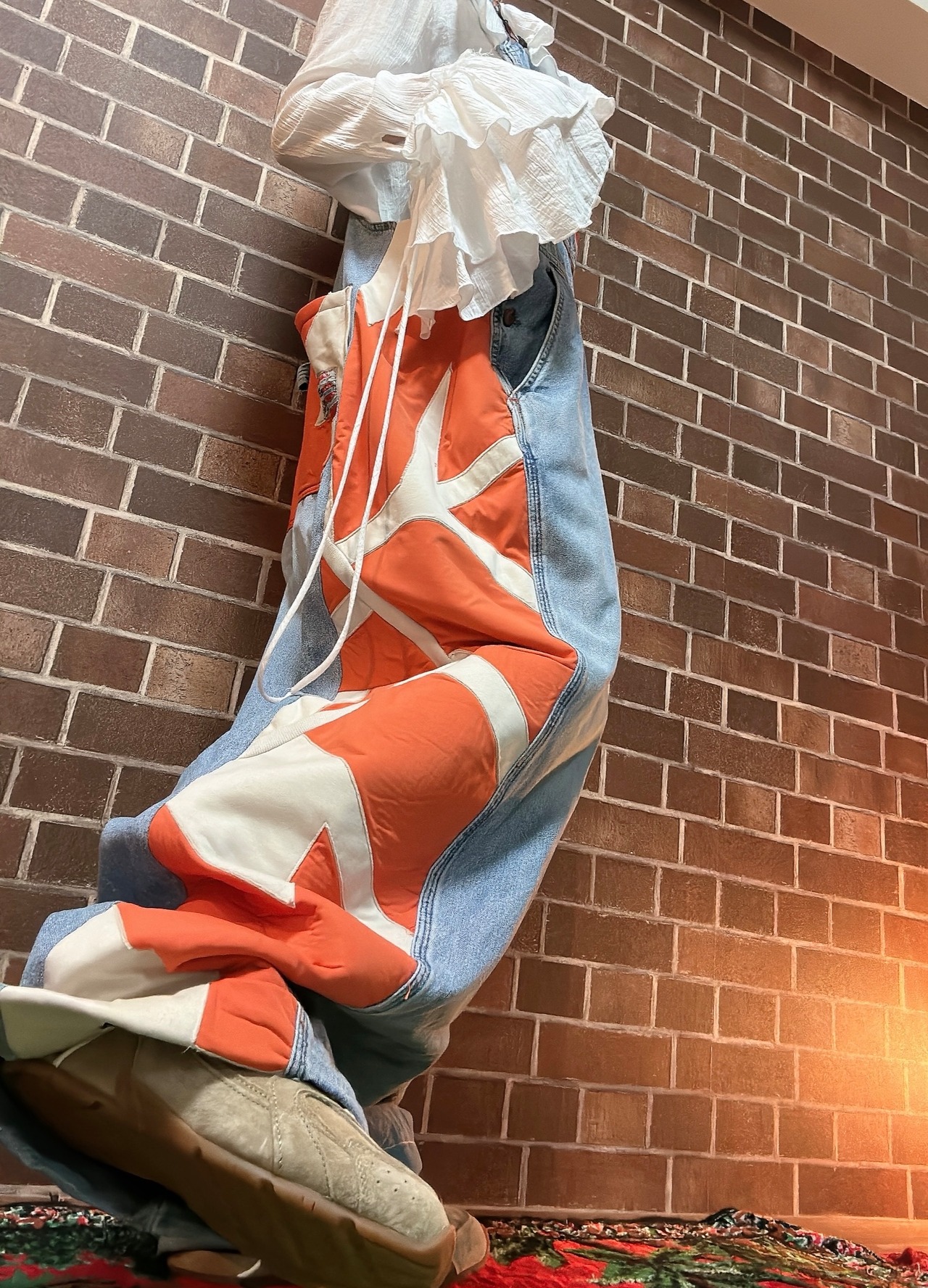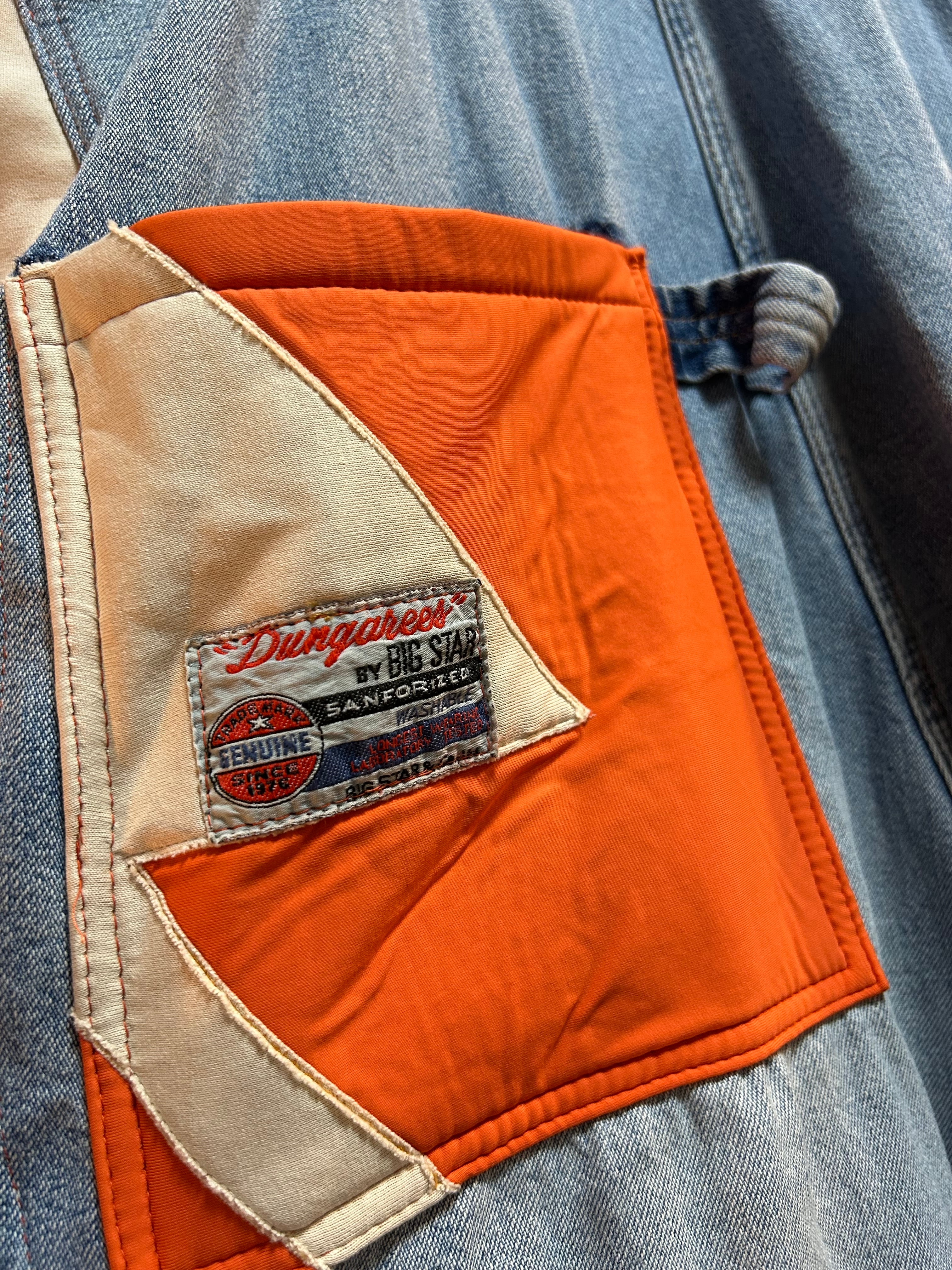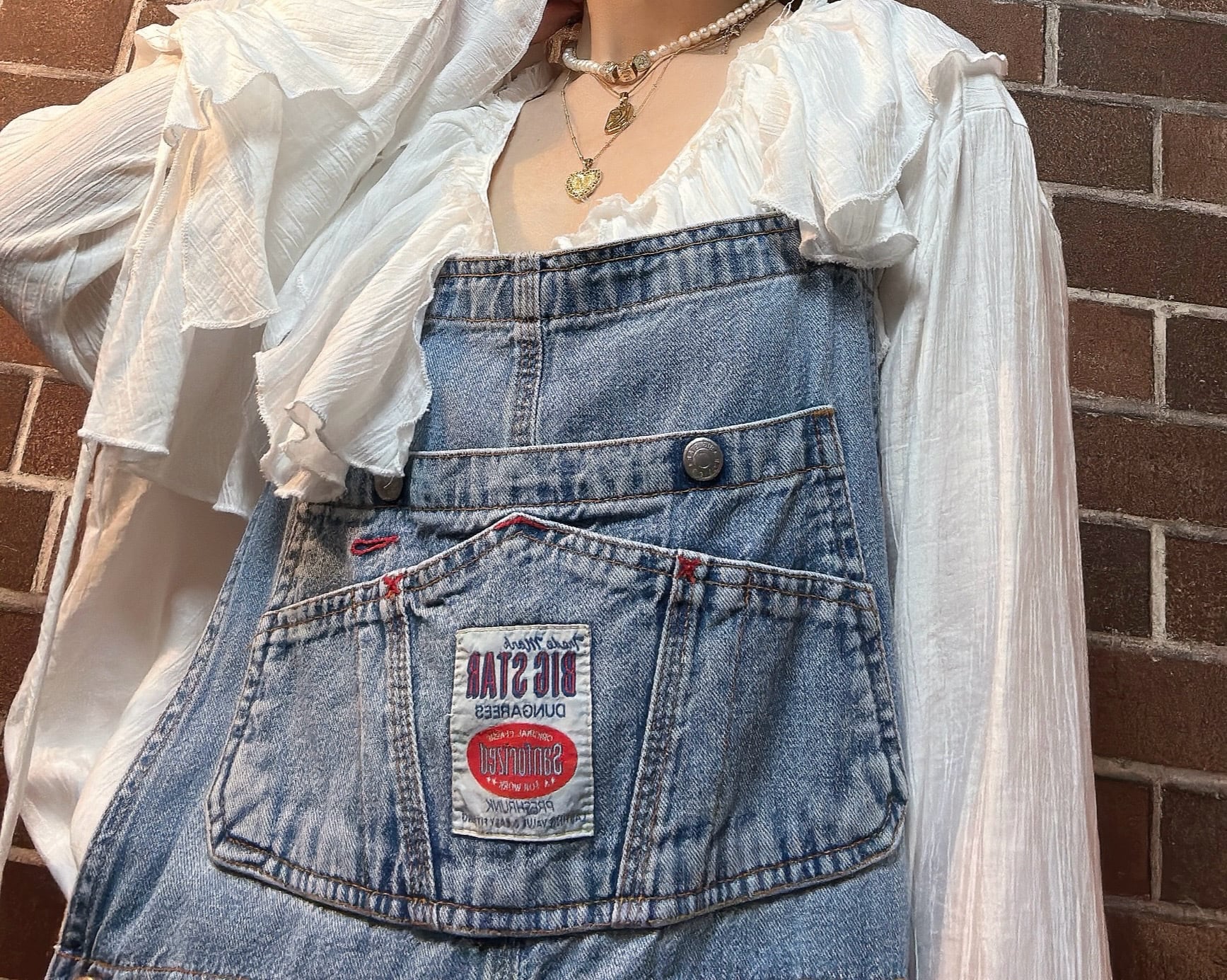海外古着を使用して制作したリメイクのドッキングオーバーオールです⭐︎