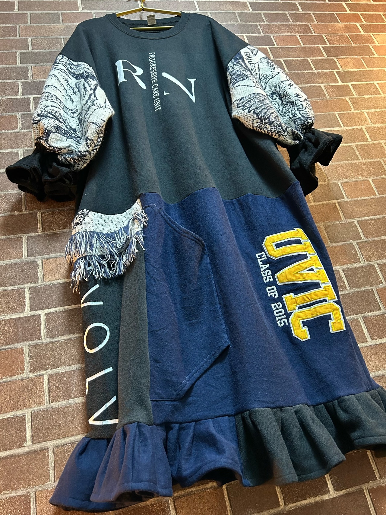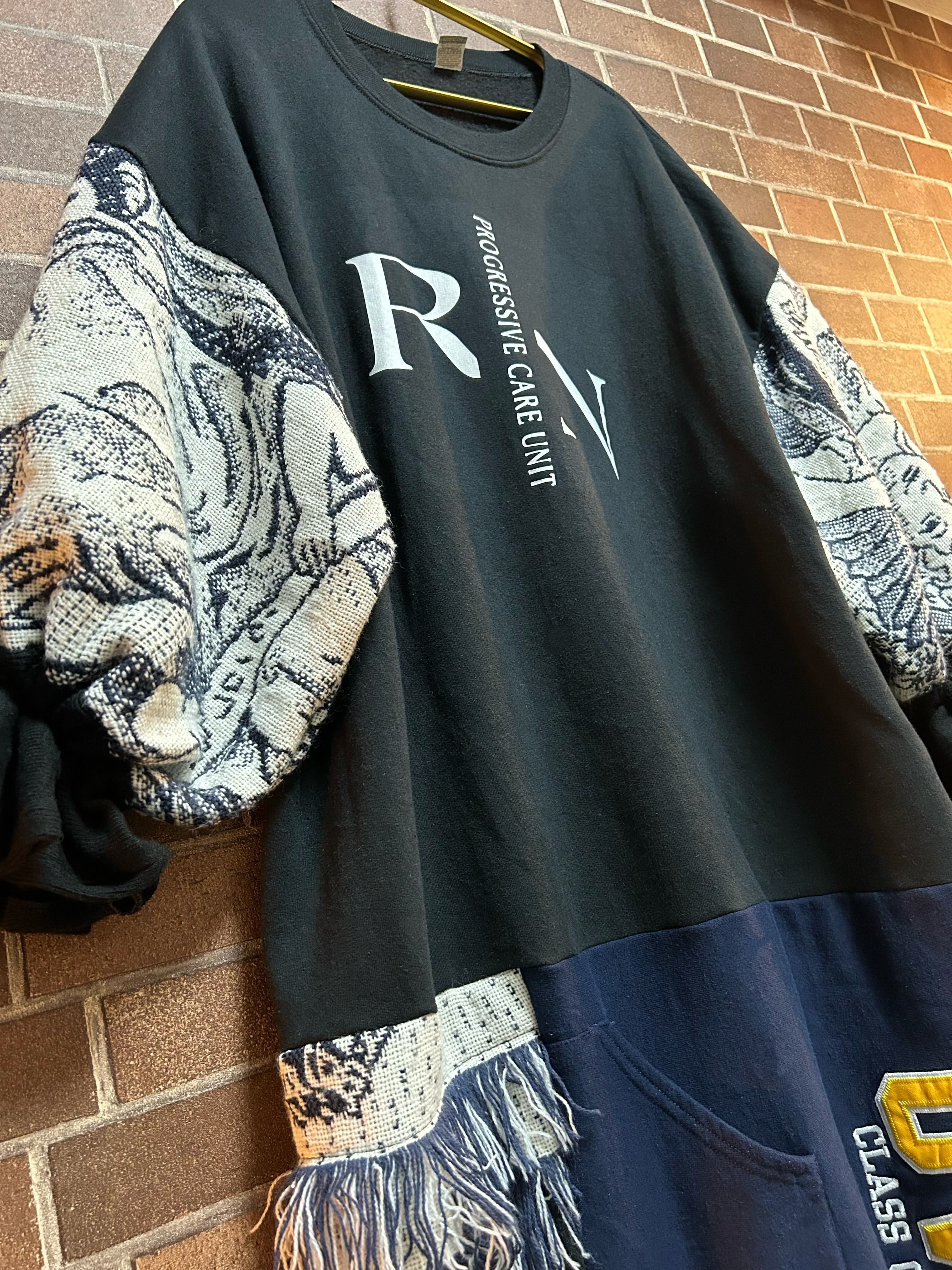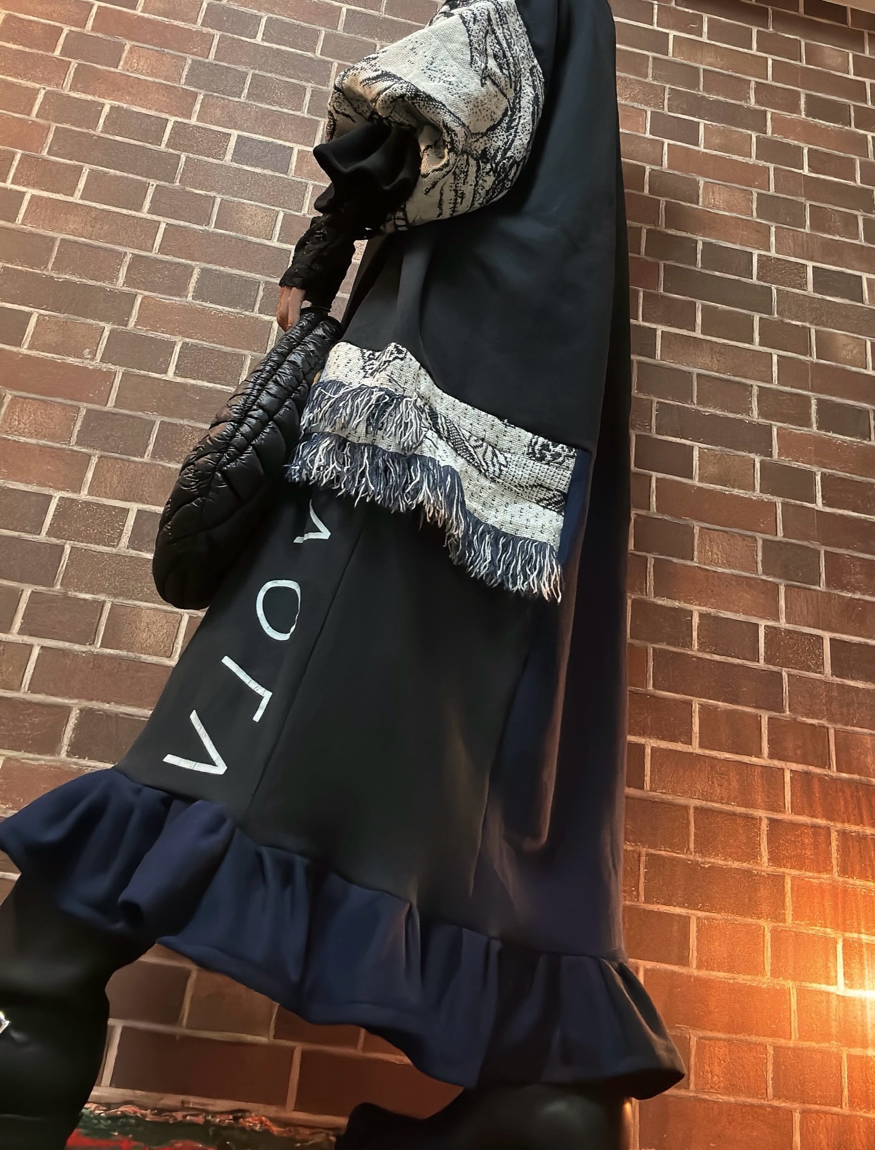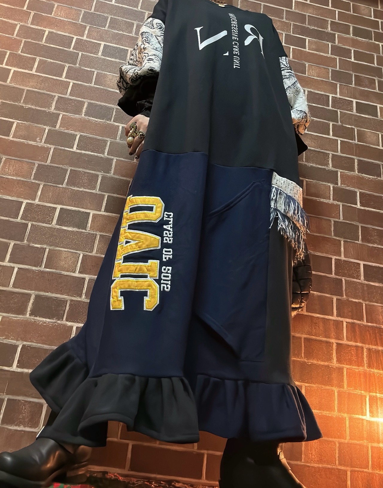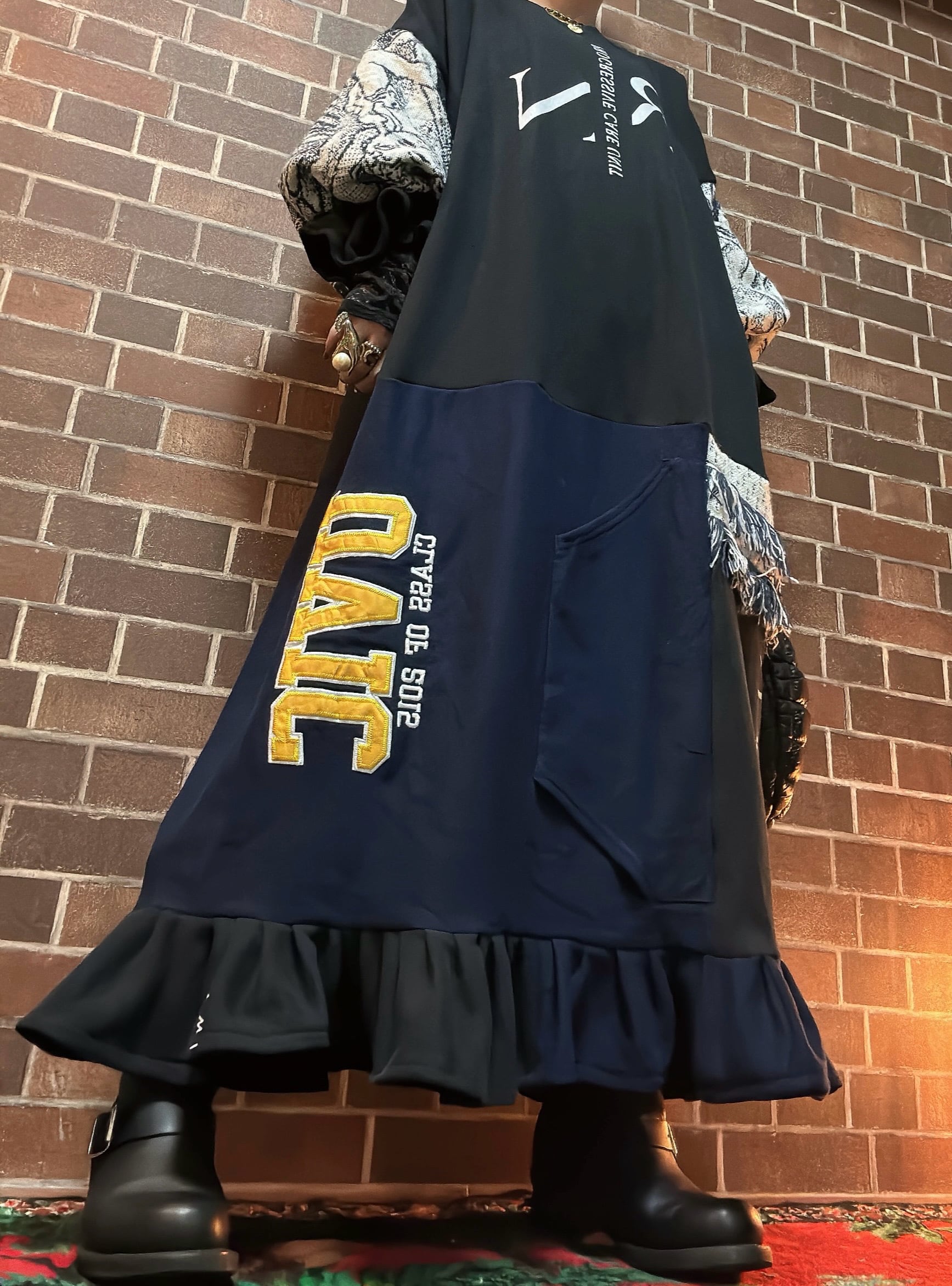 海外古着スエットや、ファブリックを使用して制作したリメイクのワンピースです⭐︎