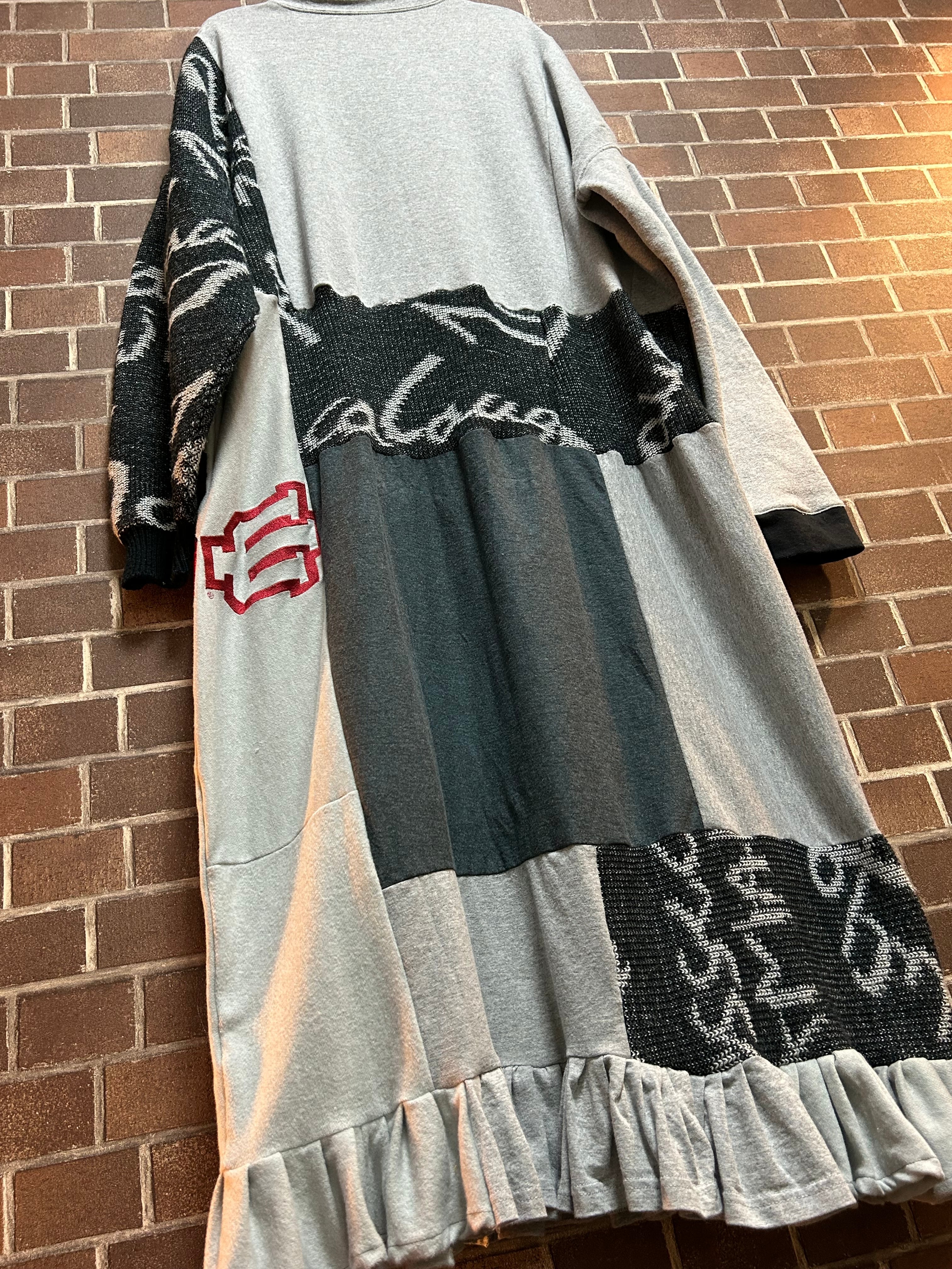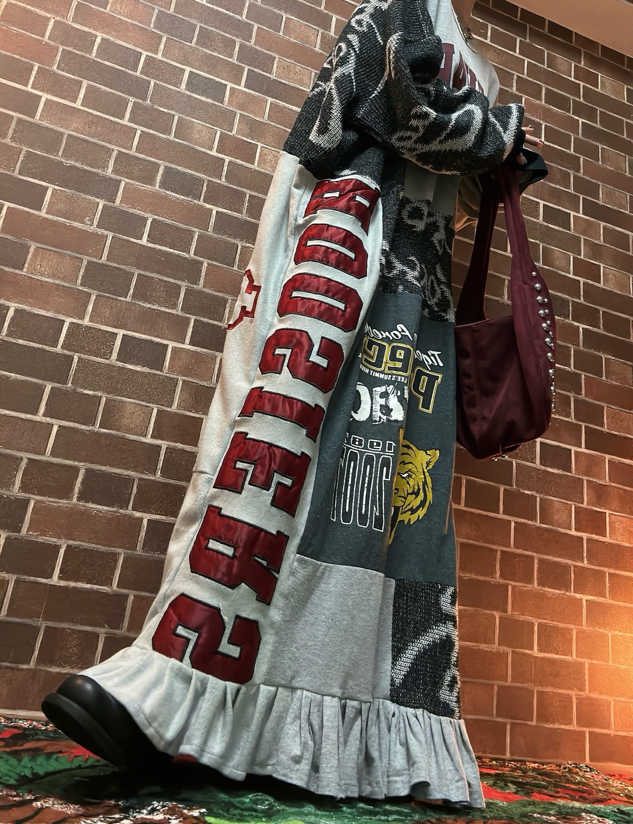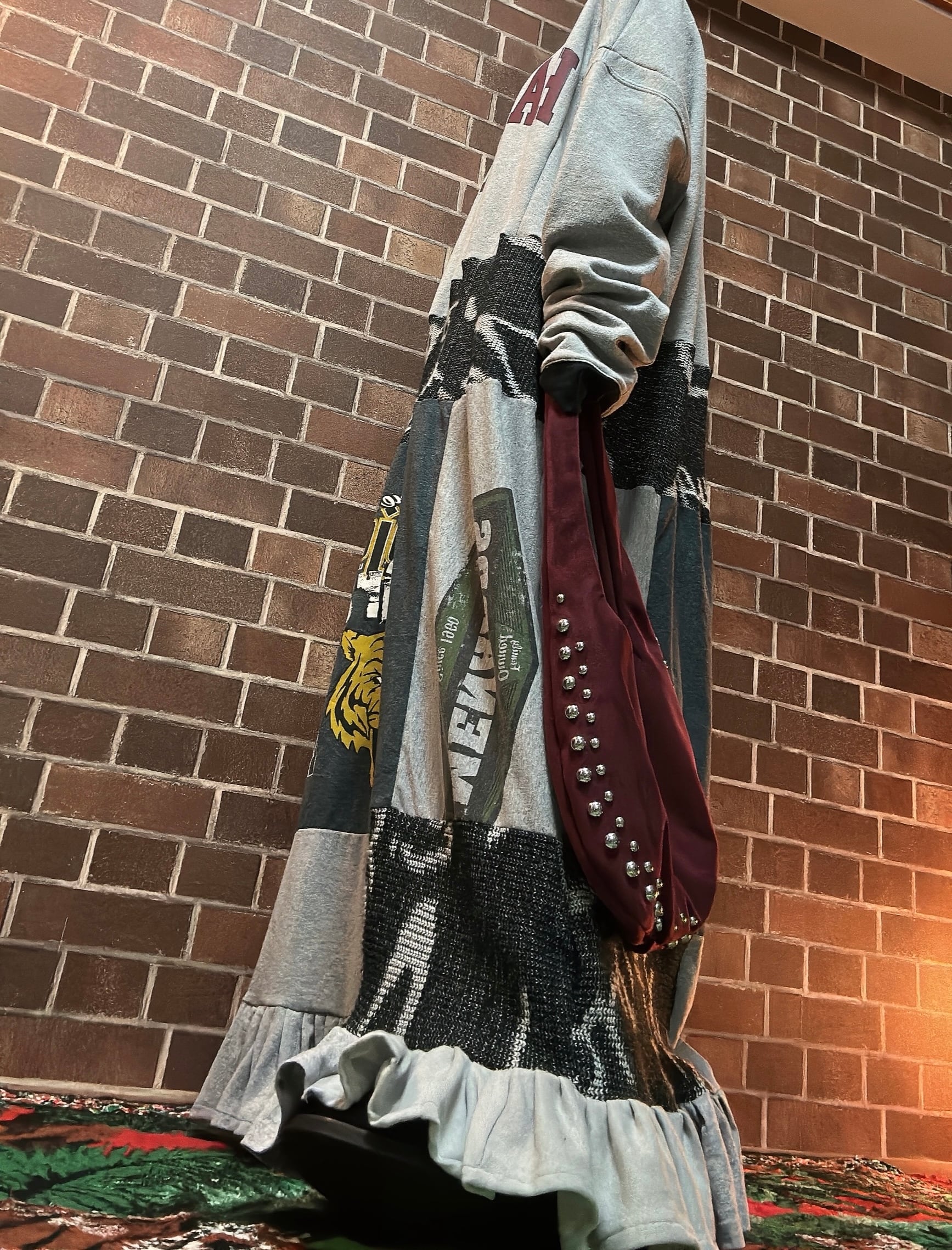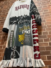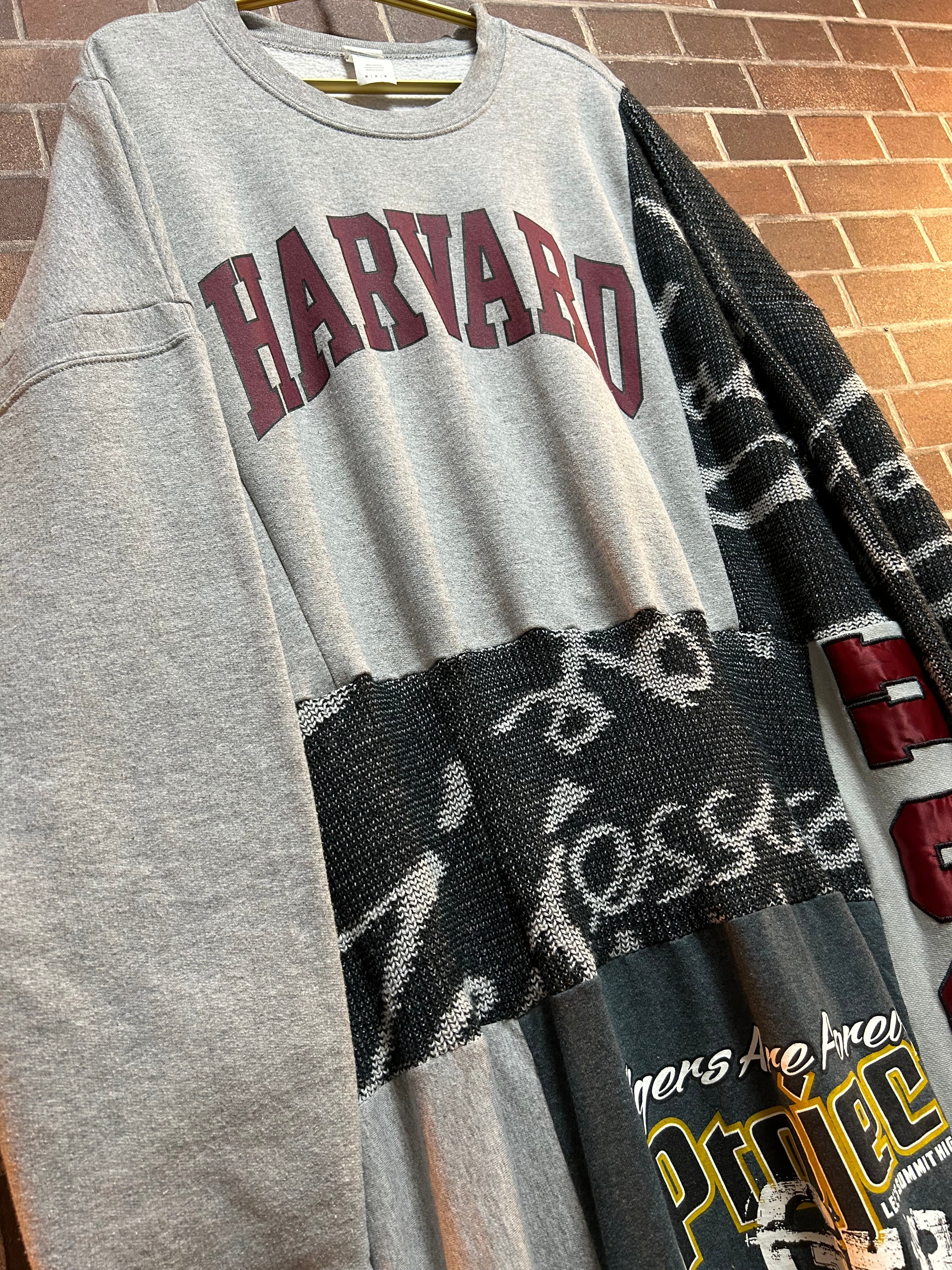海外古着スエットやニットを使用して制作したリメイクのパッチワークワンピースです⭐︎