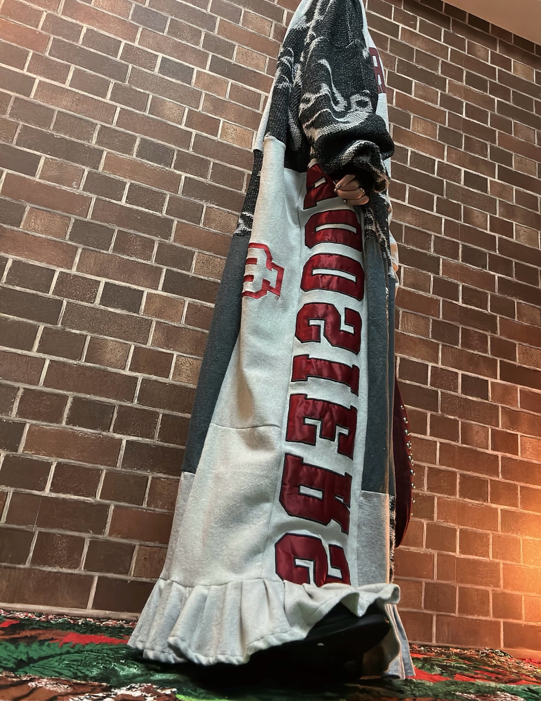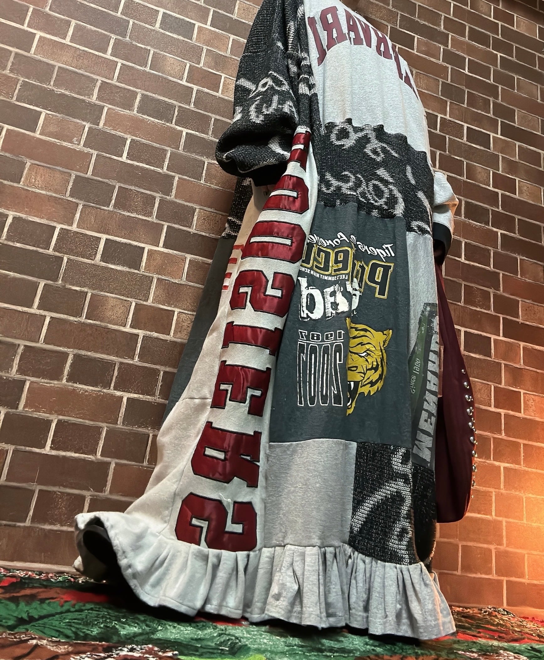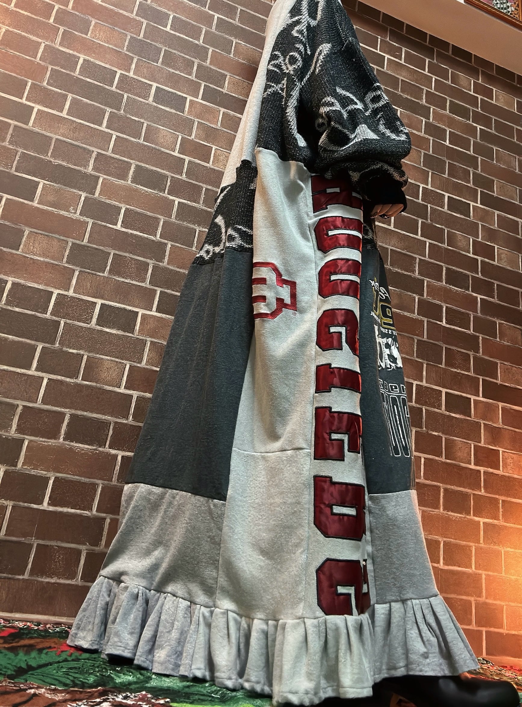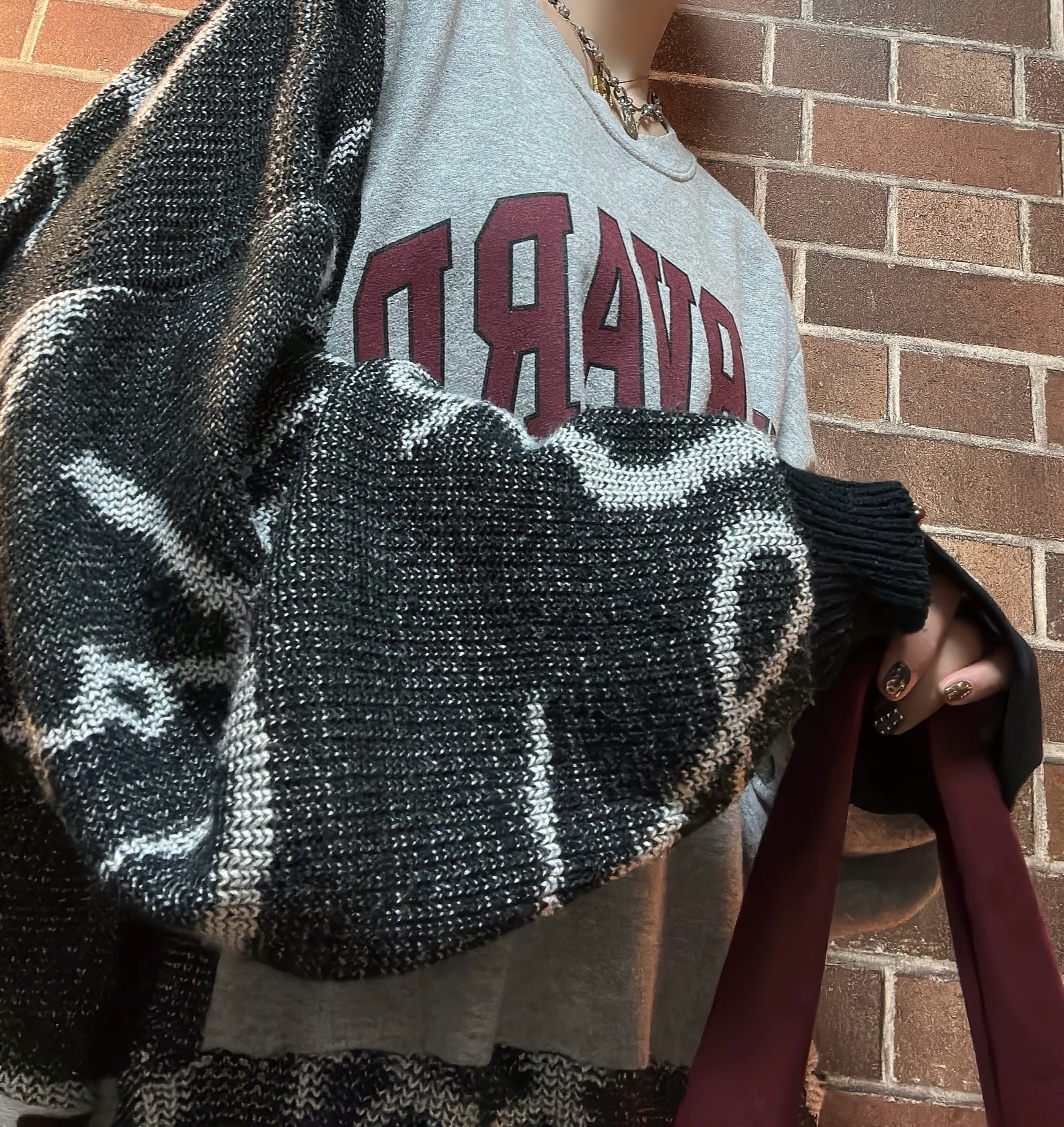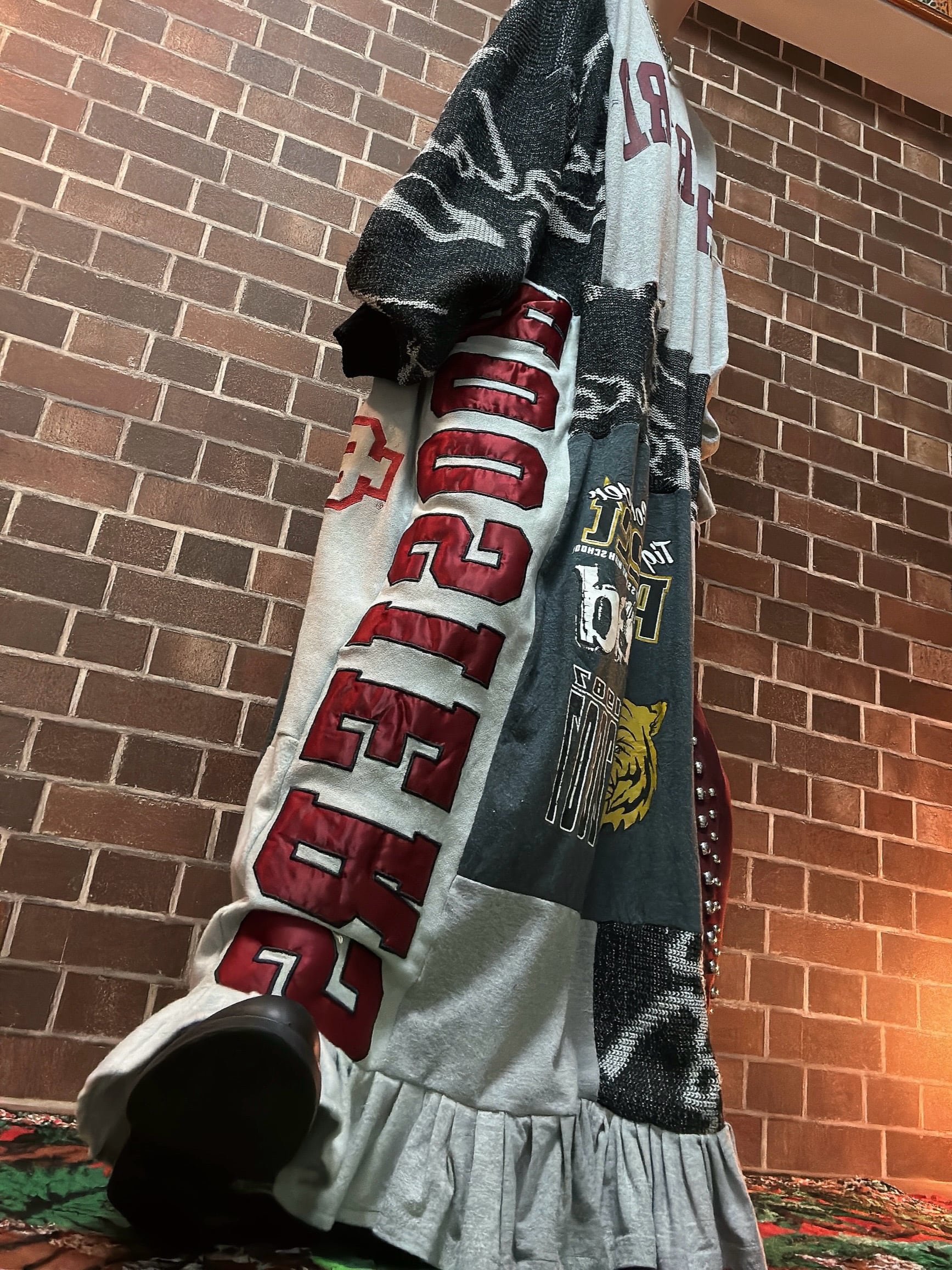 海外古着スエットやニットを使用して制作したリメイクのパッチワークワンピースです⭐︎