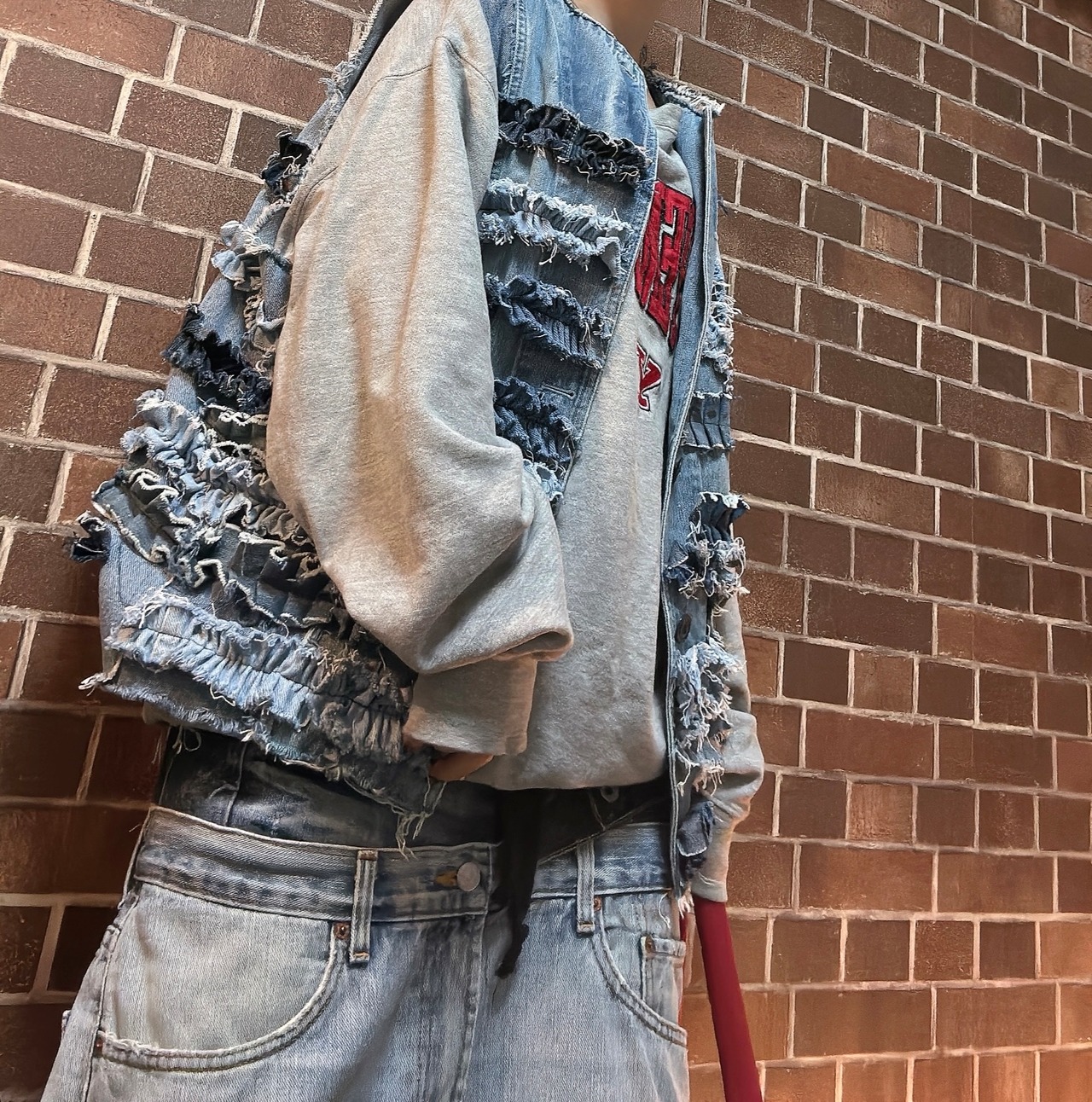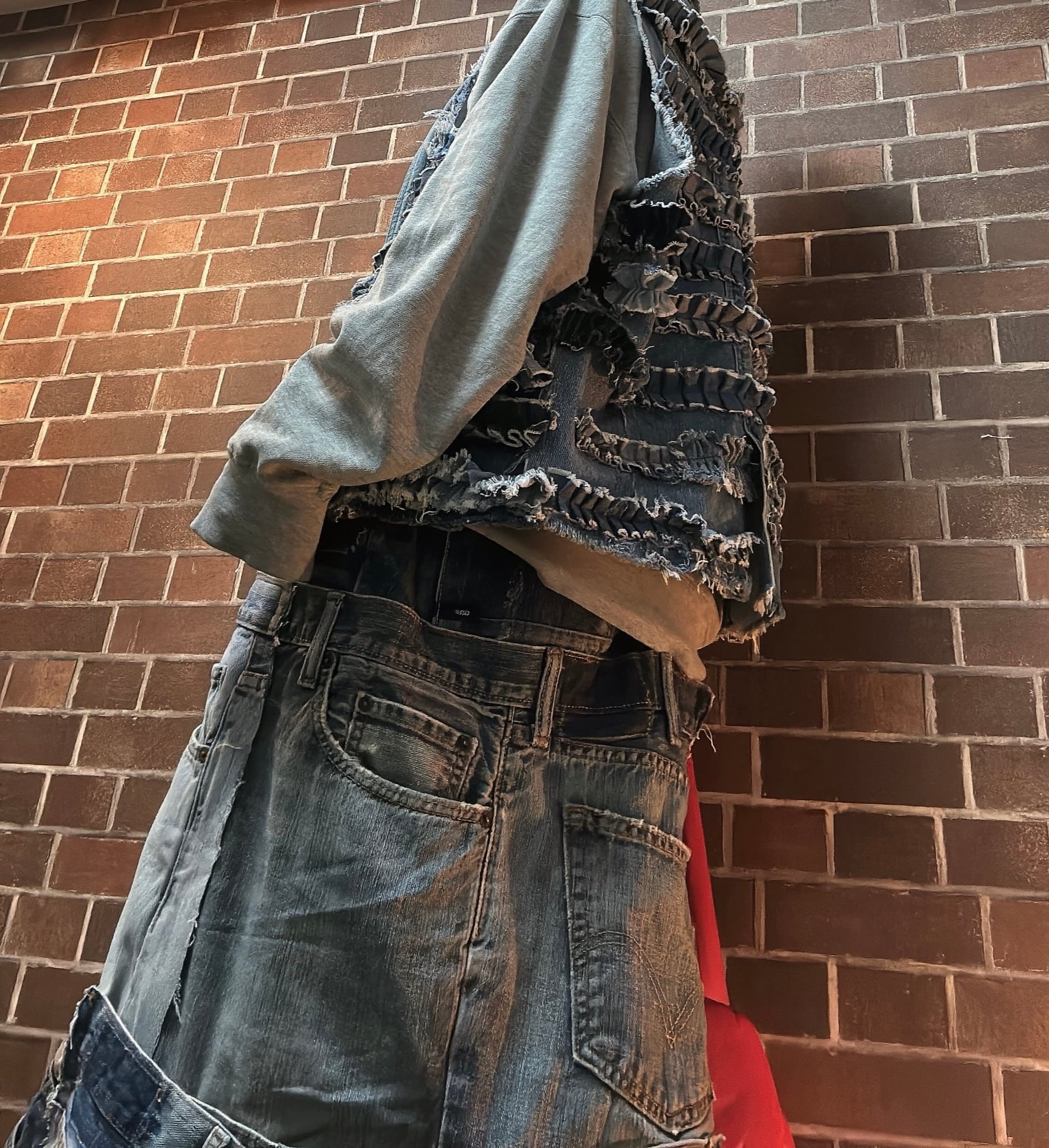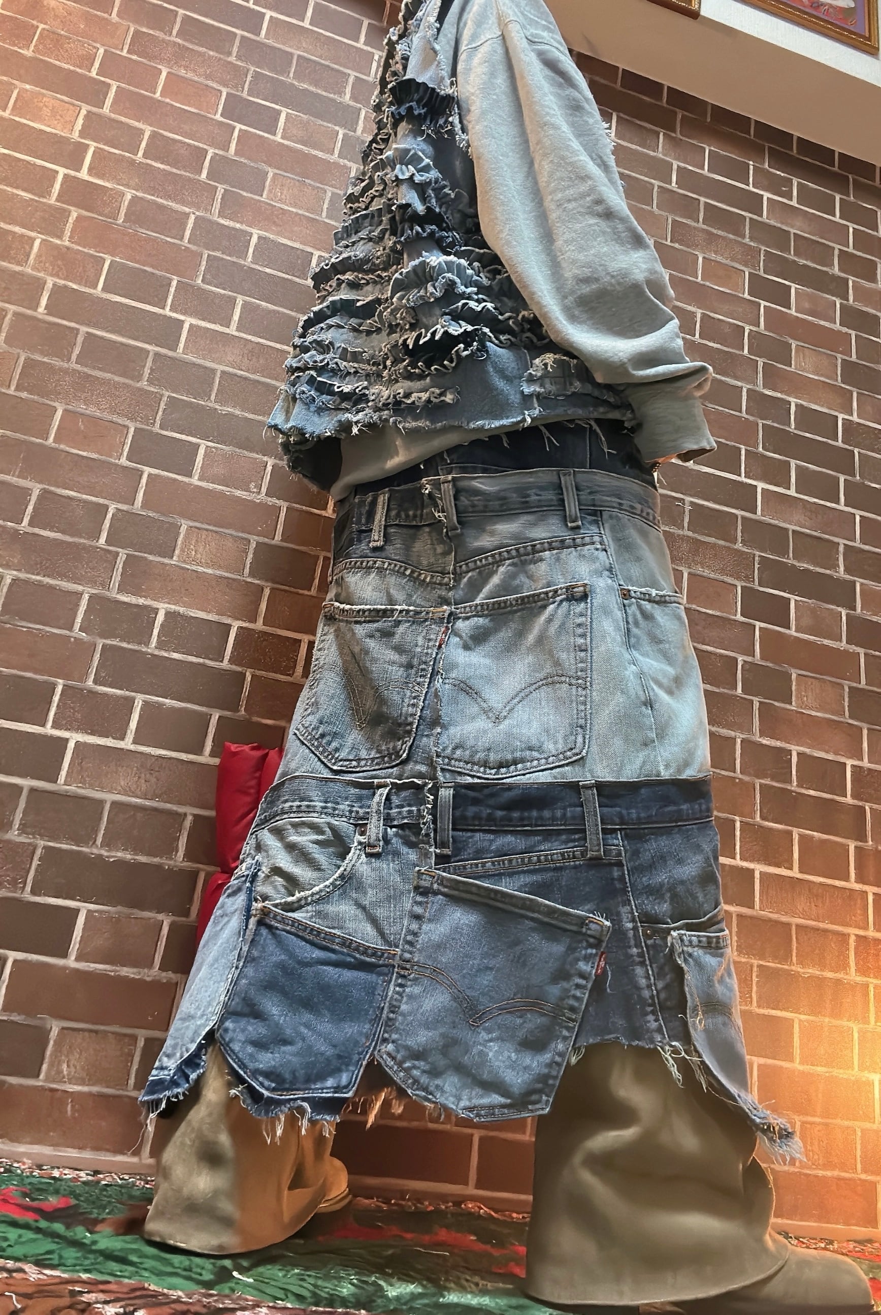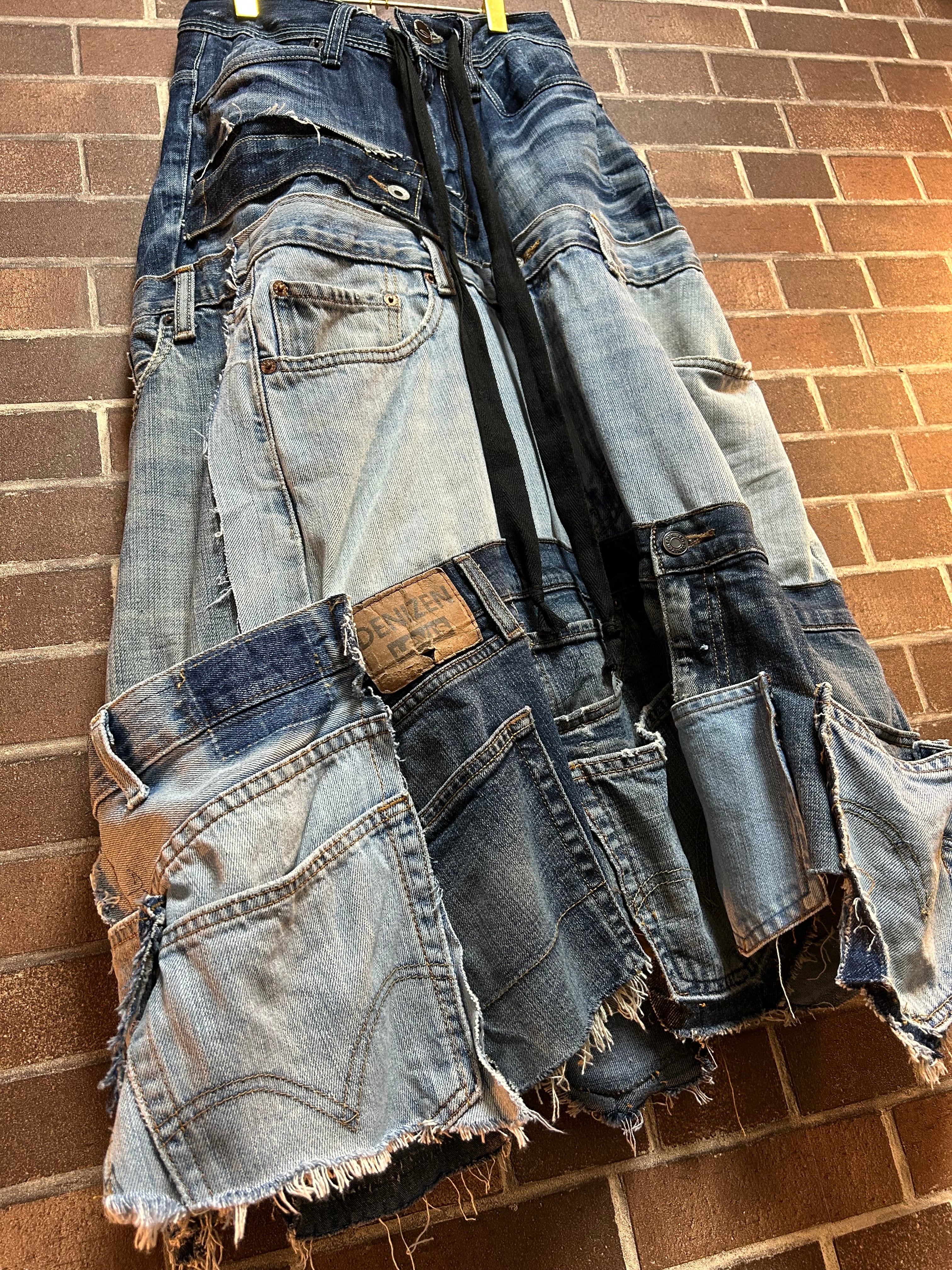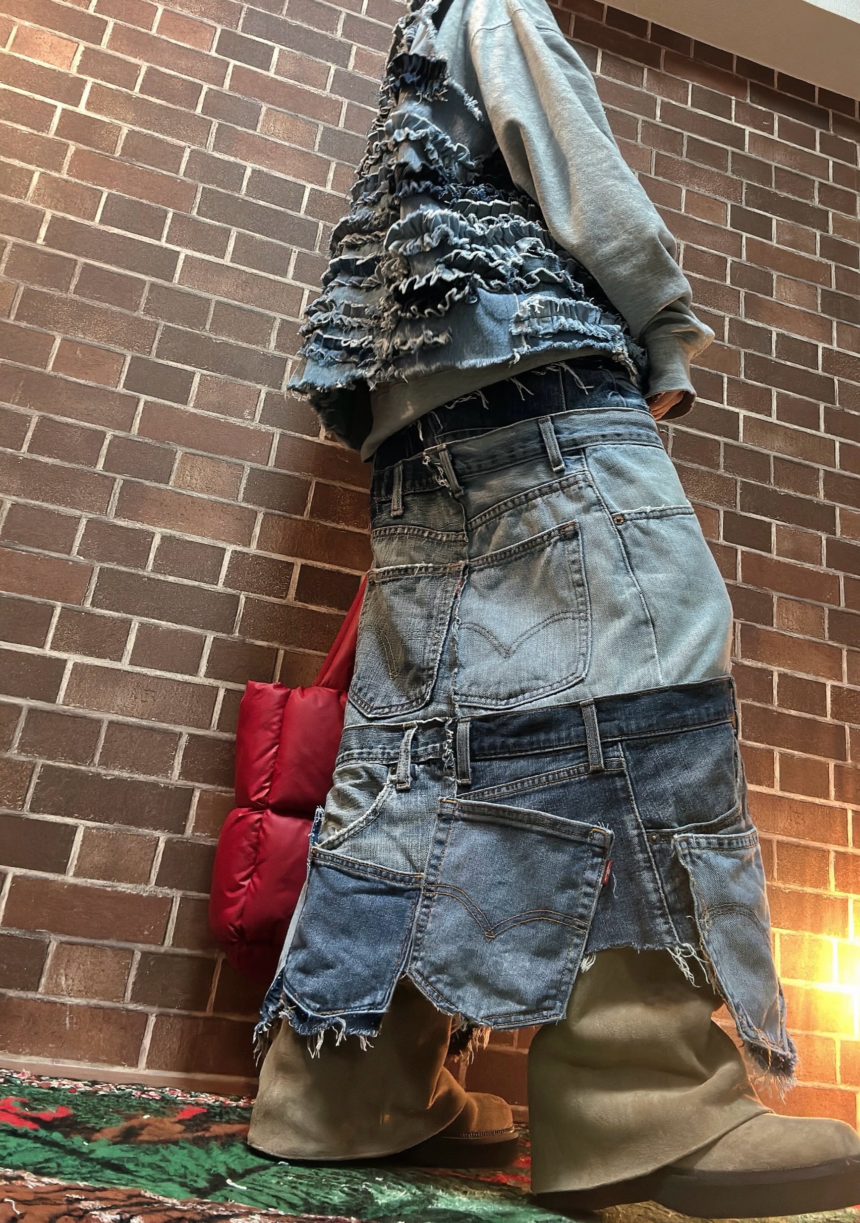 海外古着デニムを使用して制作したリメイクのデニムスカートです⭐︎