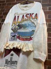 海外古着のTシャツやスエット、ニットなどを使用して制作したリメイクのワンピースです⭐︎